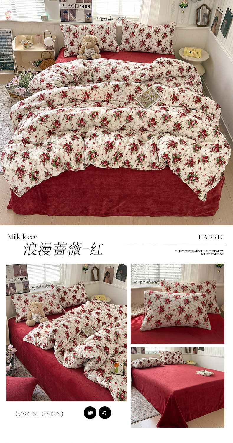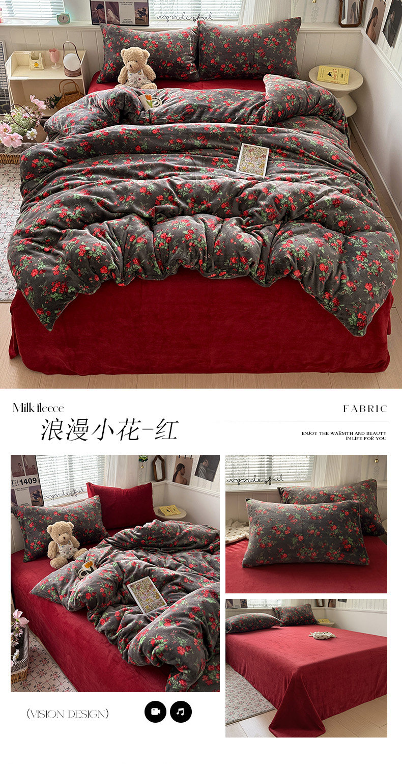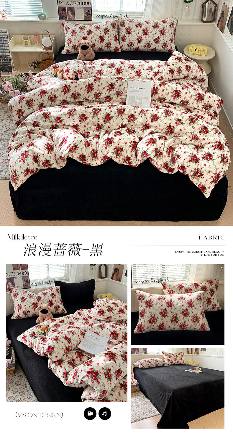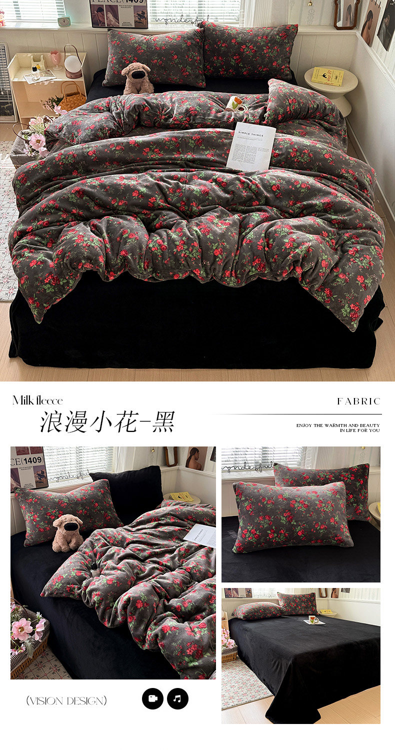 2026 New Korean Style Lace Milk Velvet Four-Piece Set with Pastoral Small Floral Pattern, Thickened Double-Sided Velvet Bed Sheet and Duvet Cover for Autumn and Winter