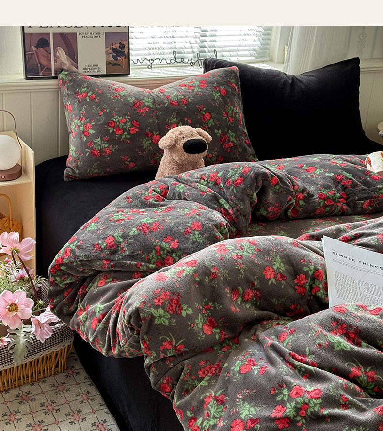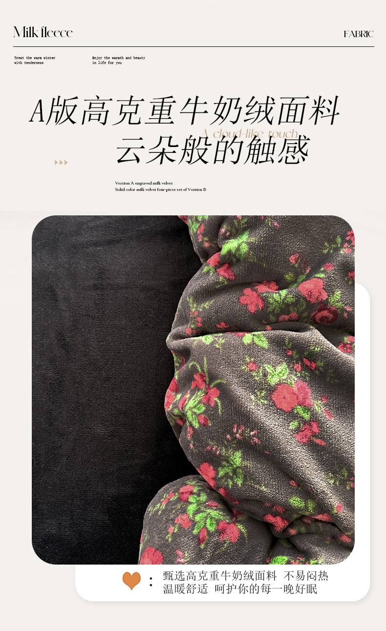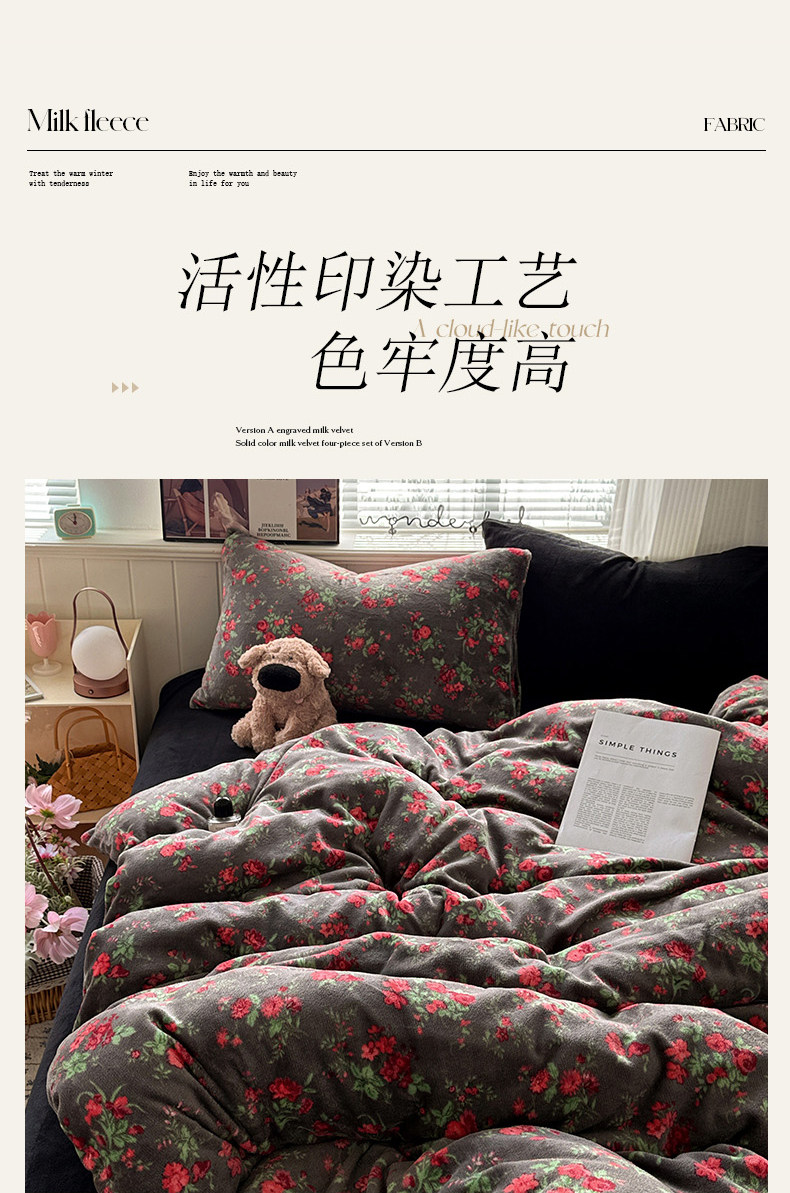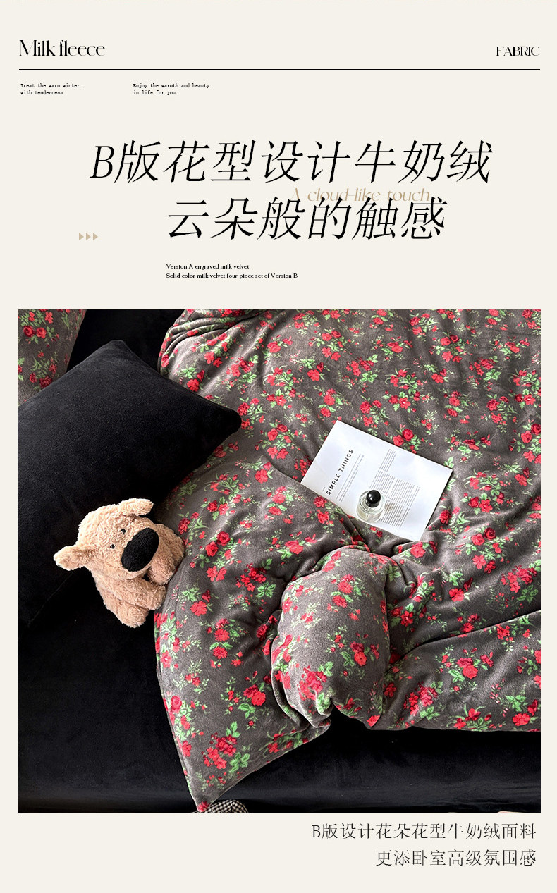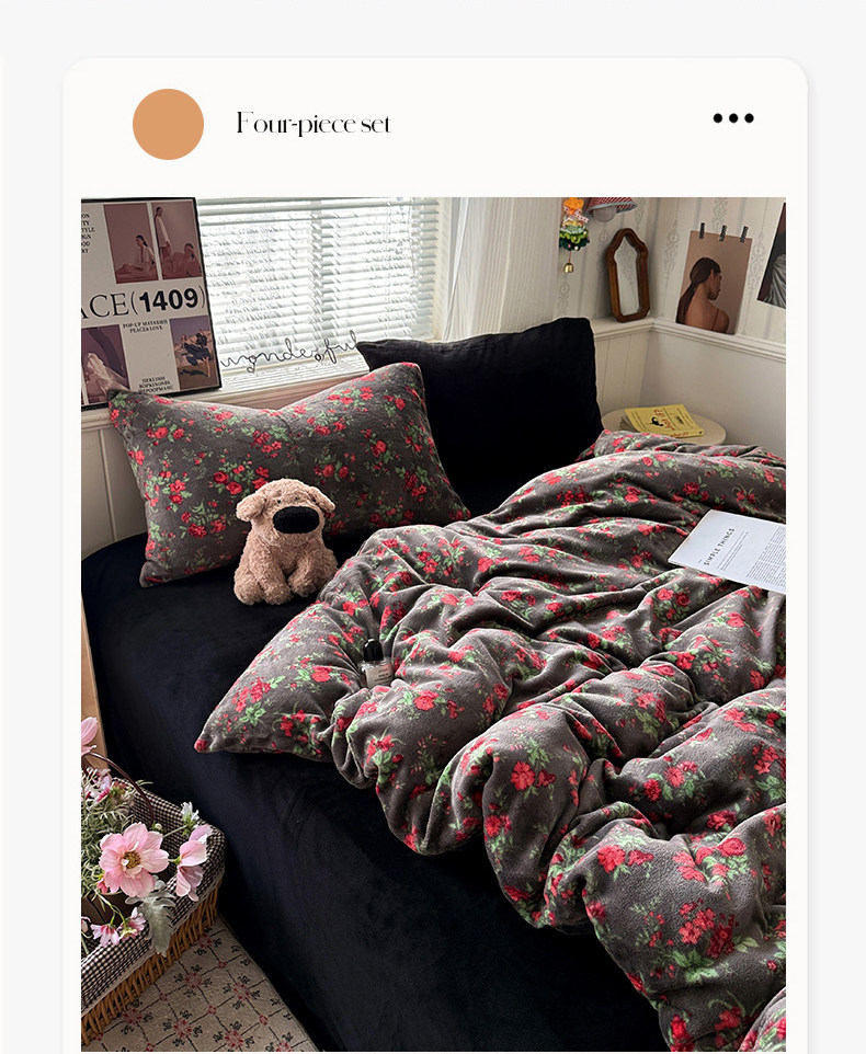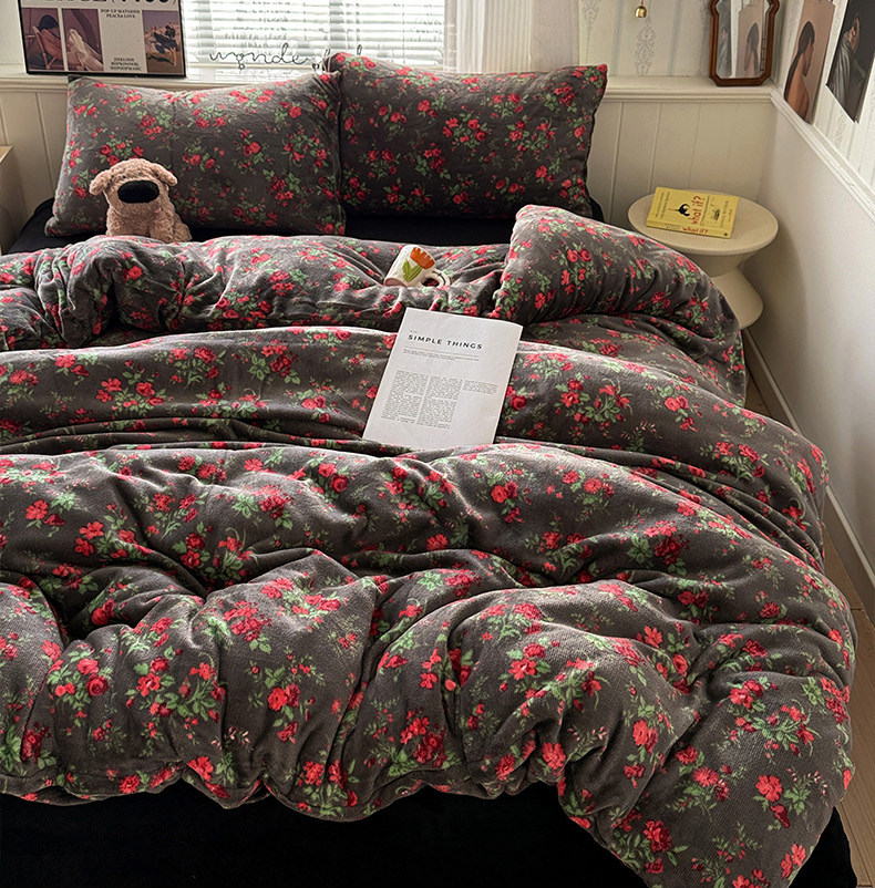 2026 New Korean Style Lace Milk Velvet Four-Piece Set with Pastoral Small Floral Pattern, Thickened Double-Sided Velvet Bed Sheet and Duvet Cover for Autumn and Winter