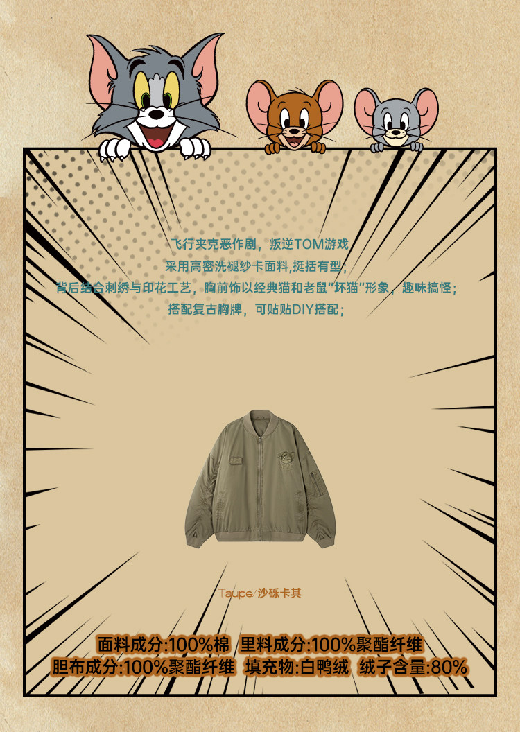 [Tom and Jerry Collaboration] Bjhg Reckless Flight down Jacket for Men, Winter American-Style down Jacket for Men