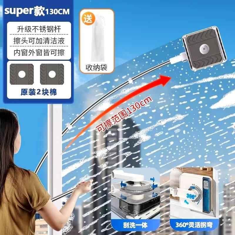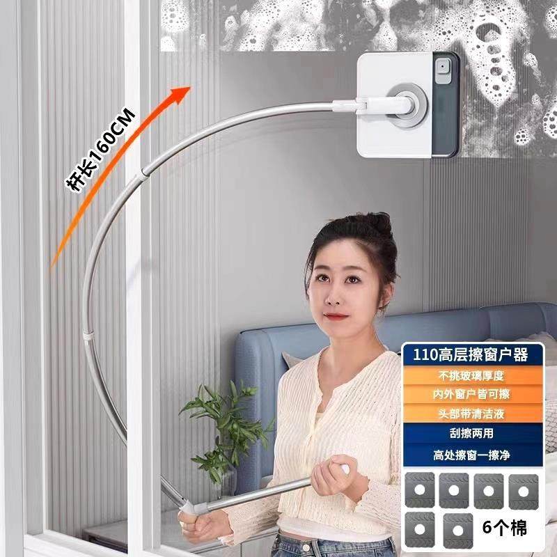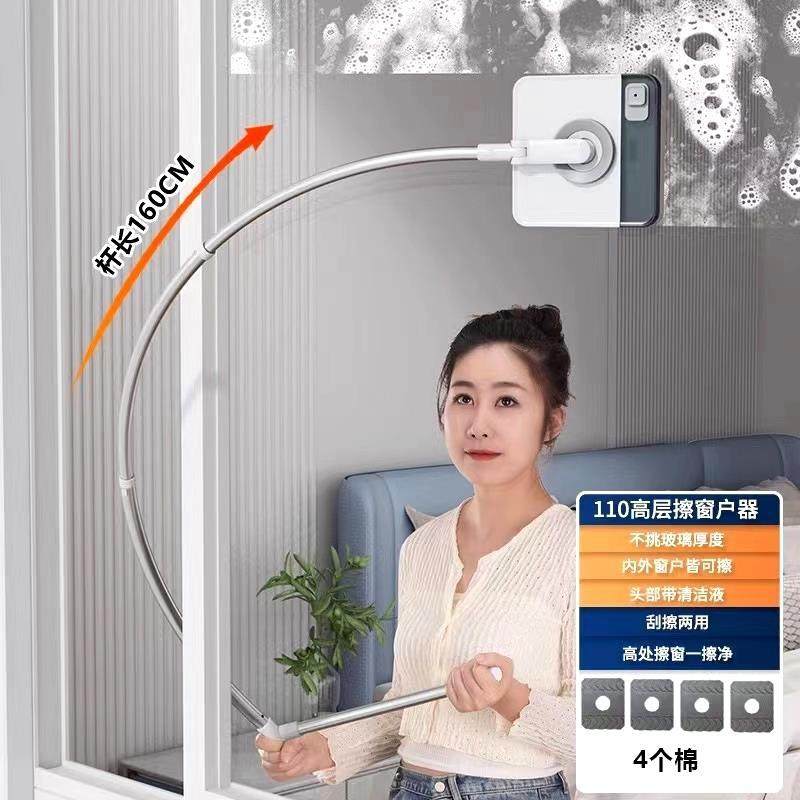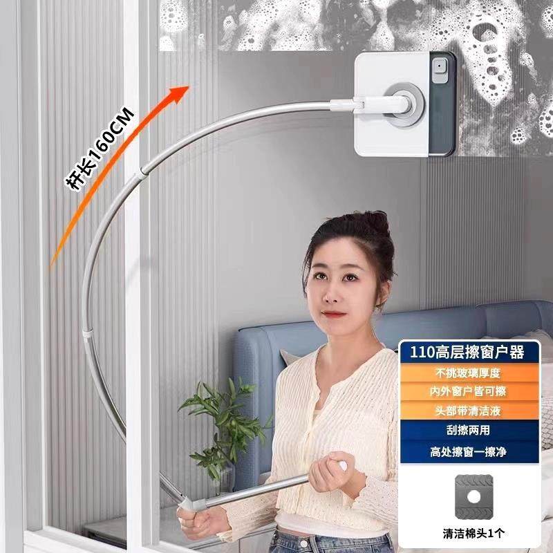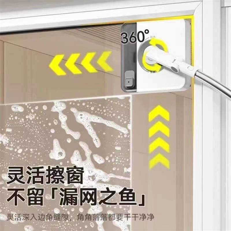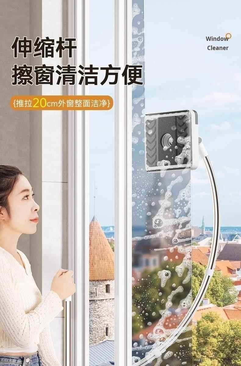 German Glass Cleaning Tool for Home Use with Extended Curved Arm Rod, 2025 New Model, Double-Sided, Special for High-Rise Exterior Windows
