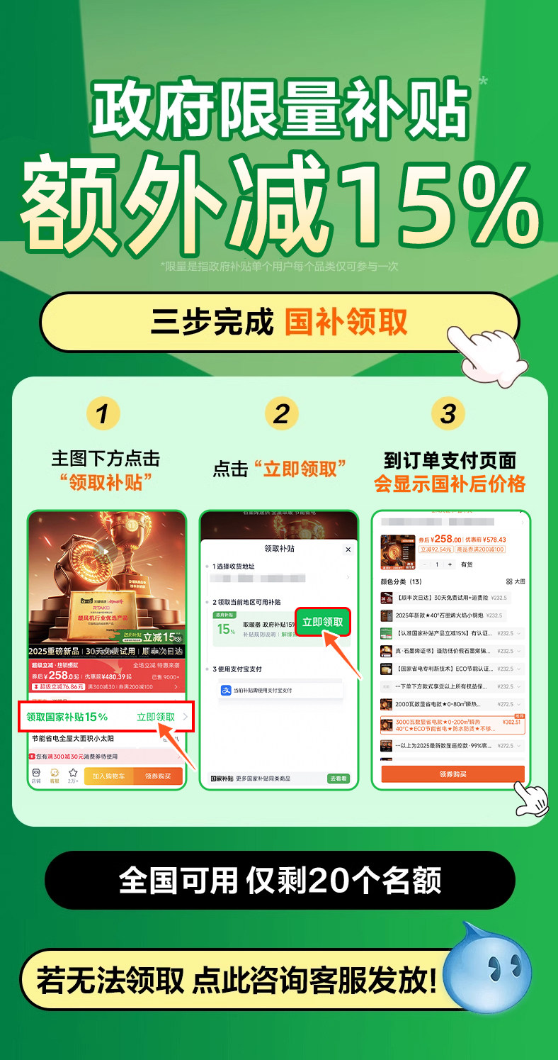 | Color Classification | Double 12 + National Subsidy✅【Lowest Price of the Year】Don'T Miss Out, or You'Ll Be Waiting Another Year! Limited Spots Available, so Act Fast!✅13 Years of Professional Heating,【Really Hot❗**Dare to Compare!** Say Goodbye to Traditional Heating! Solve Problems Like Spot Heating, Dry Skin, and Excessive Power Consumption.,【More Advanced✅Imax Graphene: No Questions Asked! Warms up Your Entire Four-Room Apartment | Save Thousands a Year | Whole-House Rapid Heating in 40 Minutes℃,【Look for Products with National Subsidies & Get an Instant 15% Off!】 Certified for True Rapid Heating & Energy Savings.,[National Power Saving Patent New Technology] Eco Energy Saving Certification☀As Low as 0.3 Yuan/H☀National 3C Certification,--Place an Order for the Styles Below to Enjoy All the Above Rights and Benefits---,2000W digital display power saving model丨0-80 Instant Warm 40 ECO intelligent power saving. If it is not warm enough, return it for free. If it does not save power, return it for free. Free remote control.,3000W digital display power saving model丨0-200 Instant Warm 40 ECO intelligent power saving. If it is not warm enough, return it for free. If it does not save power, return it for free. Free remote control.,--The Above Is the Latest 2025 Digital Display Remote Control Model·99% of Customers Choose--Free Returns Without Saving Power,2000 Watt Flagship Model★0-70㎡Instant Heat 38℃★Waterproof and Anti-Scalding★Not Warm Enough? Return It for Free.★Free Returns if It Doesn'T Save Energy.,3000 Watt Flagship Model★0-100㎡Instant Heat 38℃★Waterproof and Anti-Scalding★Not Warm Enough? Return It for Free.★Free Returns if It Doesn'T Save Energy.,【Hot & Cold Dual-Use, Bathroom Waterproof, Moisturizing & Purifying, Baby & Mom Safe】Year-Round Use, Never Idle |