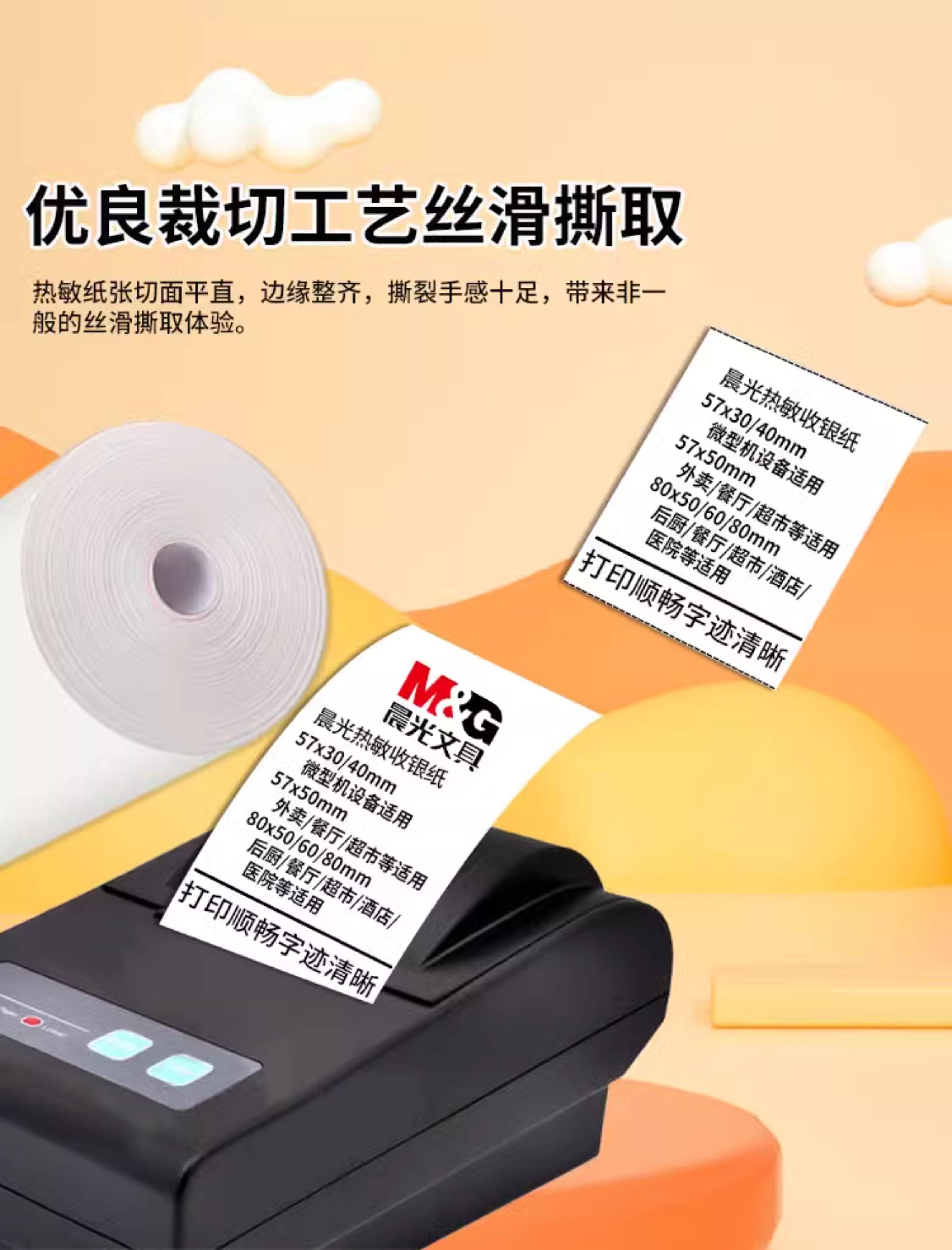Morning Light Thermal Cash Register Paper 57X50 Thermal Paper 80X60X50 Printing Paper 80X80 Po Meow Meow Machine Small Roll Meituan Takeaway Restaurant Supermarket Receipt Paper 57mm Receipt Paper 57*50 Without Core Tube