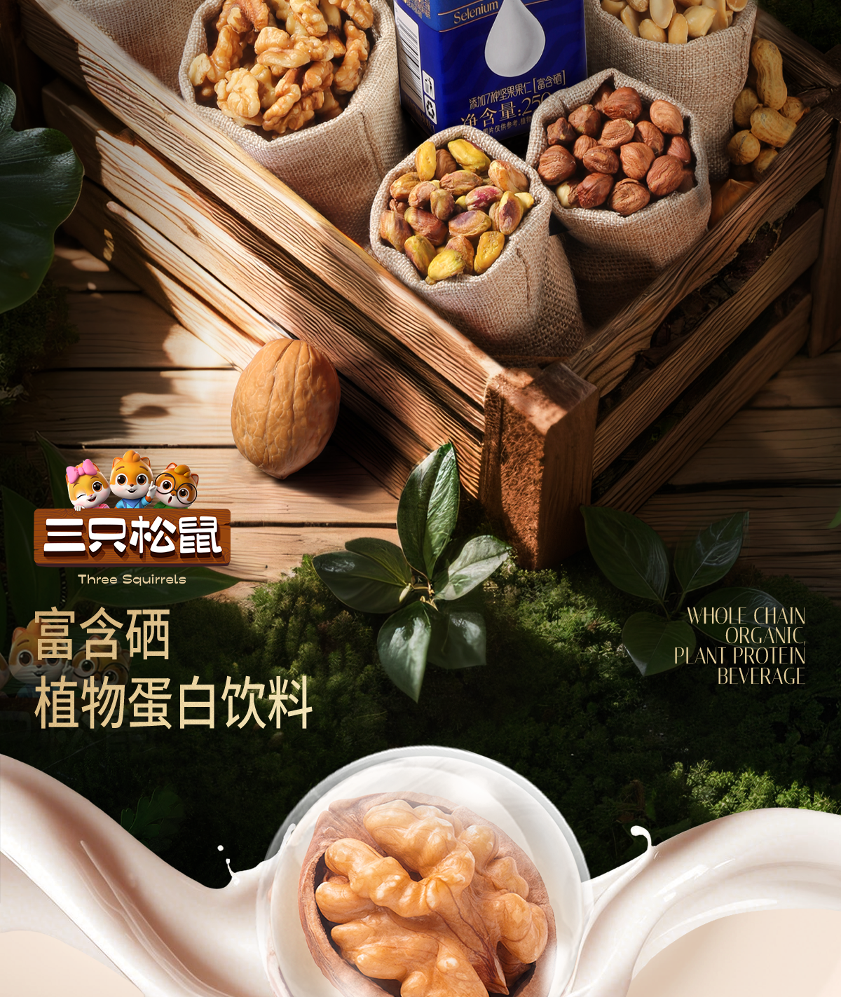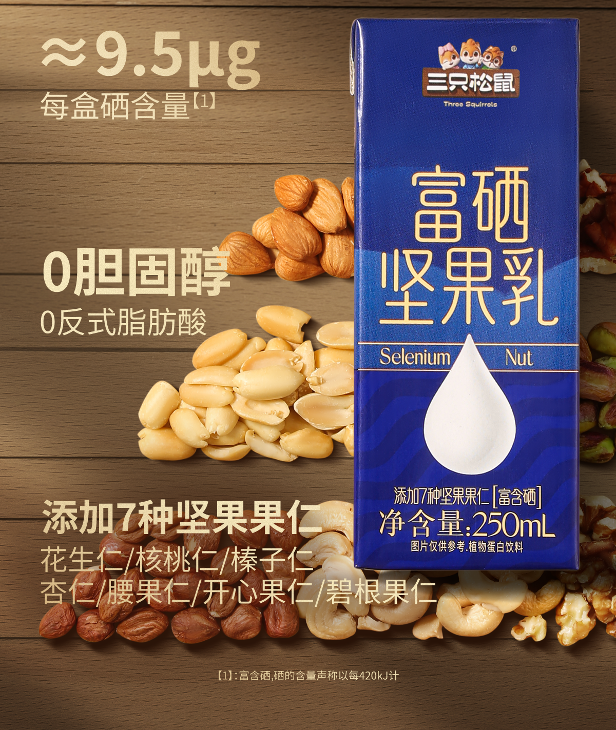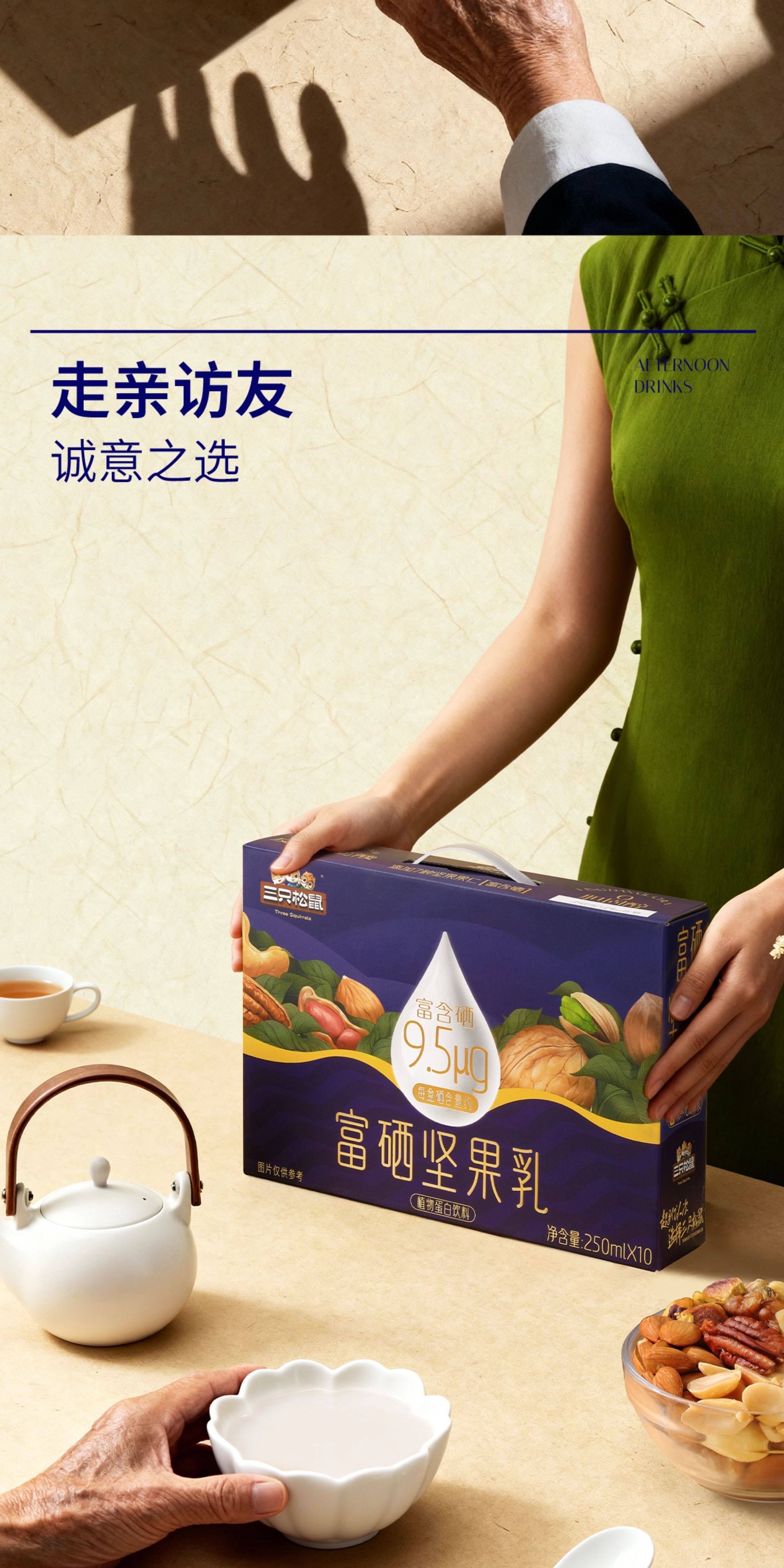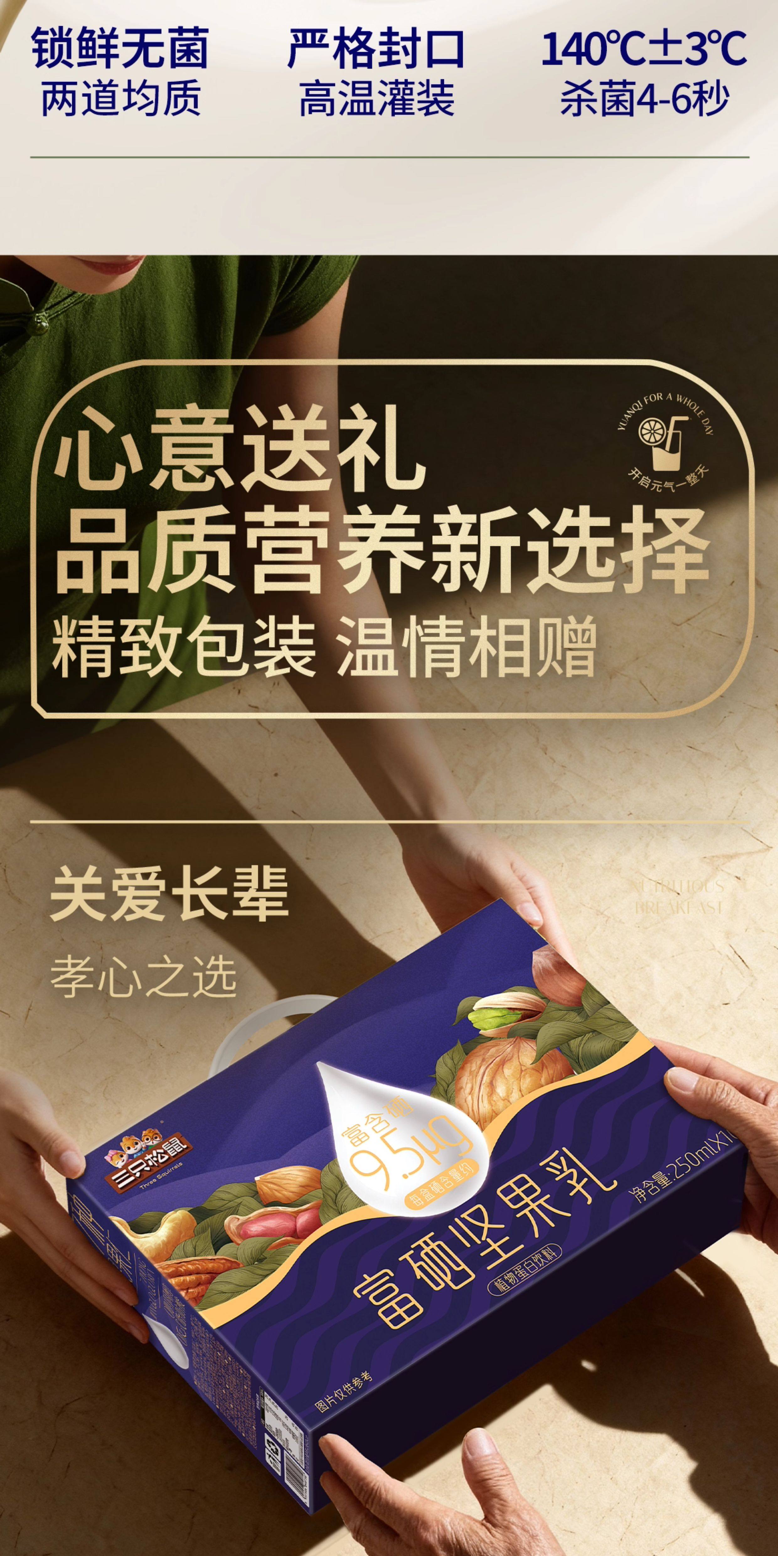 Three Squirrels Selenium-Rich Nut Milk Breakfast Milk Plant-Based Protein Beverage Student Gift Box Healthy New Year Gift