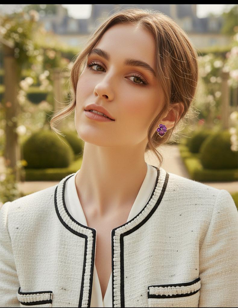 Eternelle French Eternal Iris Flower Earrings for Women, Exquisite, Compact, High-End Earrings, Accessible Luxury Fashion Earrings