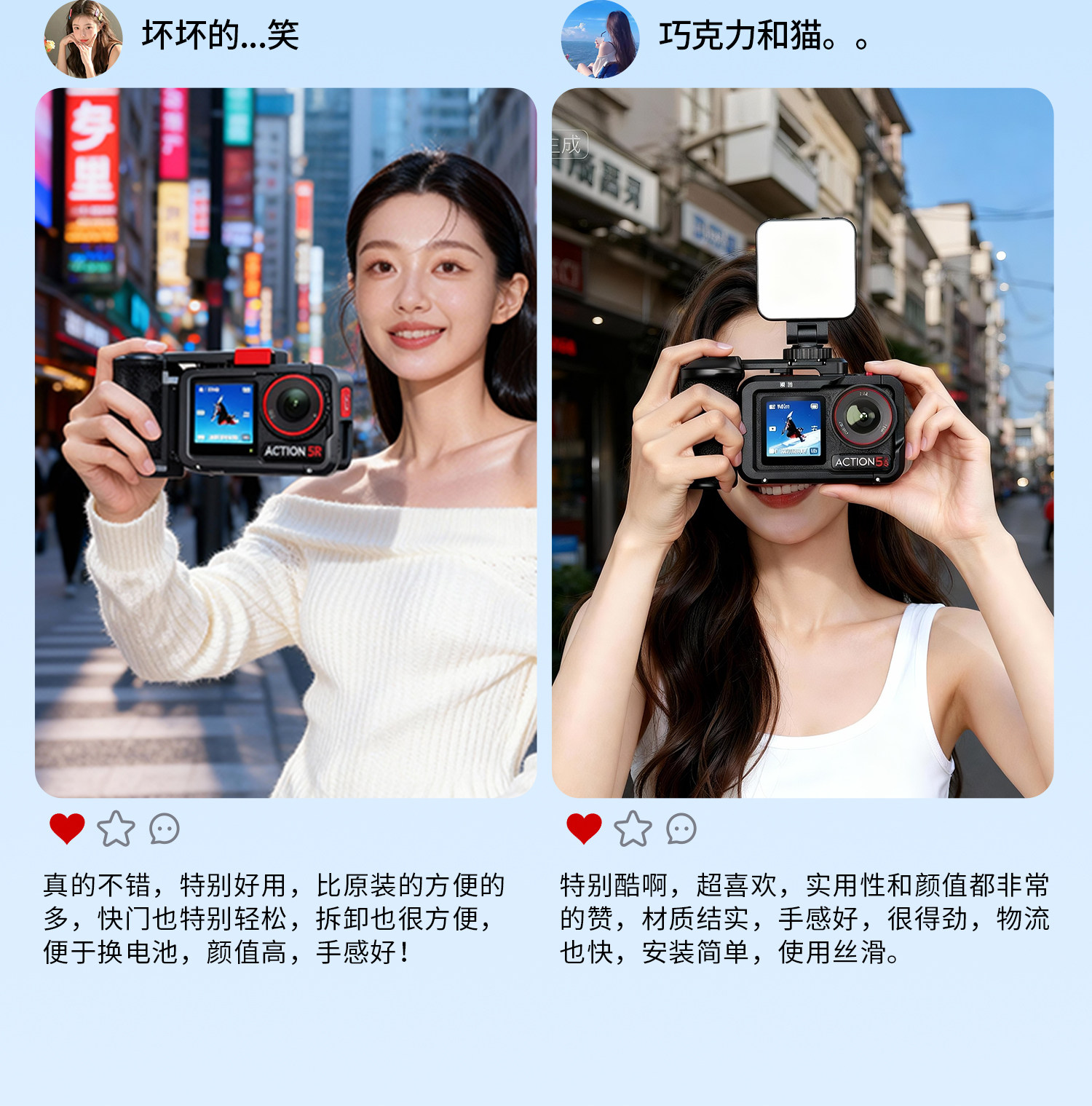 | Color Classification | Dji Action5Pro/4/3 Street Shooting Handle Set,Dji Action 5 Pro/4/3 Street Style Grip Kit + Battery,Dji Action 5 Pro/4/3 Street Style Grip Kit + Magnetic Quick Release,Dji Action 5 Pro/4/3 Street Style Grip Kit + Magnetic Quick Release Plate + Extension Tripod,Dji Action 5 Pro/4/3 Street Style Grip Kit + [Warm & Cool White] Magsafe Magnetic Pocket Fill Light,Dji Action 5 Pro/4/3 Street Style Grip Kit + [Rgb Full Color] Magsafe Magnetic Pocket Fill Light,Dji Action5Pro/4/3 Ultra-Light Metal Rabbit Cage,Dji Action 5 Pro/4/3 Ultra-Light Metal Cage Rig with Extension Tripod,Dji Action 6 Street Style Grip Kit,Dji Action 6 Street Style Grip Kit + Magnetic Quick Release,Dji Action 6 Street Style Grip Kit + Magnetic Quick Release Plate + Extension Tripod,Dji Action 6 Street Style Grip Kit + [Warm & Cool White] Magsafe Magnetic Pocket Fill Light,Dji Action 6 Street Style Grip Kit + [Rgb Full Color] Magsafe Magnetic Pocket Fill Light,Dji Action6 Ultra-Light Metal Rabbit Cage,Dji Action 6 Ultra-Light Metal Cage + Tripod |