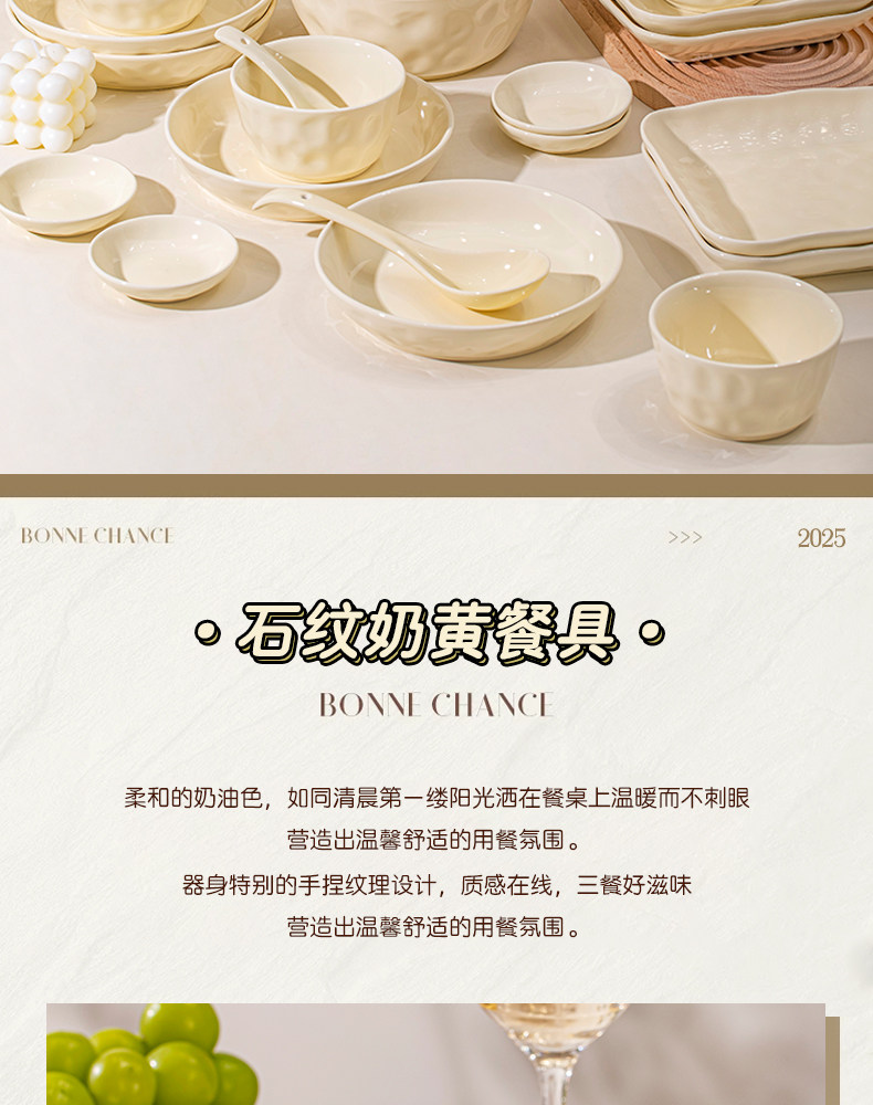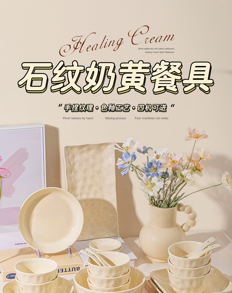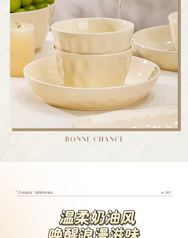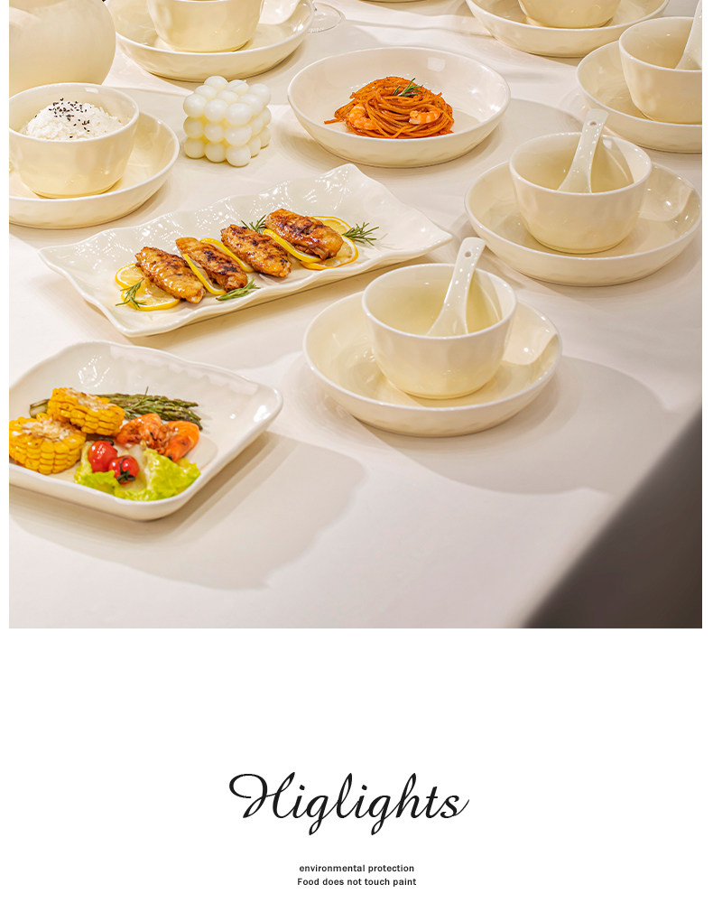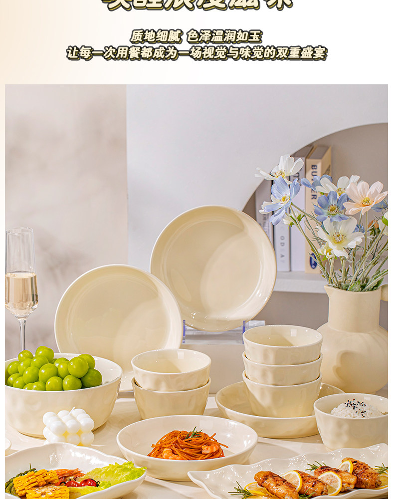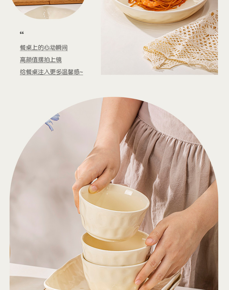 Underglaze Color Bowl and Plate Set for Home Use 2025 New Model High-Value Bowl and Plate Set with a High-End Cream Style Tableware Set