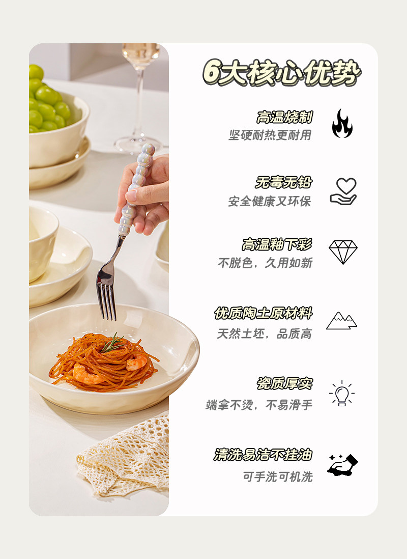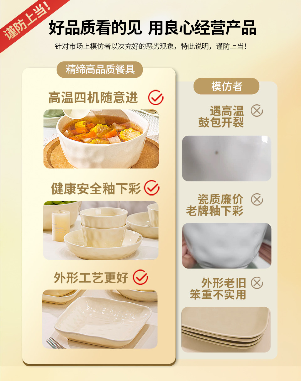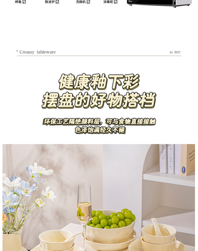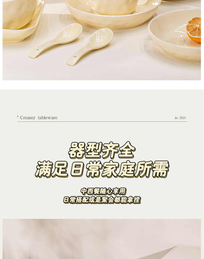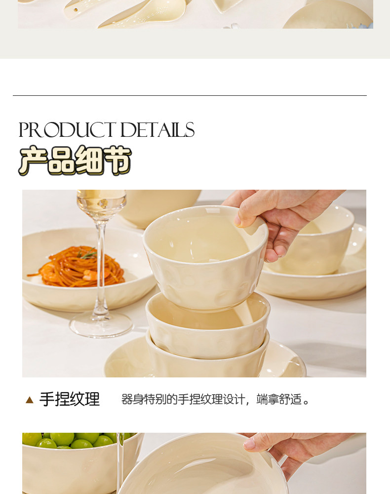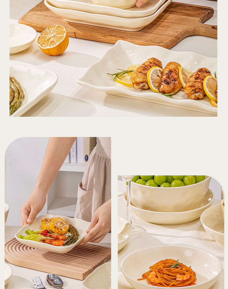 Underglaze Color Bowl and Plate Set for Home Use 2025 New Model High-Value Bowl and Plate Set with a High-End Cream Style Tableware Set