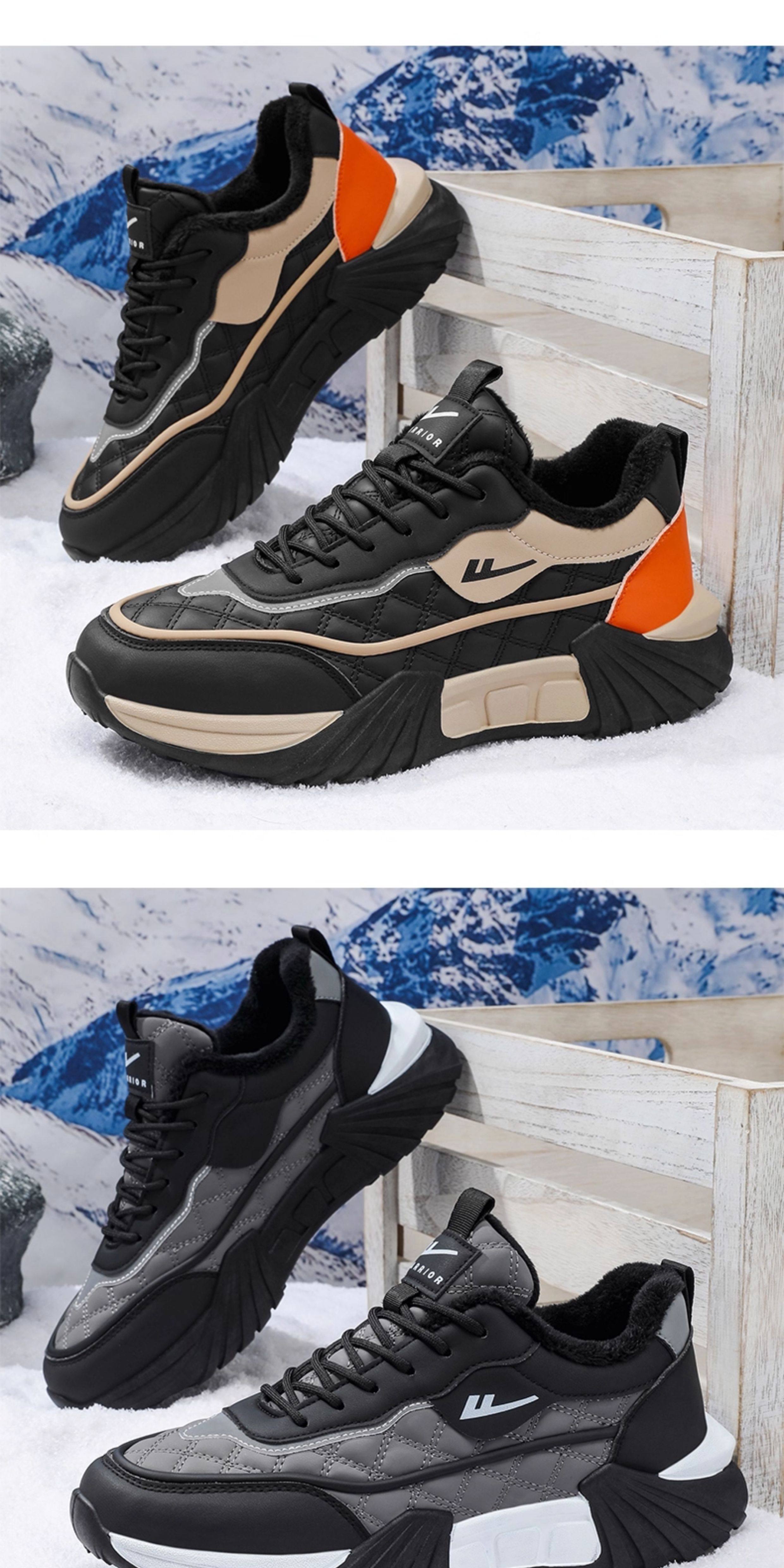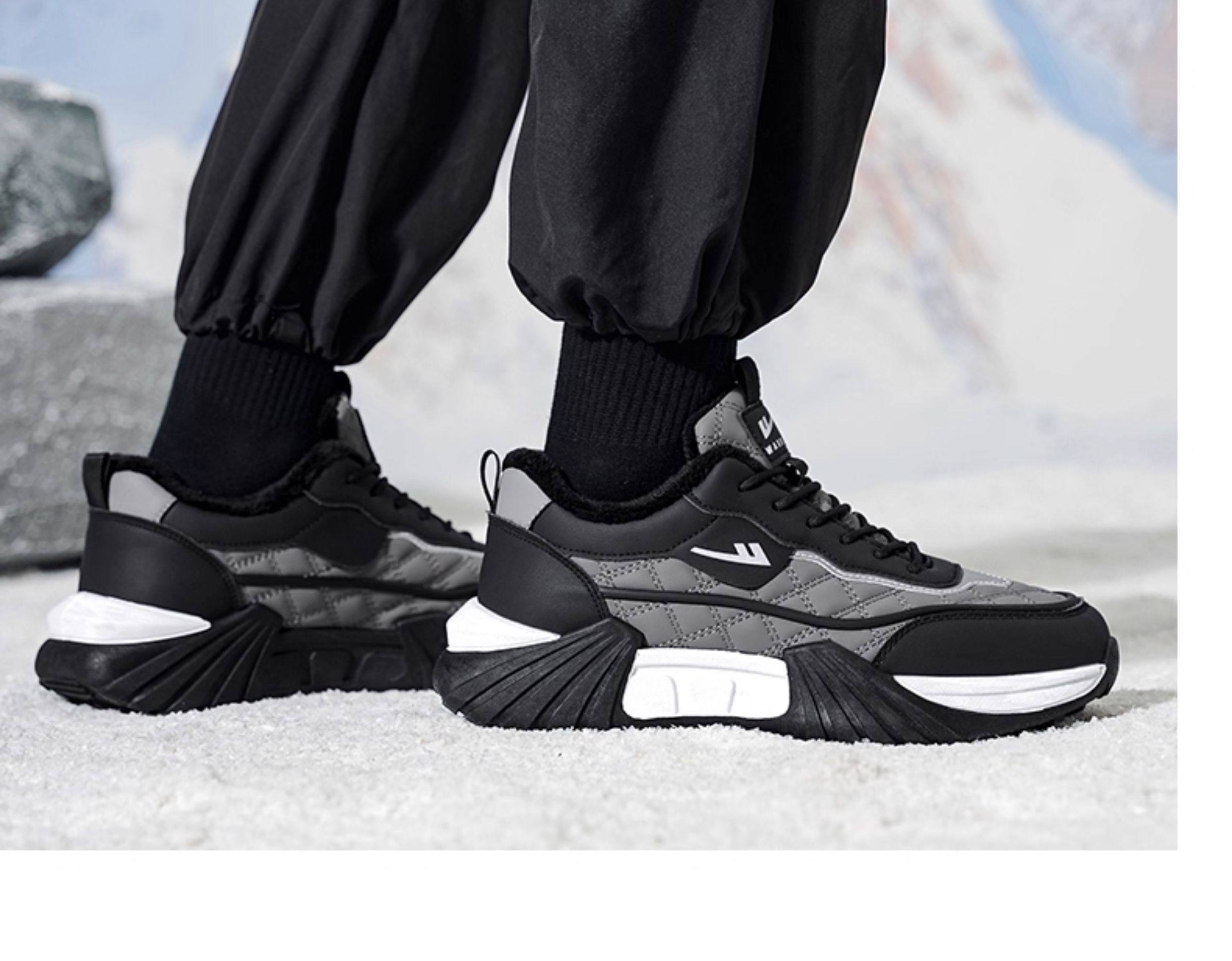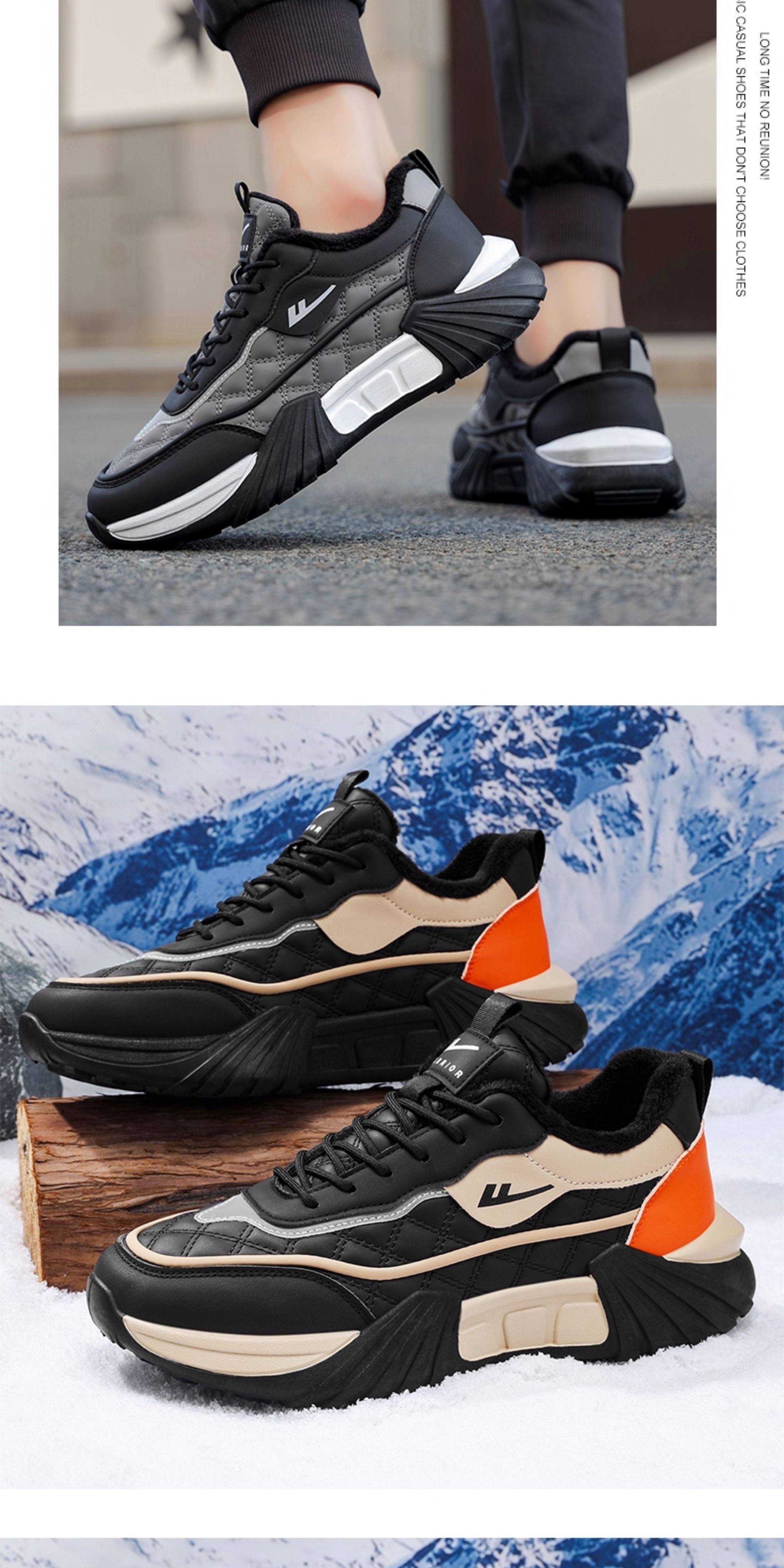 Pull-Back Shoes Men's Shoes 2025 New Winter Fleece-Lined Warm Cotton Shoes Thick-Soled Casual Sports Shoes Leather Upper Dad Shoes Trendy