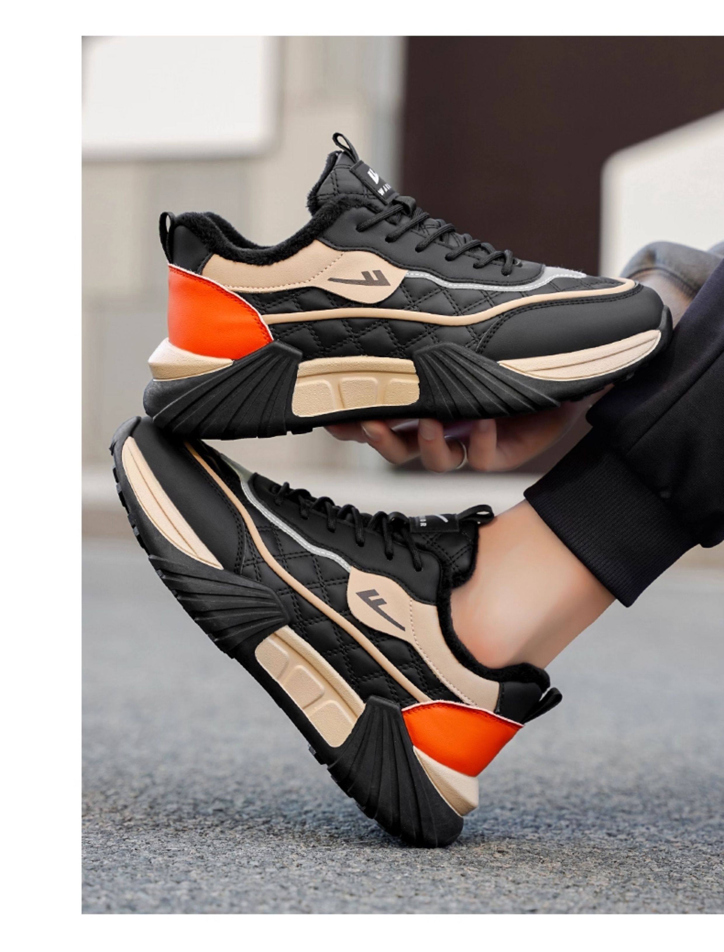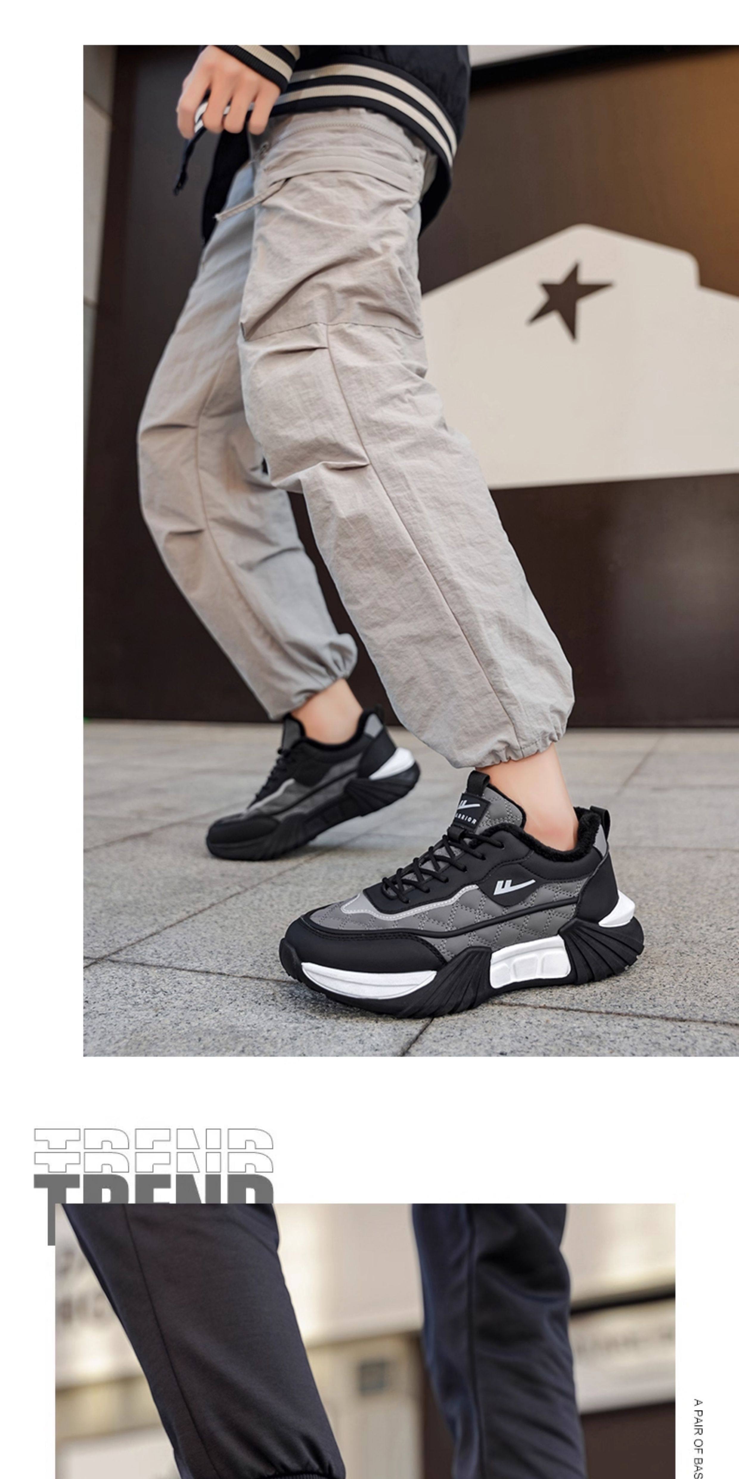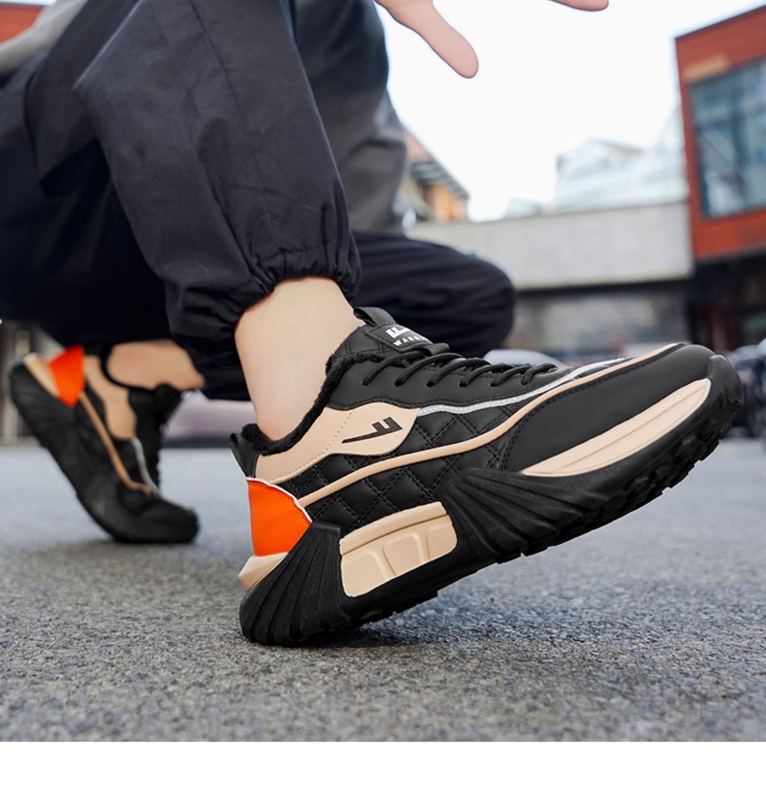 Pull-Back Shoes Men's Shoes 2025 New Winter Fleece-Lined Warm Cotton Shoes Thick-Soled Casual Sports Shoes Leather Upper Dad Shoes Trendy