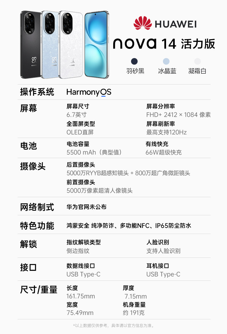 Interest-Free Installment Payment Huawei Nova 14 Vitality Edition 12+512g 66W Super Fast Charging 7.15mm Thin and Light Flat Screen Nfc Function Smart Camera Gaming Student Genuine Mobile Phone