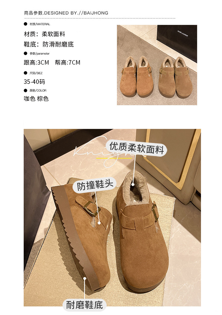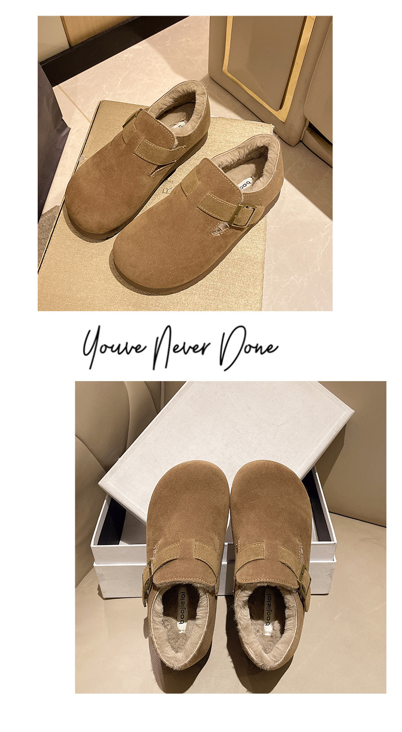 Women's Winter 2025 New Style Birkenstock Shoes with Plush Lining, Leather Surface, Warm, Soft Sole, Outdoor Wear, Furry Shoes, Cotton Shoes, Thick Sole