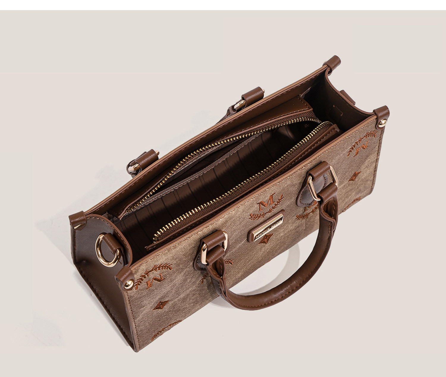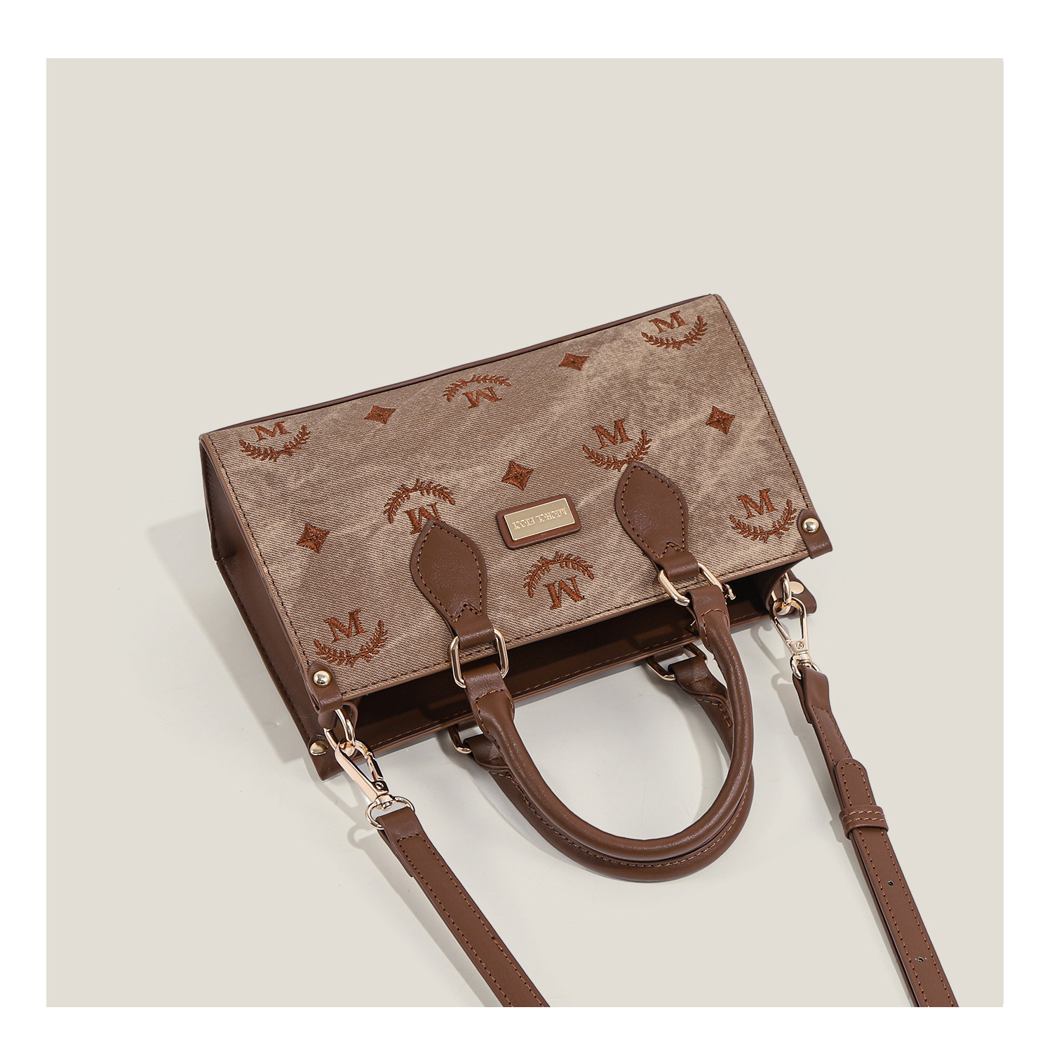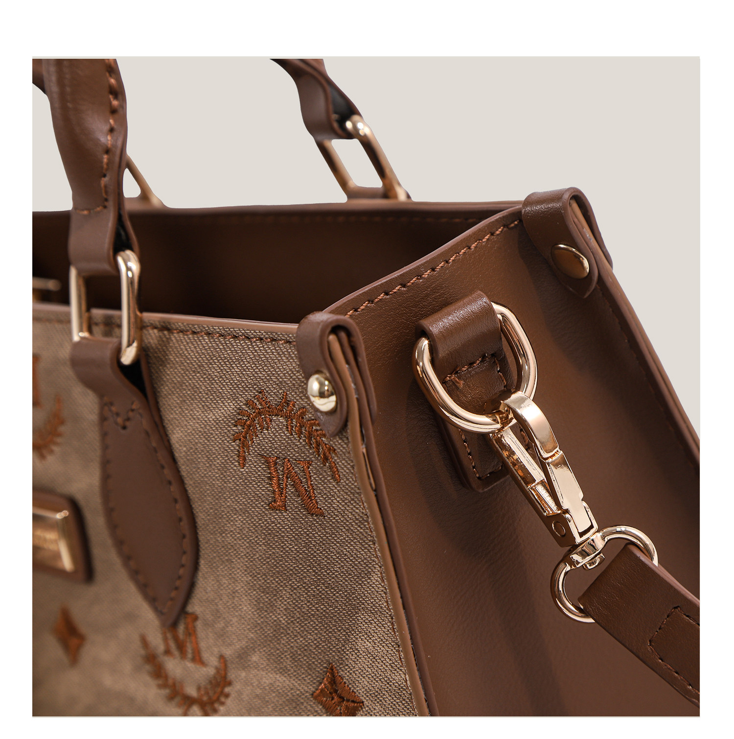 Ctlnokegin Light Retro Embroidered Commuter Bag Women's Handbag Crossbody Bag Versatile Caramel Tote Bag
