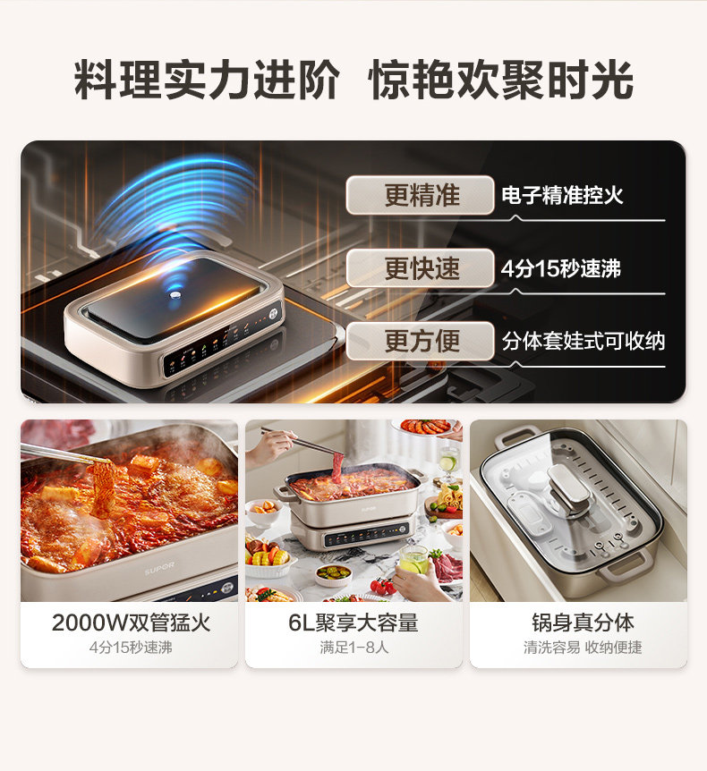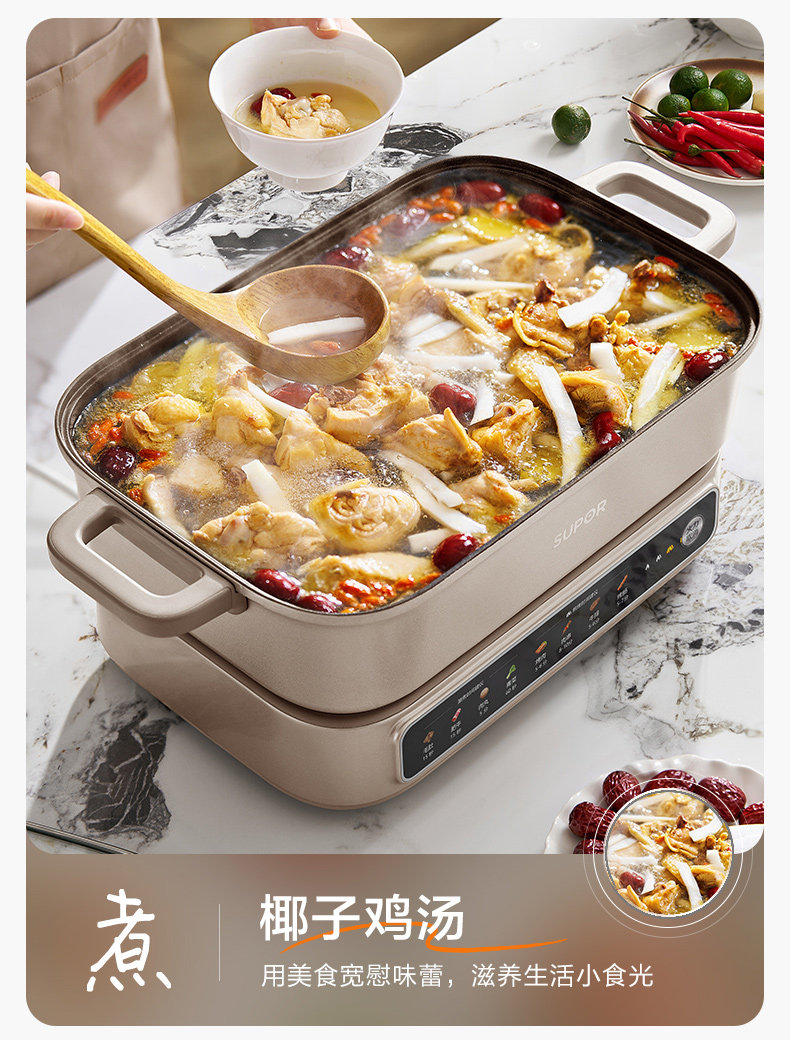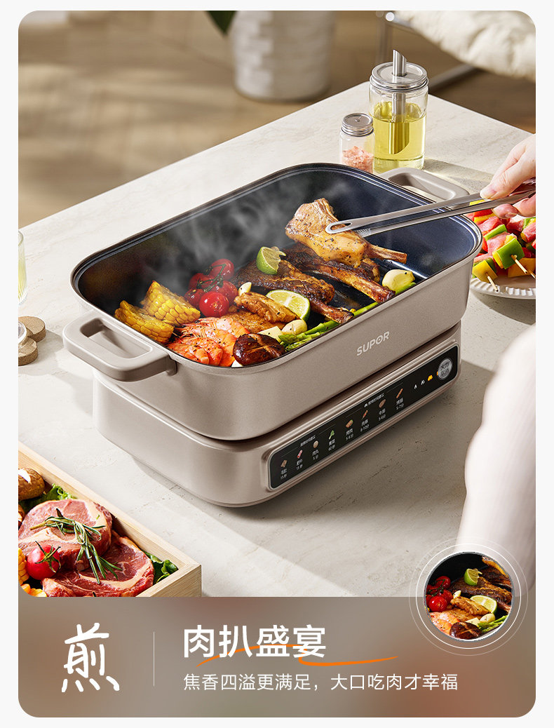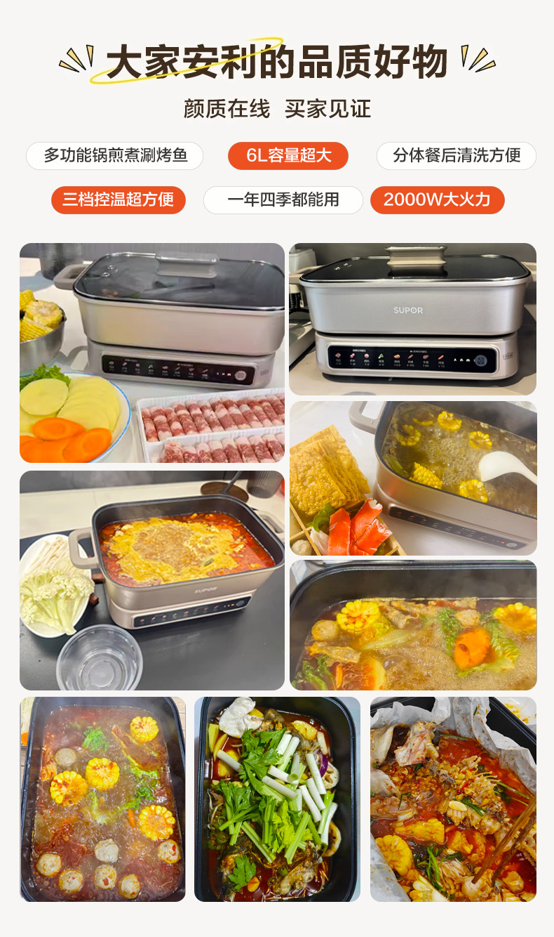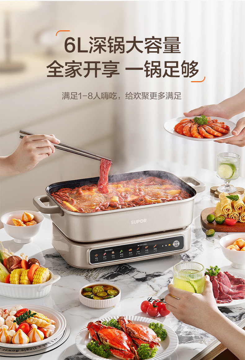 Supor Electric Hot Pot for Home Use, 6L Split-Type Electric Cooking Pot, Multifunctional Cooking Pot for Grilling Fish and Meat, Flagship Store New Model