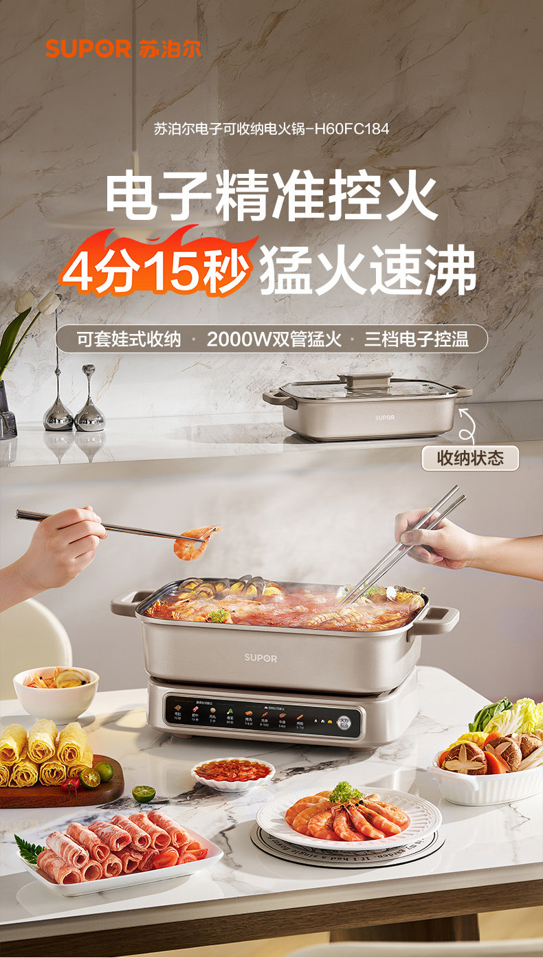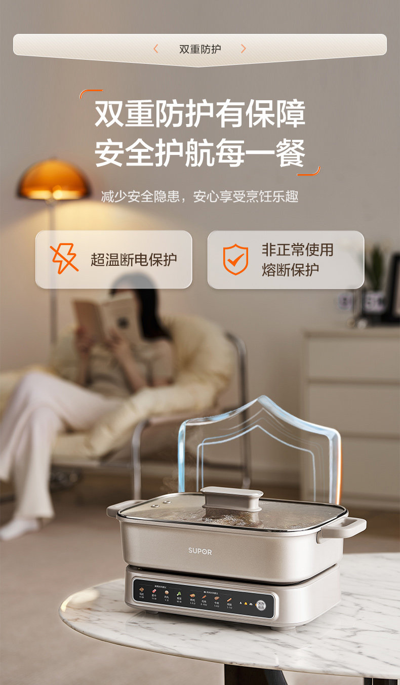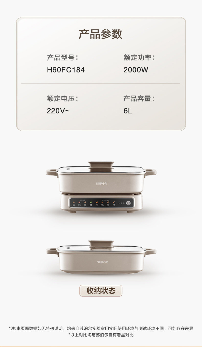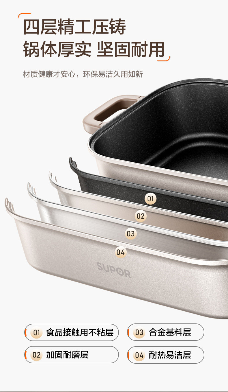 Supor Electric Hot Pot for Home Use, 6L Split-Type Electric Cooking Pot, Multifunctional Cooking Pot for Grilling Fish and Meat, Flagship Store New Model