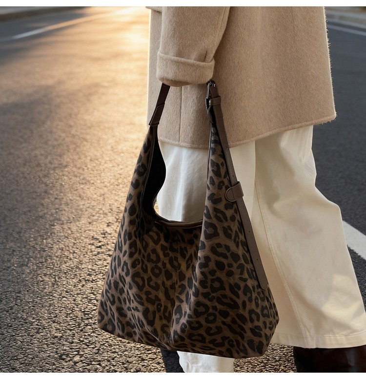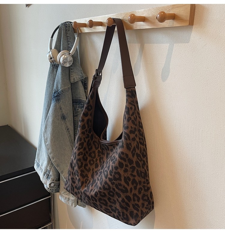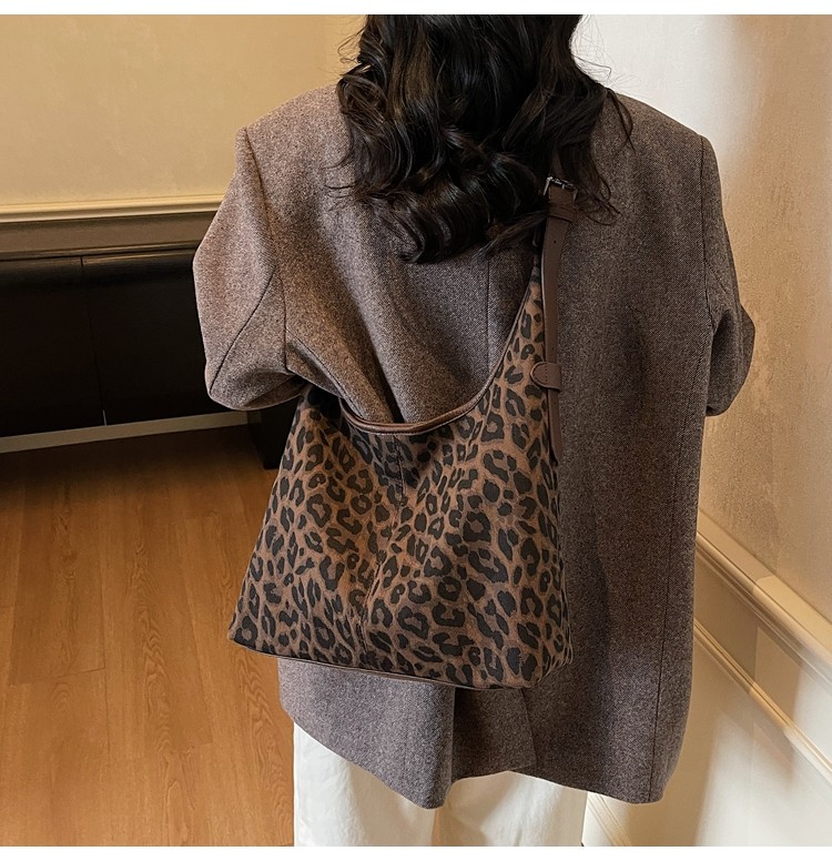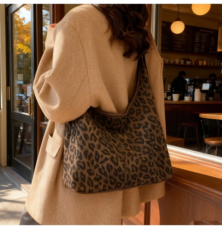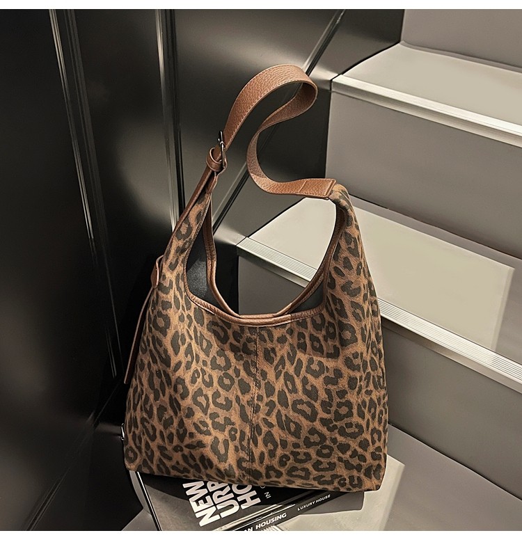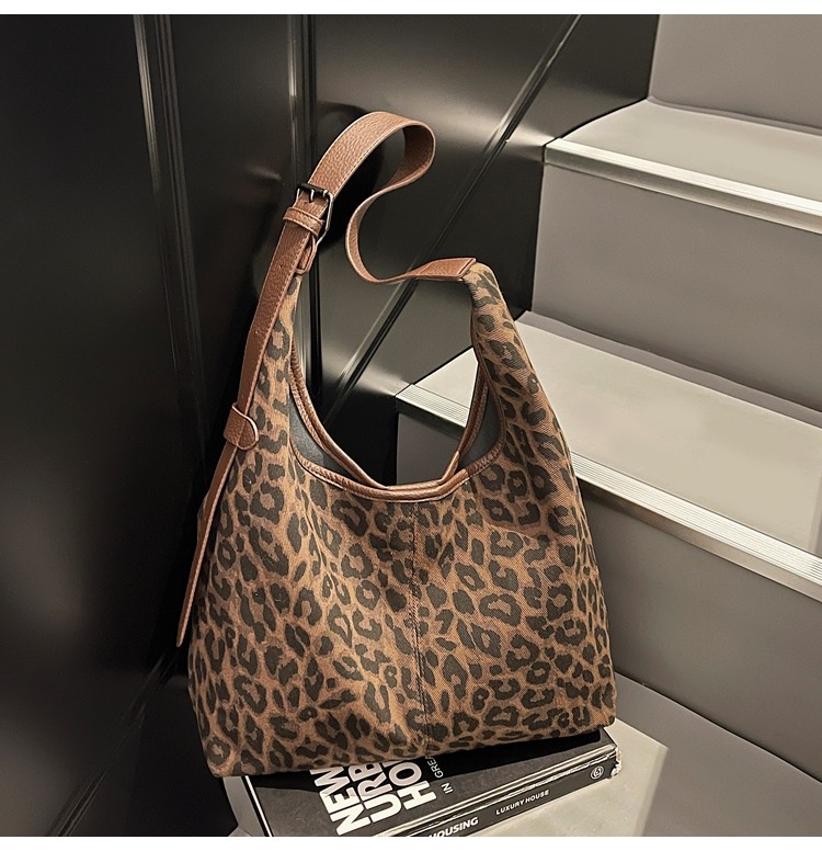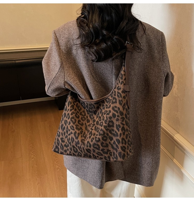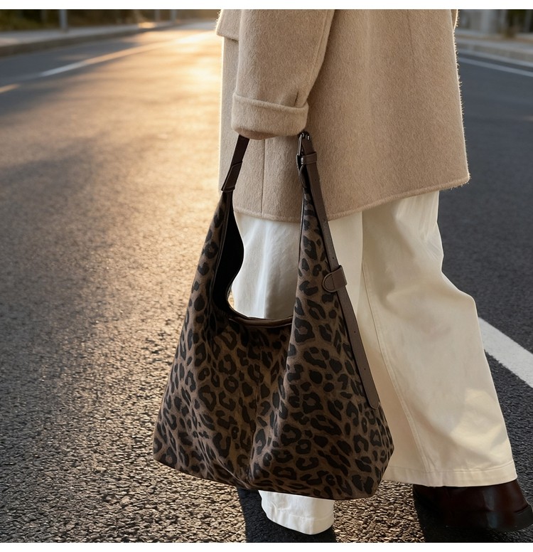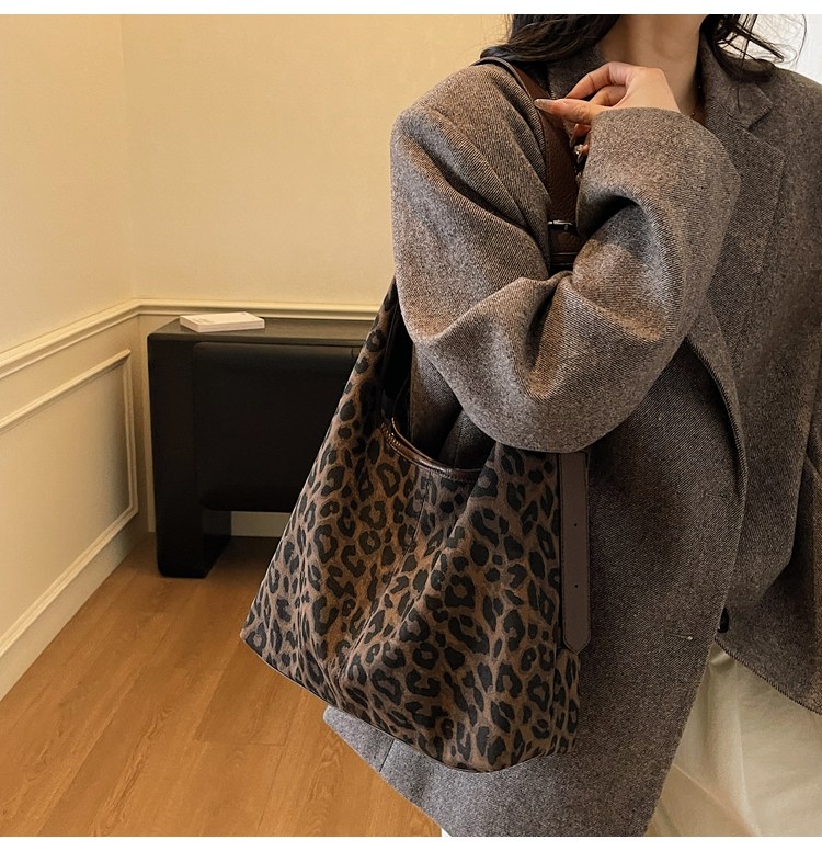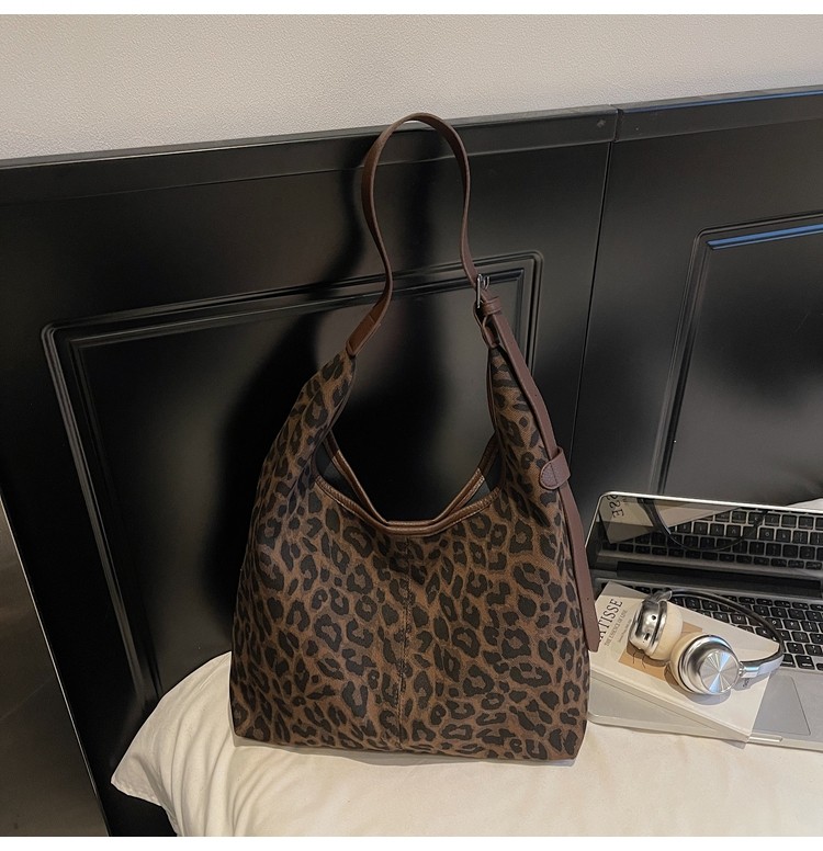 Lazy Style Retro Leopard Print Bag for Women 2025 New Large Capacity Tote Bag Autumn and Winter Work Clothing Shoulder Crossbody Large Bag