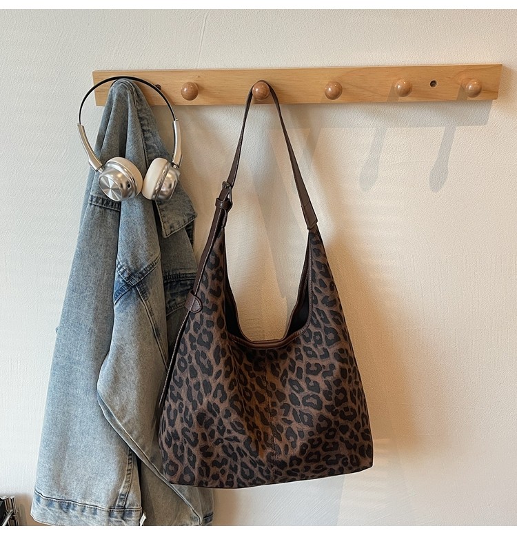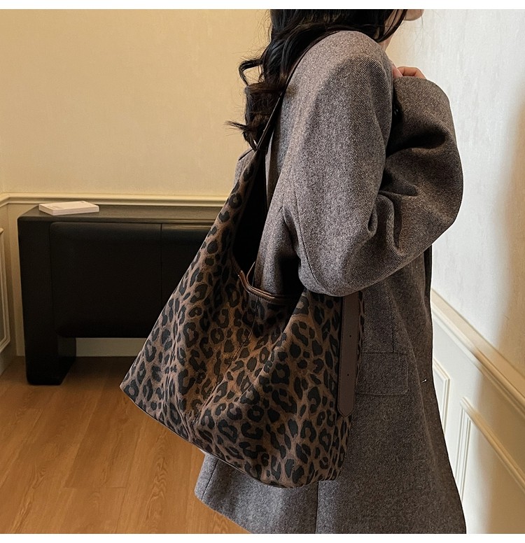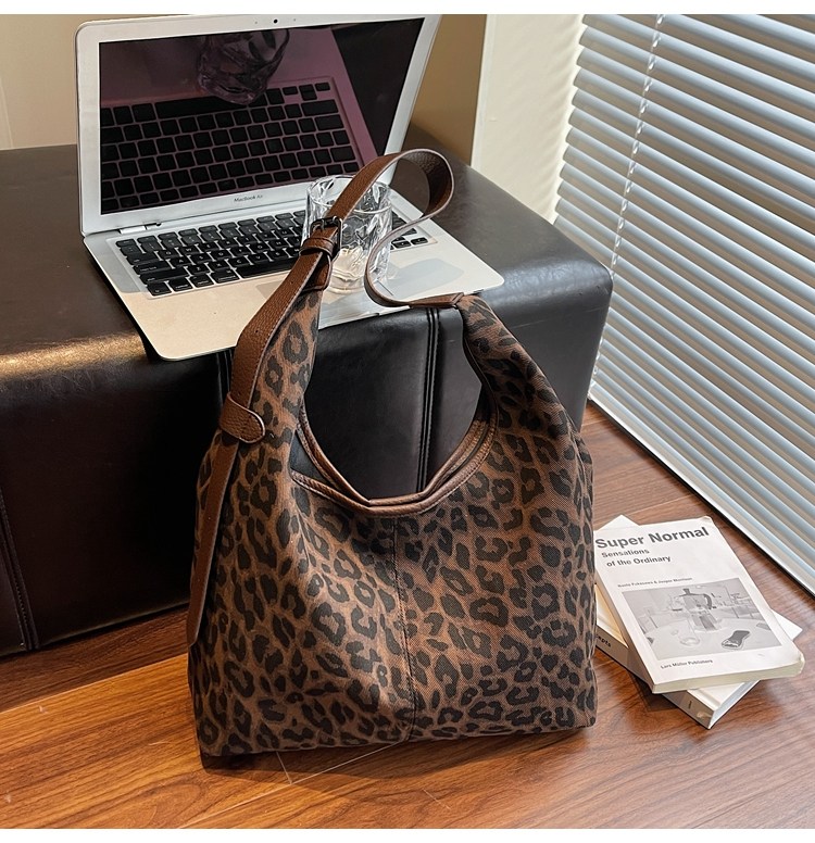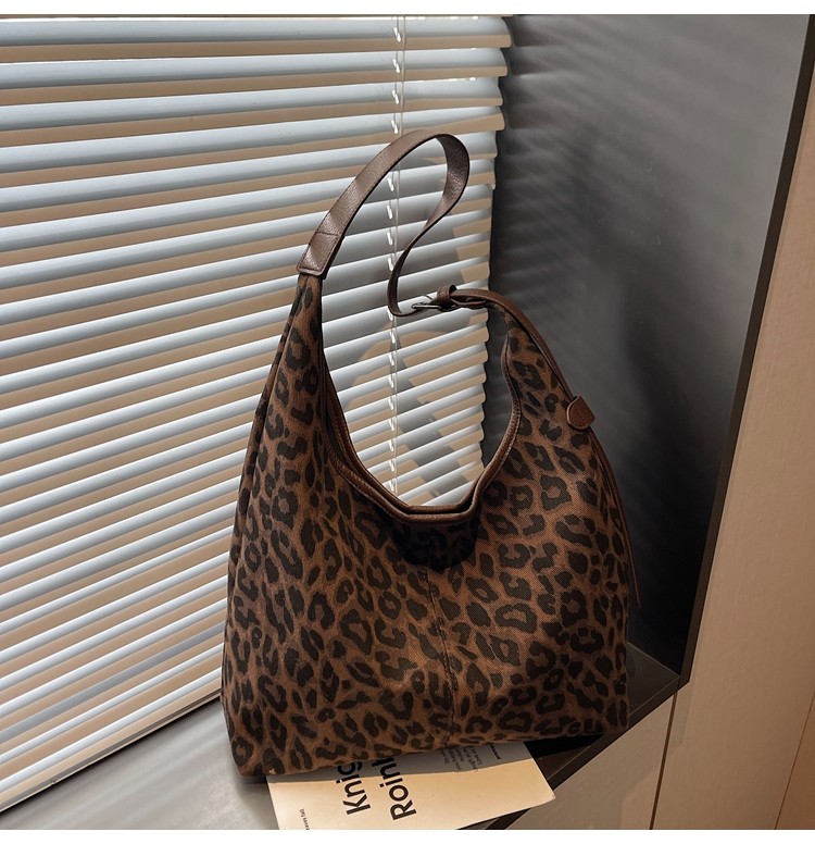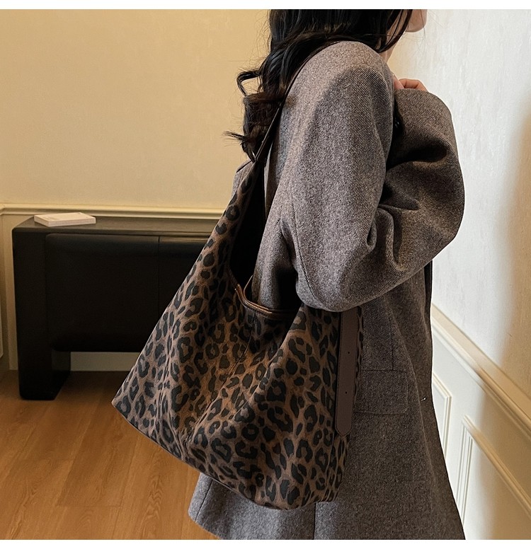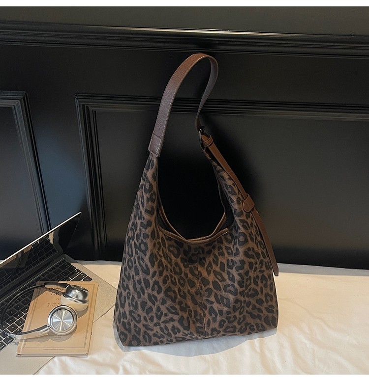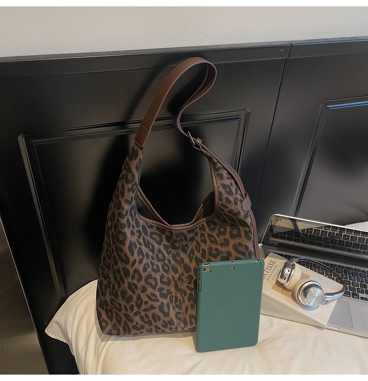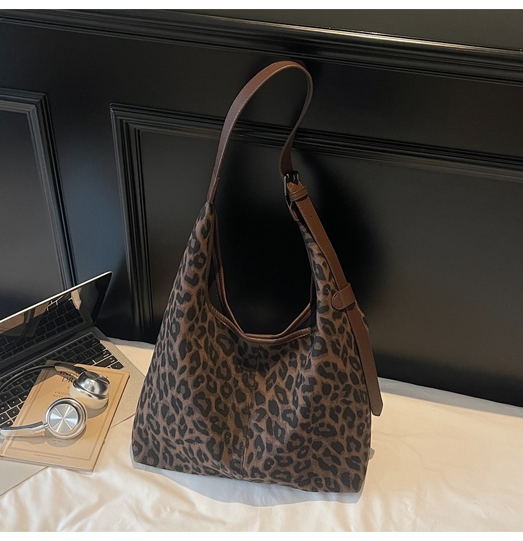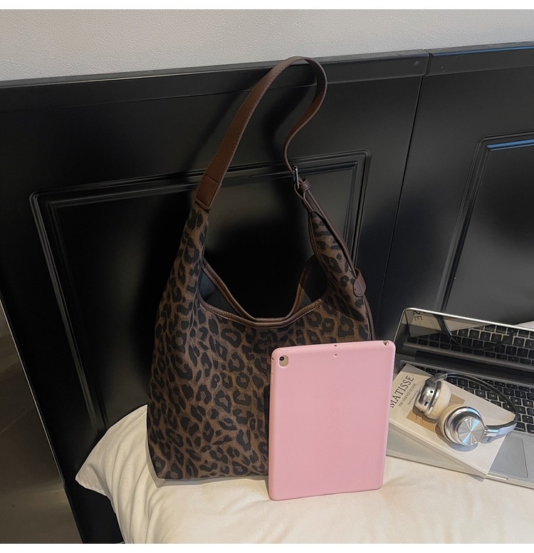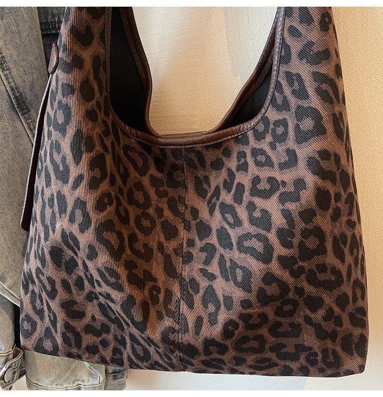 Lazy Style Retro Leopard Print Bag for Women 2025 New Large Capacity Tote Bag Autumn and Winter Work Clothing Shoulder Crossbody Large Bag