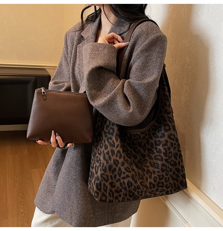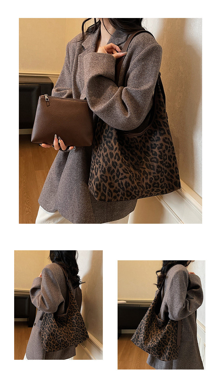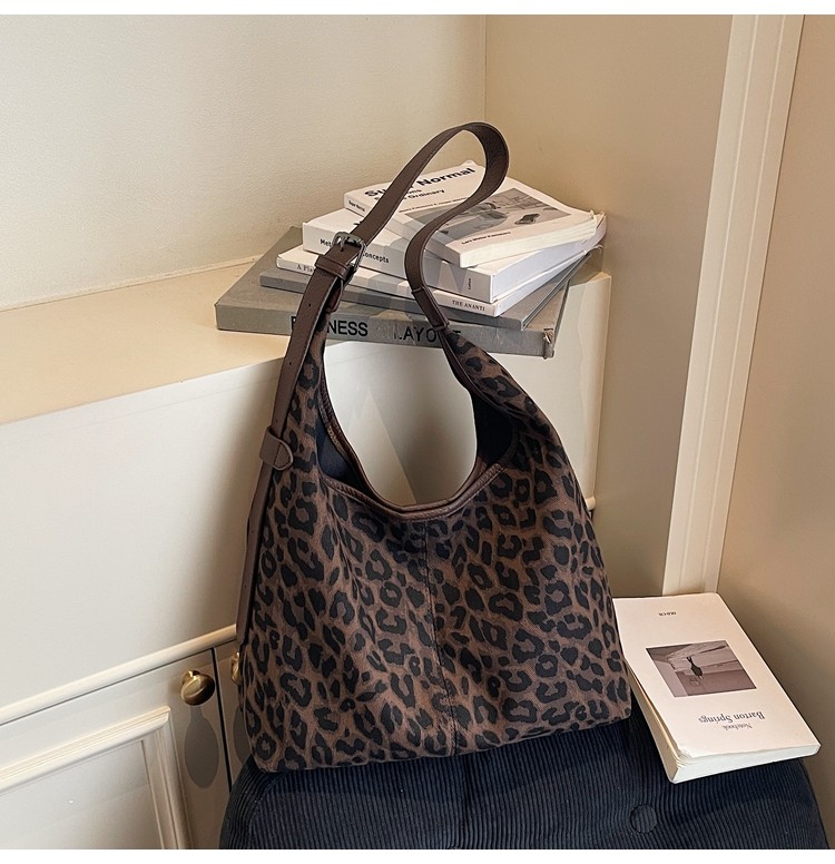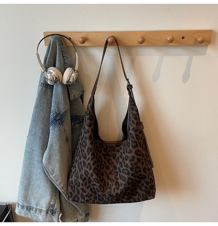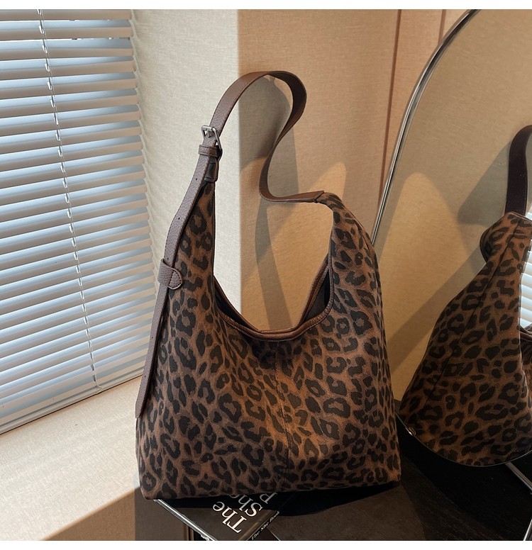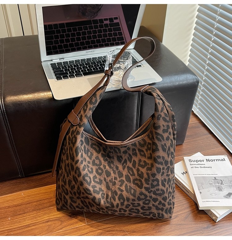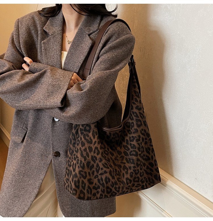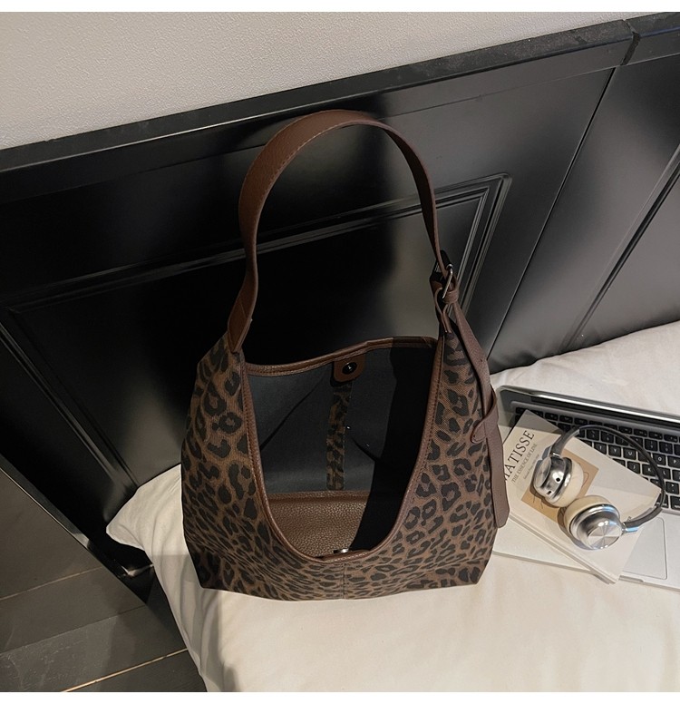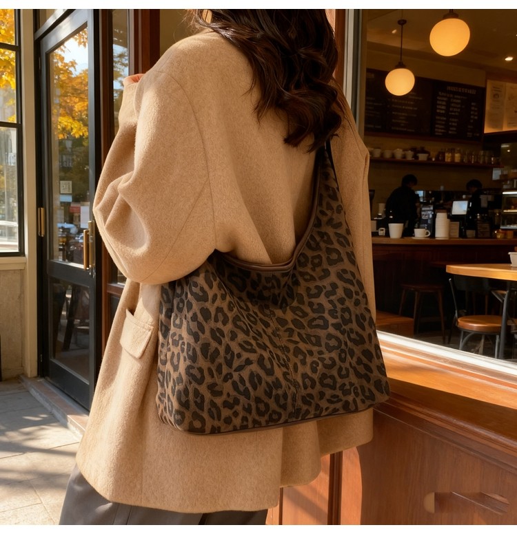 Lazy Style Retro Leopard Print Bag for Women 2025 New Large Capacity Tote Bag Autumn and Winter Work Clothing Shoulder Crossbody Large Bag