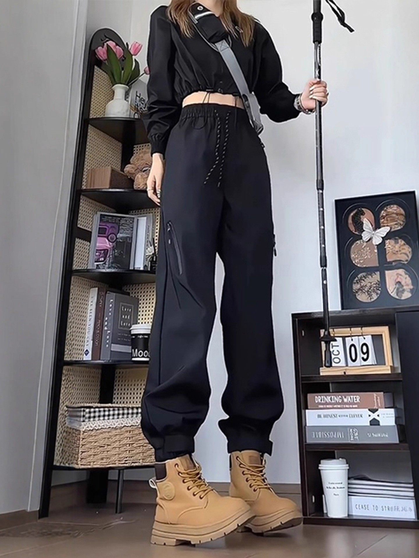 Black Fleece-Lined Jogger Pants for Men and Women, Thickened for Autumn and Winter, Cold-Resistant, Suitable for Skiing in Northeast, Hiking, and Mountaineering