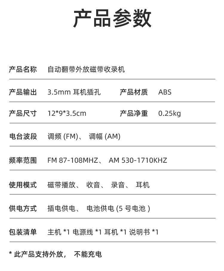 Tape Player, Cassette Player, Recording, External Speaker, Automatic Tape Flipping, Fm Radio