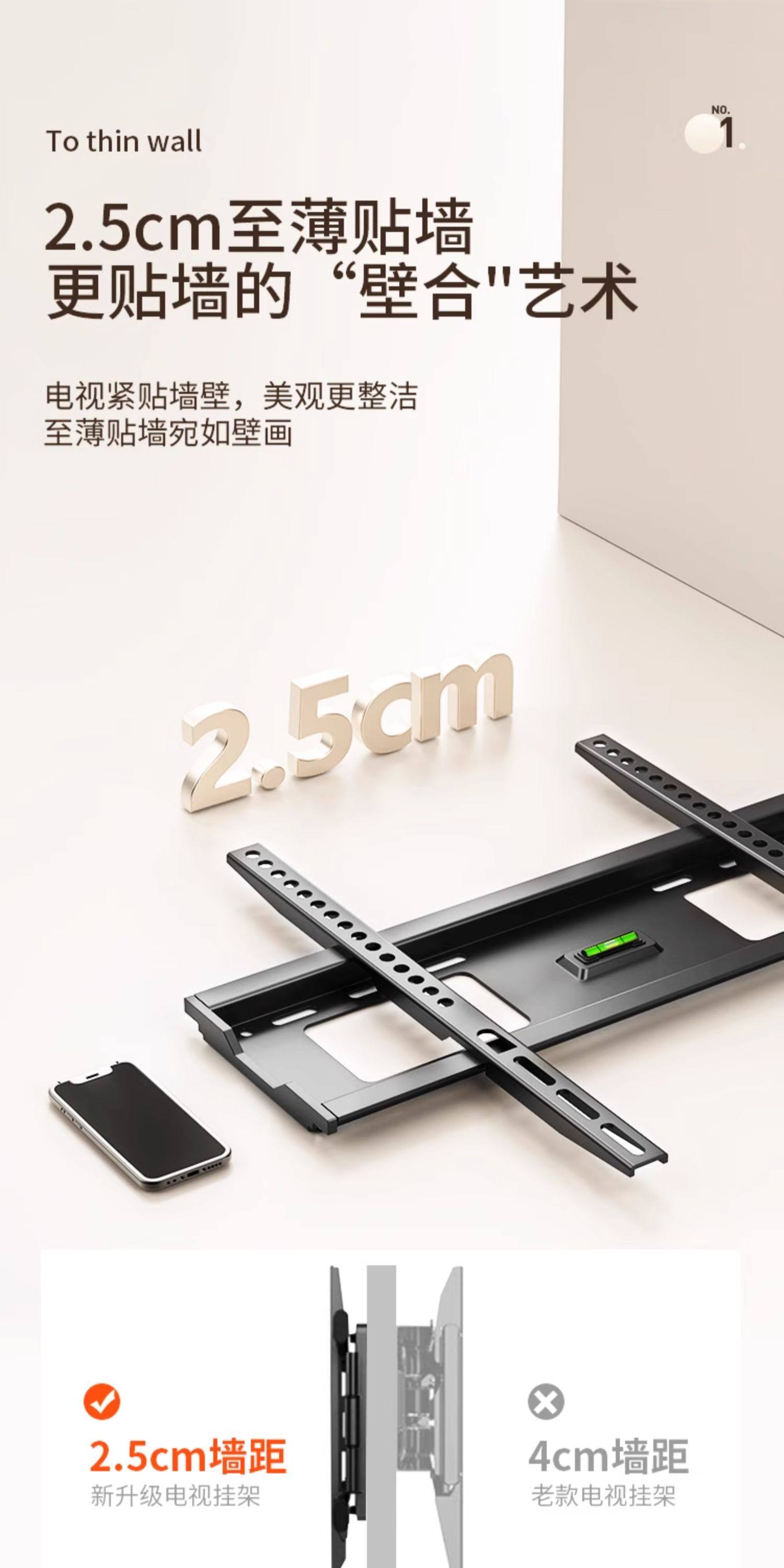 Universal Tv Wall Mount Bracket Ultra-Thin Suitable for Xiaomi Hisense Tcl Skyworth 75 85 Inch 1736
