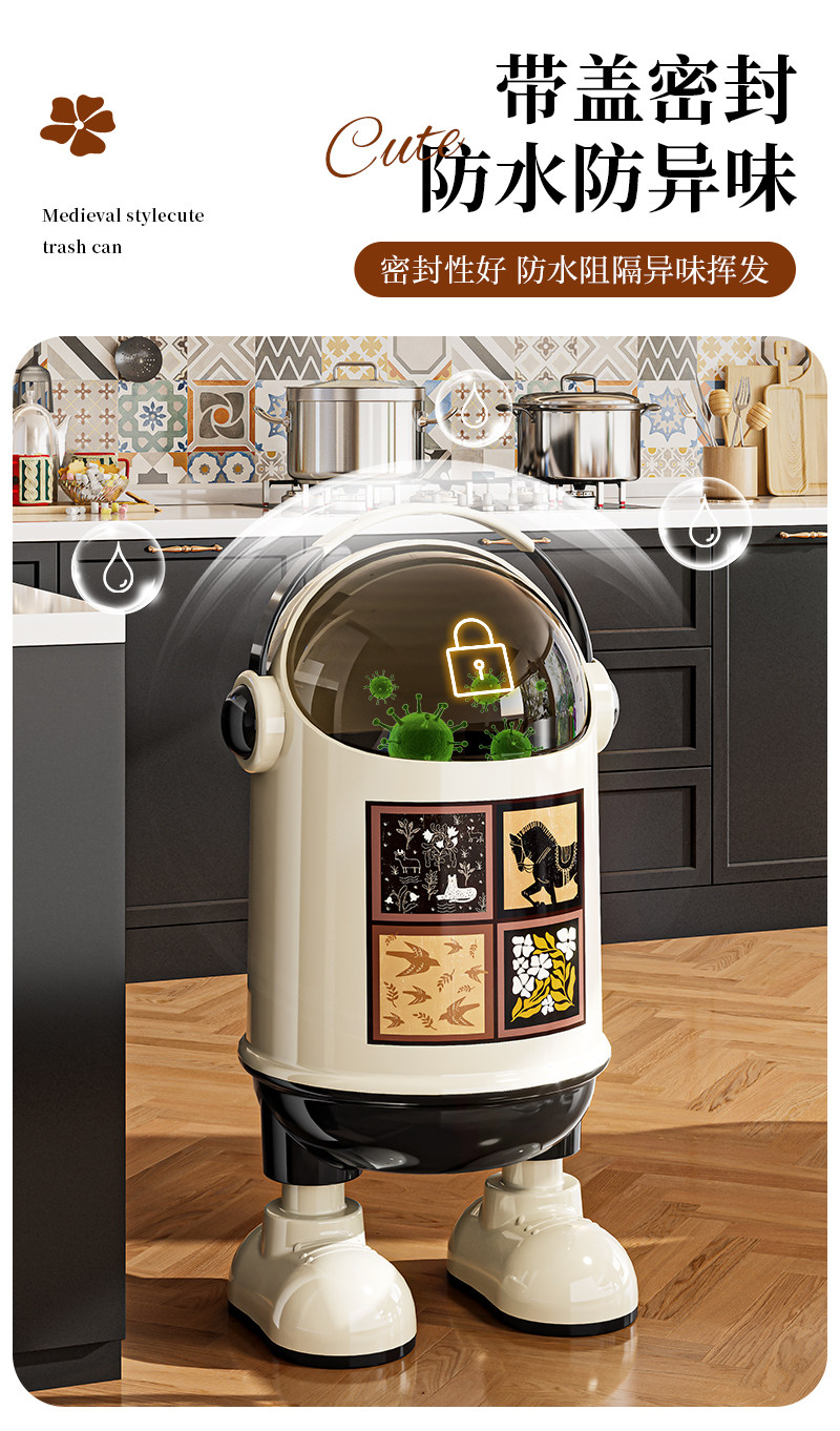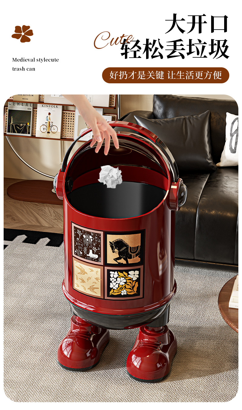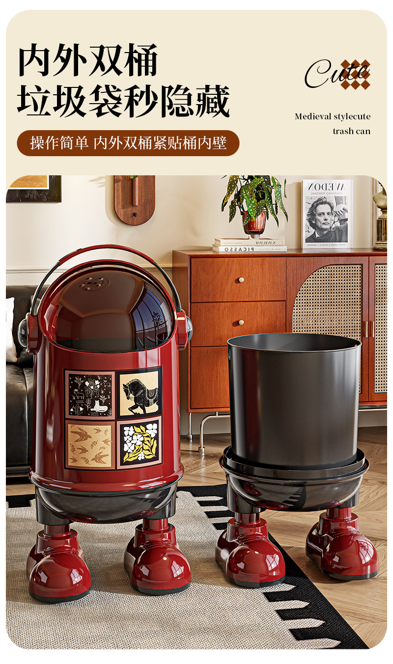 Vintage-Style Trash Can for Home Use, 2025 New Model, High Aesthetic Value, Large Capacity, Creative Flip-Top Wastebasket for Living Room, Bedroom, and Kitchen