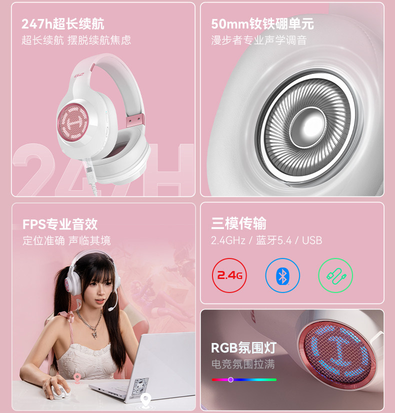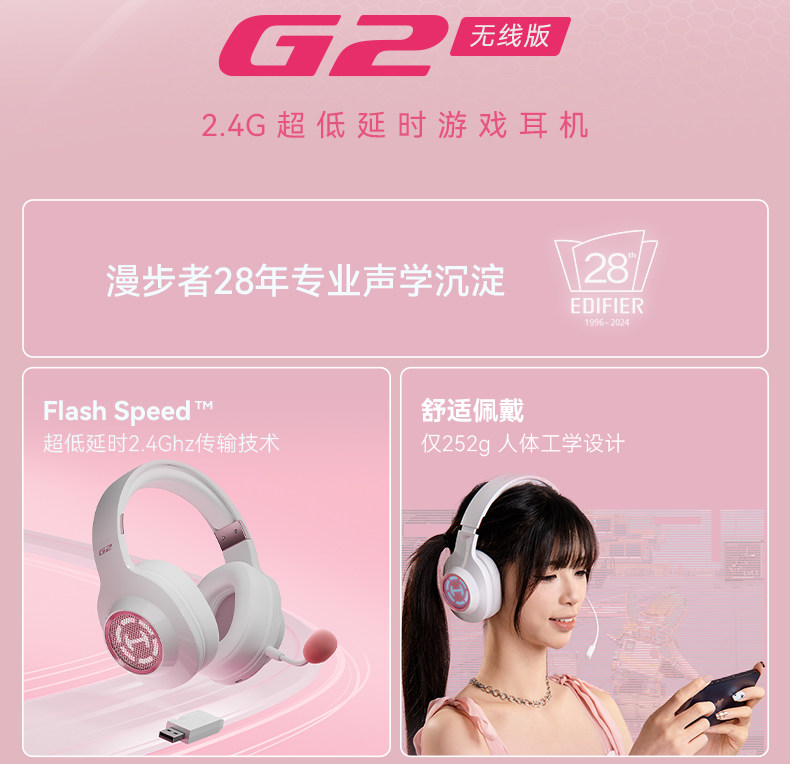 Edifier G2 Wireless Bluetooth Headset Over-Ear Gaming Headset for Pubg, Cat Ear Design for Girls, Computer Headset