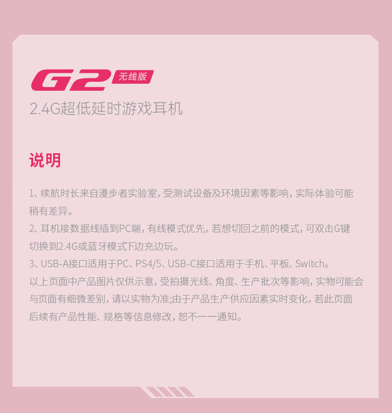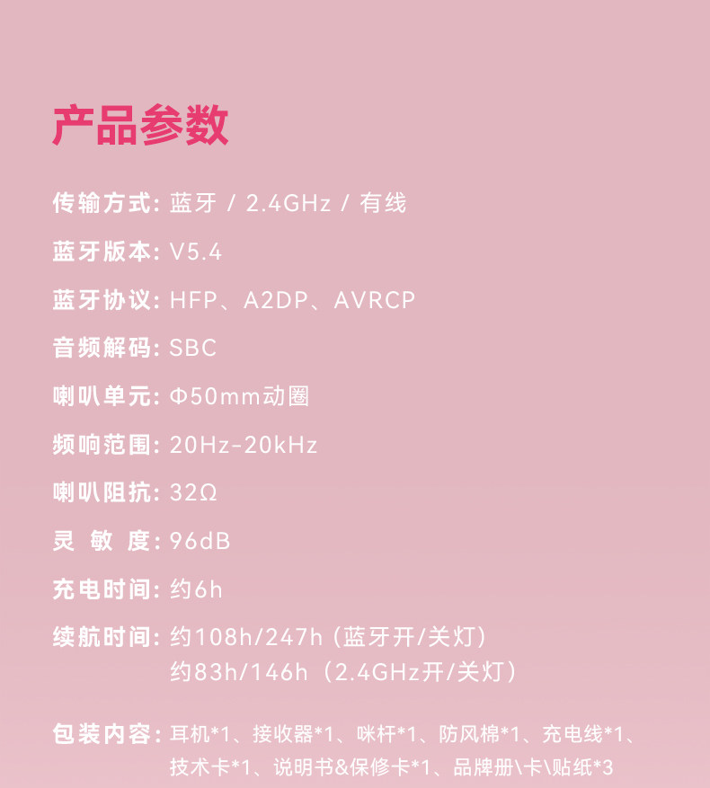 | Connection Method of Headphones and Playback Devices | 2.4 g |