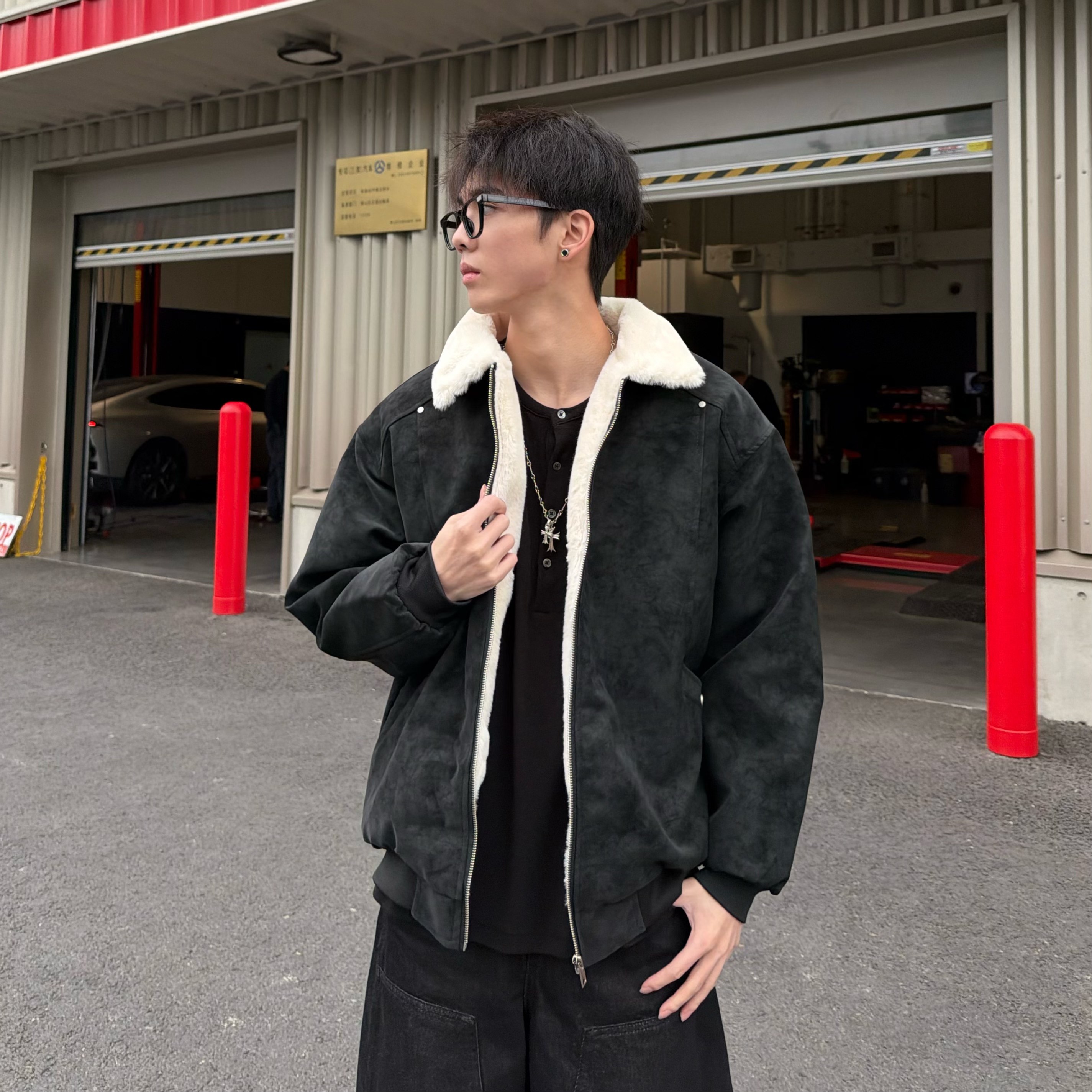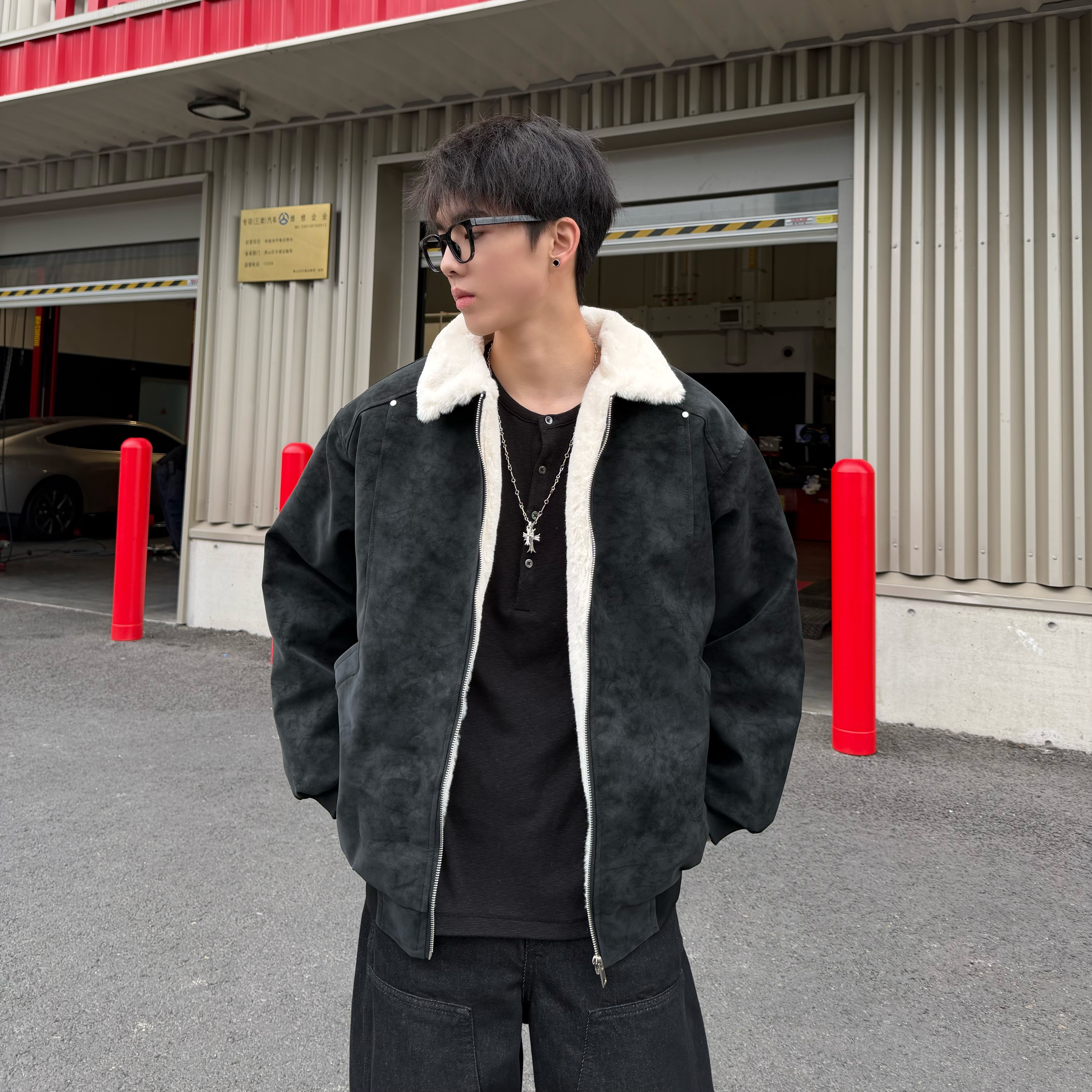 Men's Winter Cotton Jacket with Faux Rabbit Fur, Matte Pu Leather, Fleece-Lined, Thickened, American Retro Style, Warm Coat