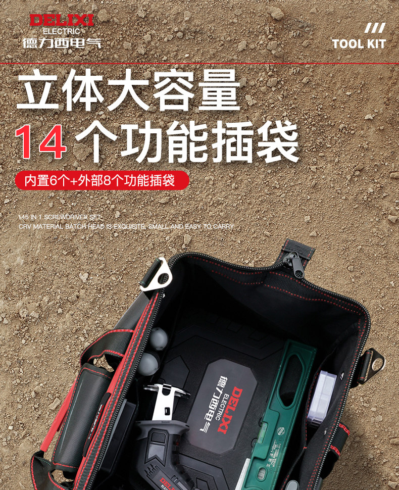 Delixi Electric Tool Bag Is a Sturdy and Durable Canvas Multi-Functional Portable Storage Bag for Electrician Hardware Boxes