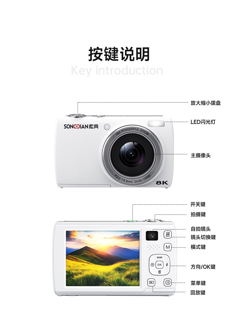 Songdian 8K Full-Color Night Vision Digital Camera Student Party High-Definition Travel Touchscreen Camera Compact Camera Replaces Ccd