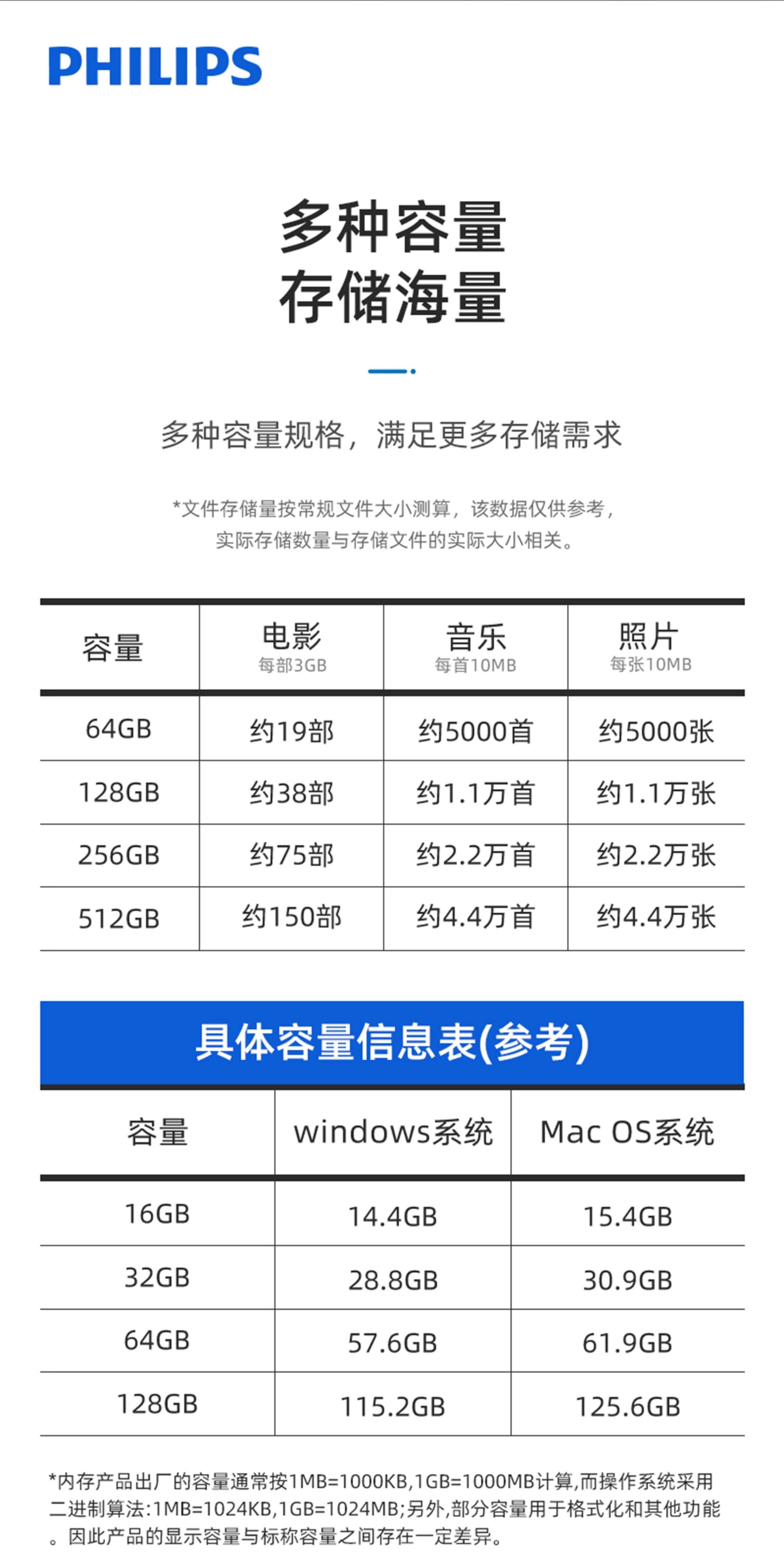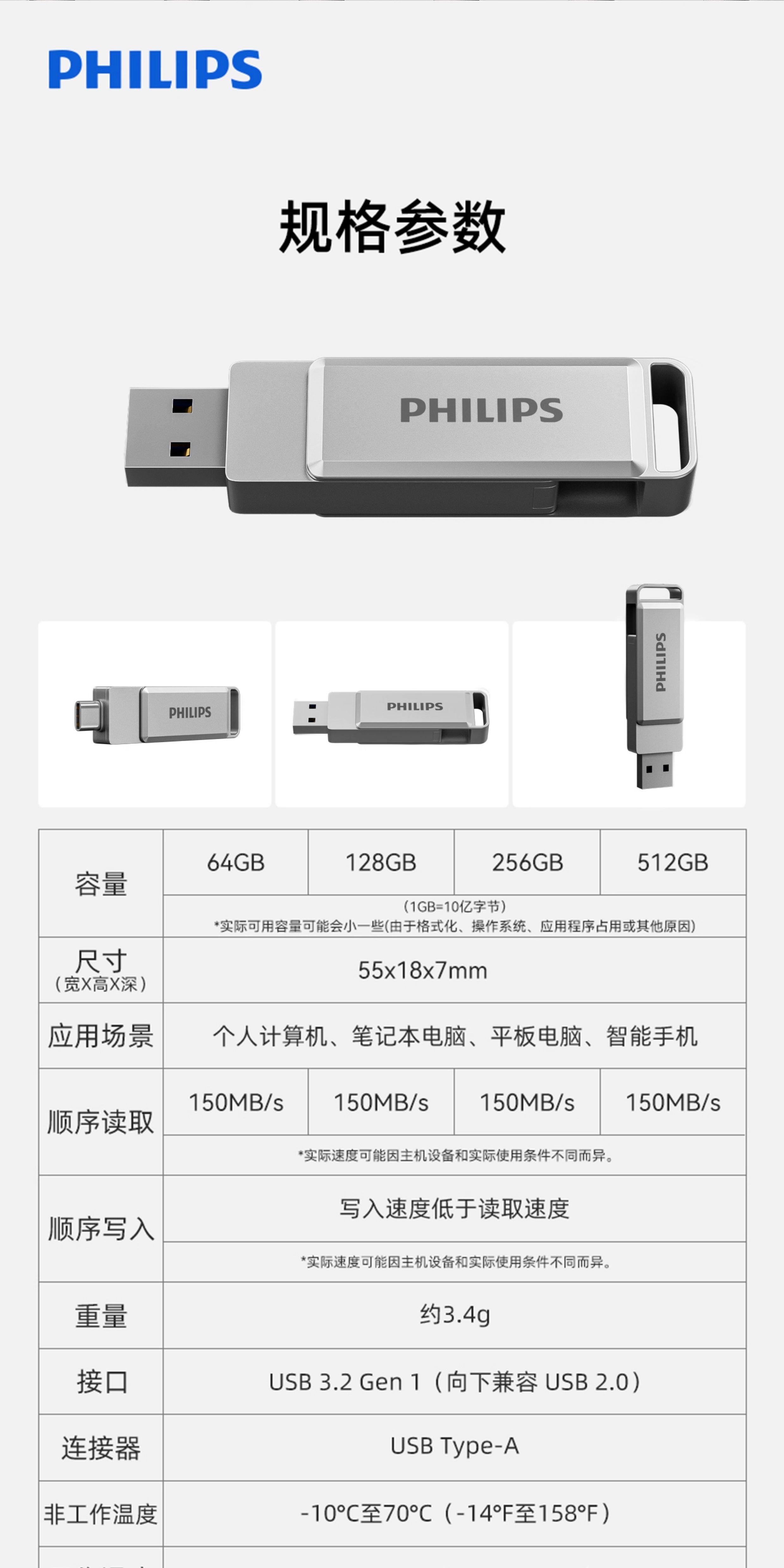 Philips Official Genuine USB Flash Drive Typec Dual-Head for Mobile Phones and Computers, Dual-Use for Teachers, Large Capacity, High-Speed Memory USB Flash Drive