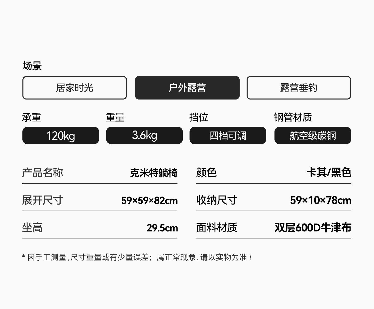 | Material | Carbon Steel + Oxford Cloth |