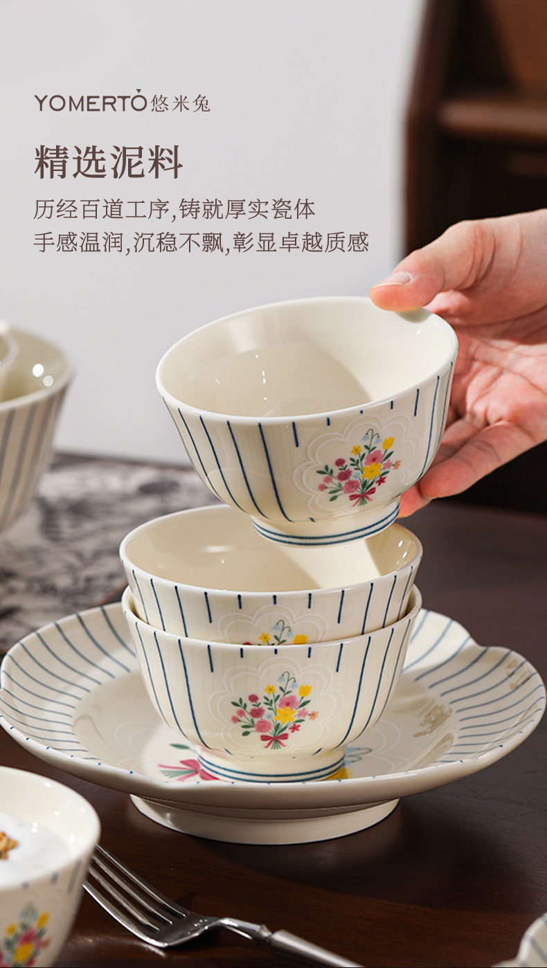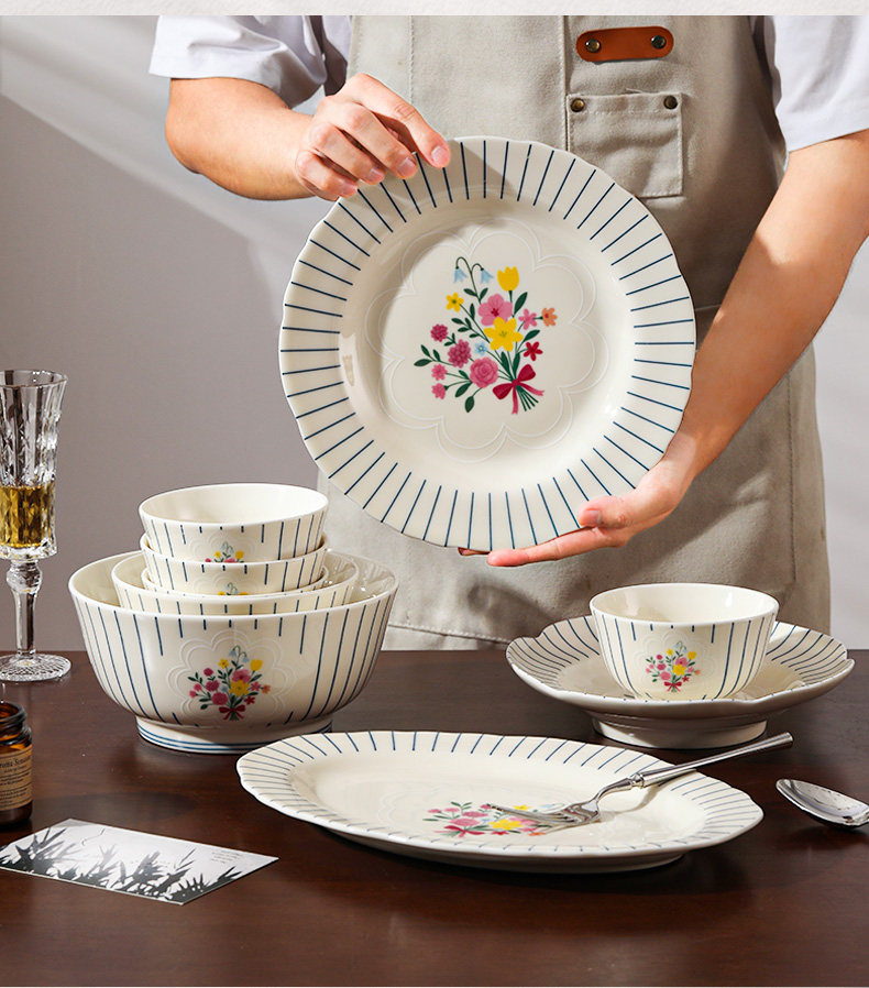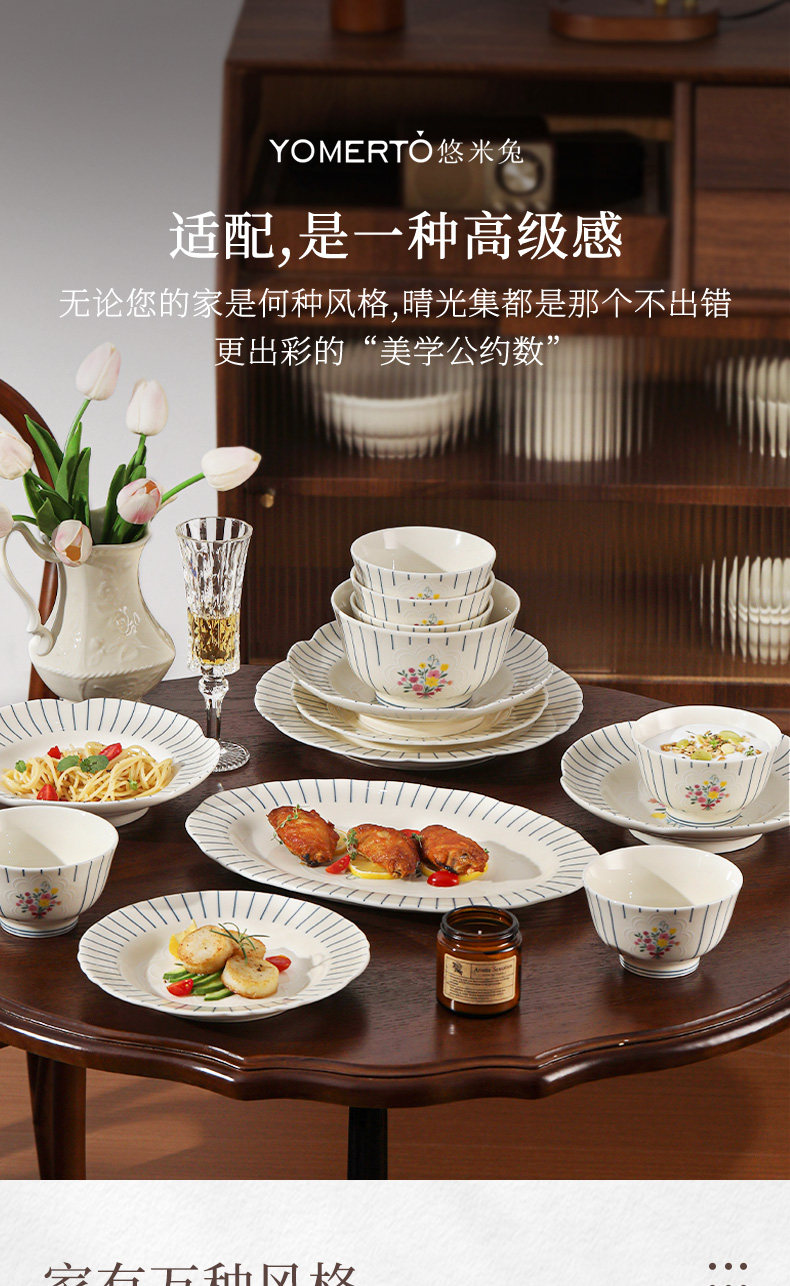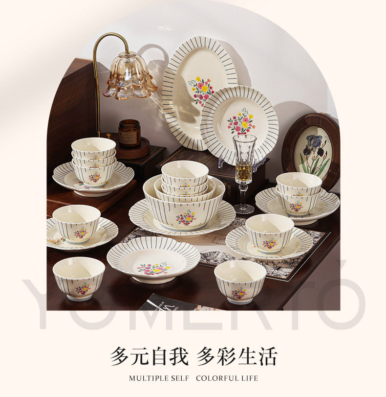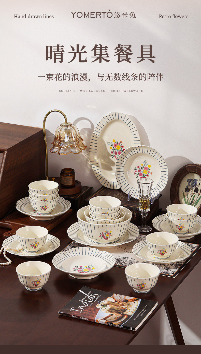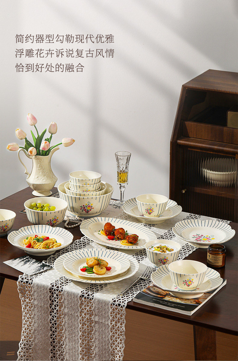 French Retro Tableware Set 2026 New Style Household Bowls and Plates Ceramic Dishes Plates Housewarming Moving Wedding Gift