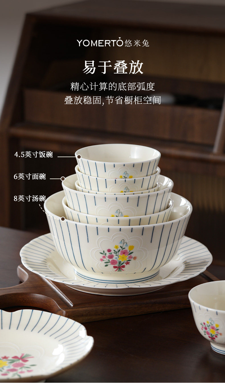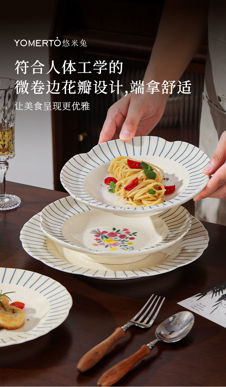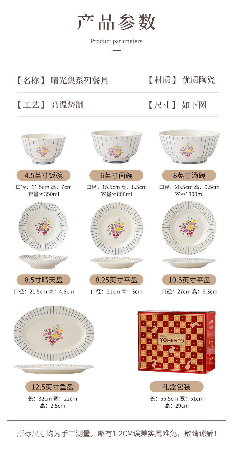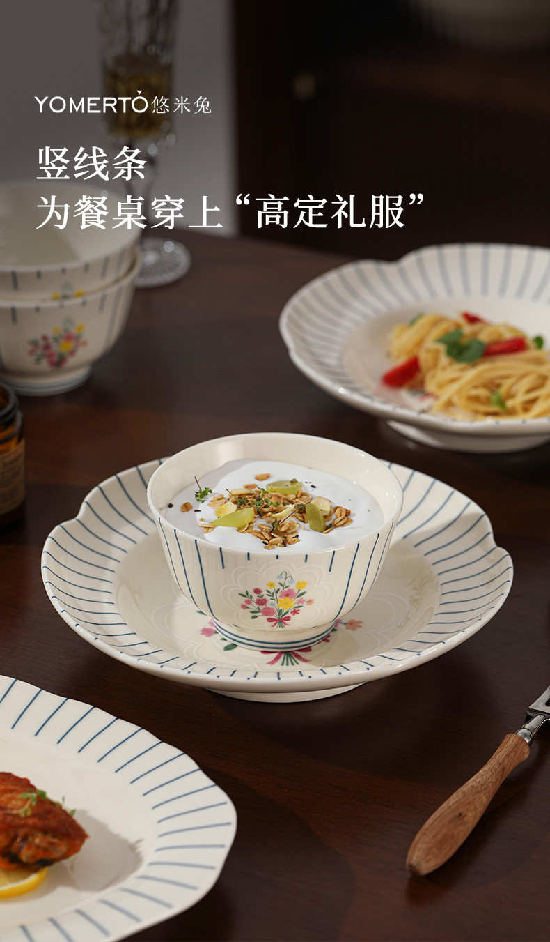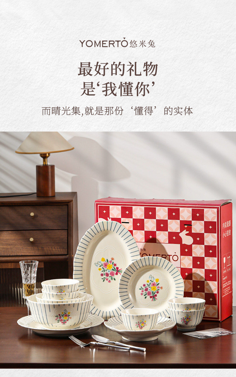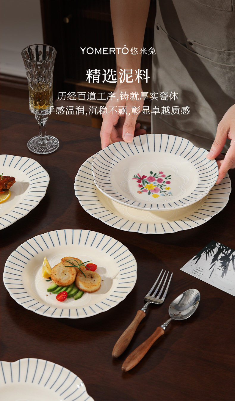 French Retro Tableware Set 2026 New Style Household Bowls and Plates Ceramic Dishes Plates Housewarming Moving Wedding Gift