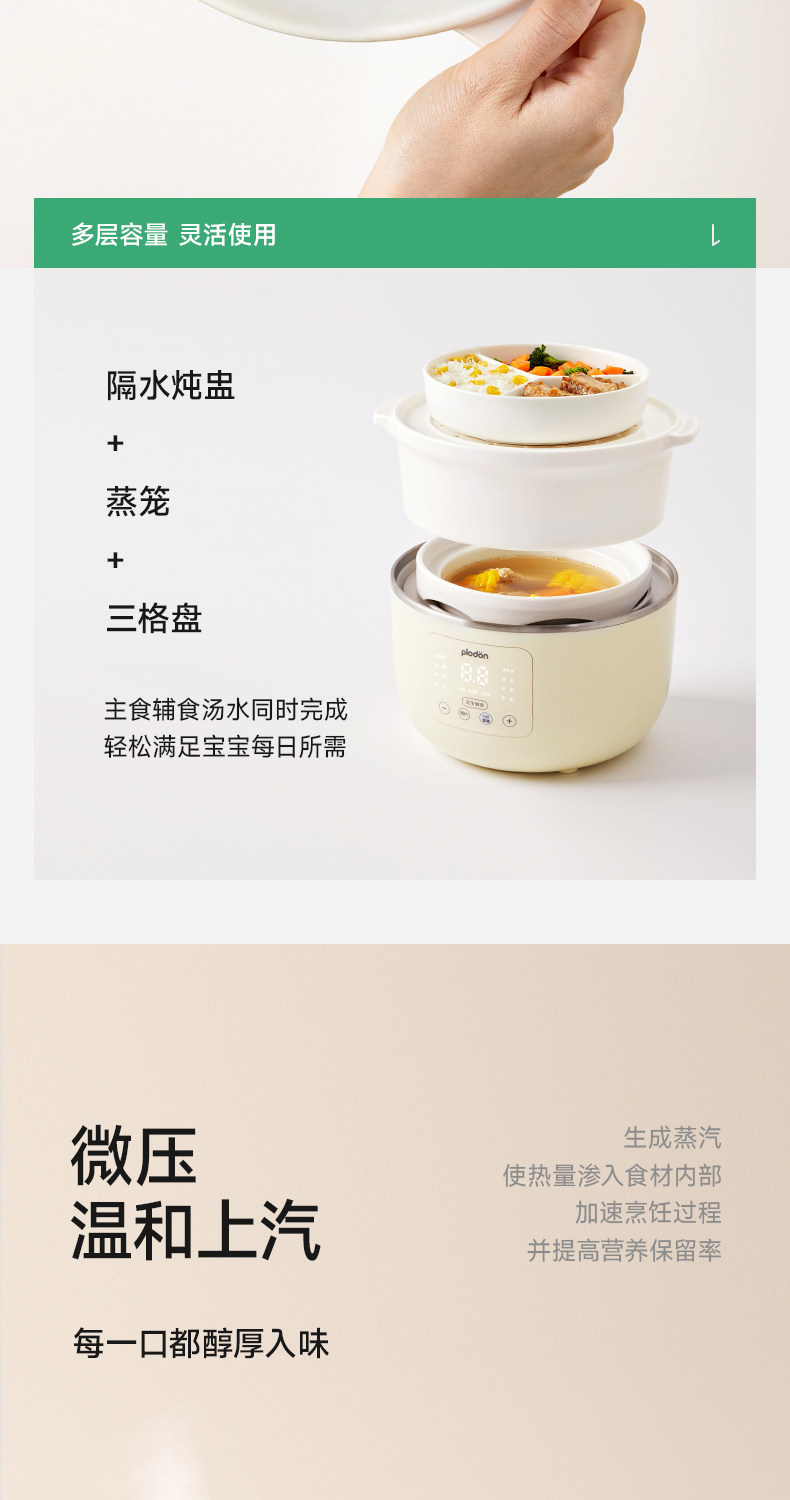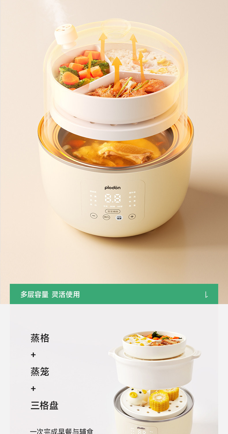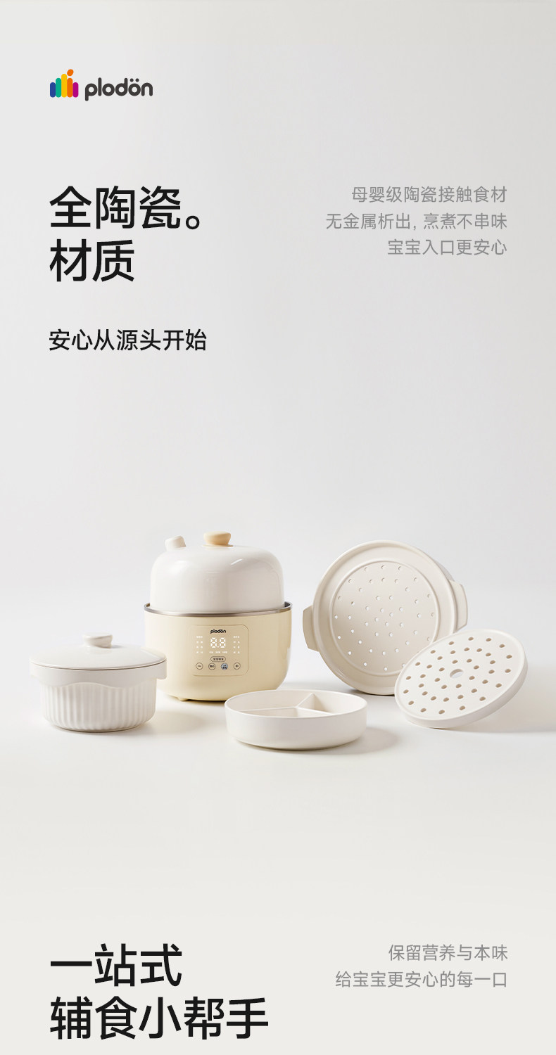 Plodon Puliton Small Ceramic Electric Steamer Multifunctional Steaming, Stewing and Cooking All-In-One Household Fully Automatic Baby Food Pot