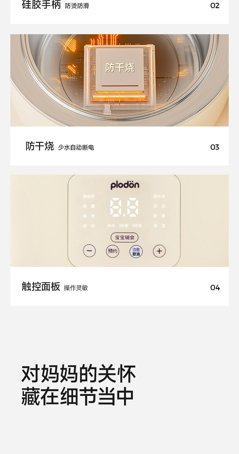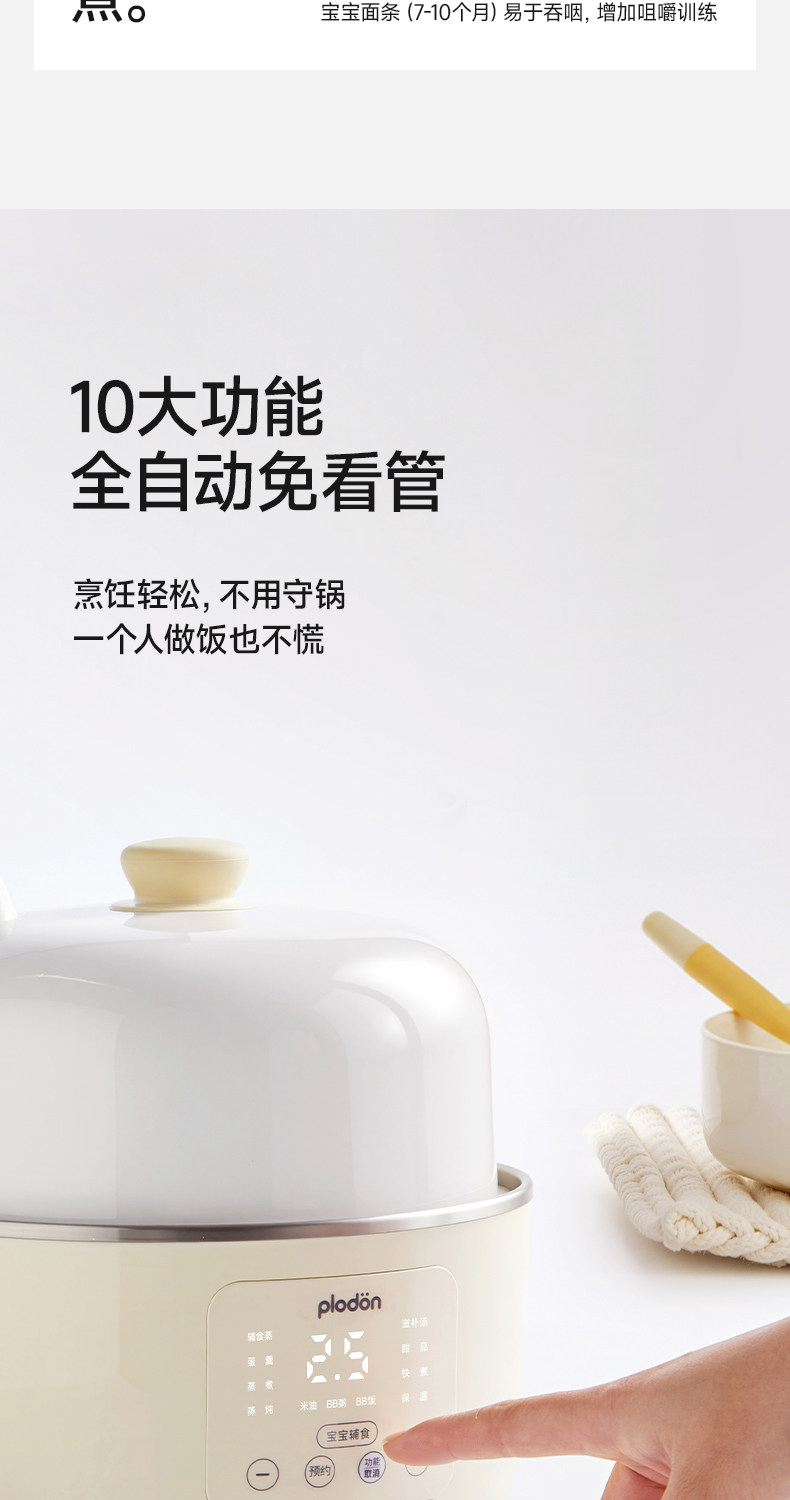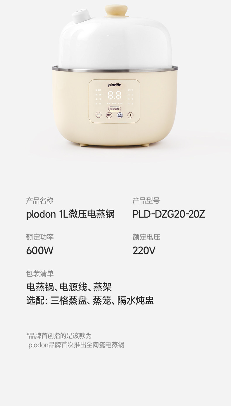 Plodon Puliton Small Ceramic Electric Steamer Multifunctional Steaming, Stewing and Cooking All-In-One Household Fully Automatic Baby Food Pot