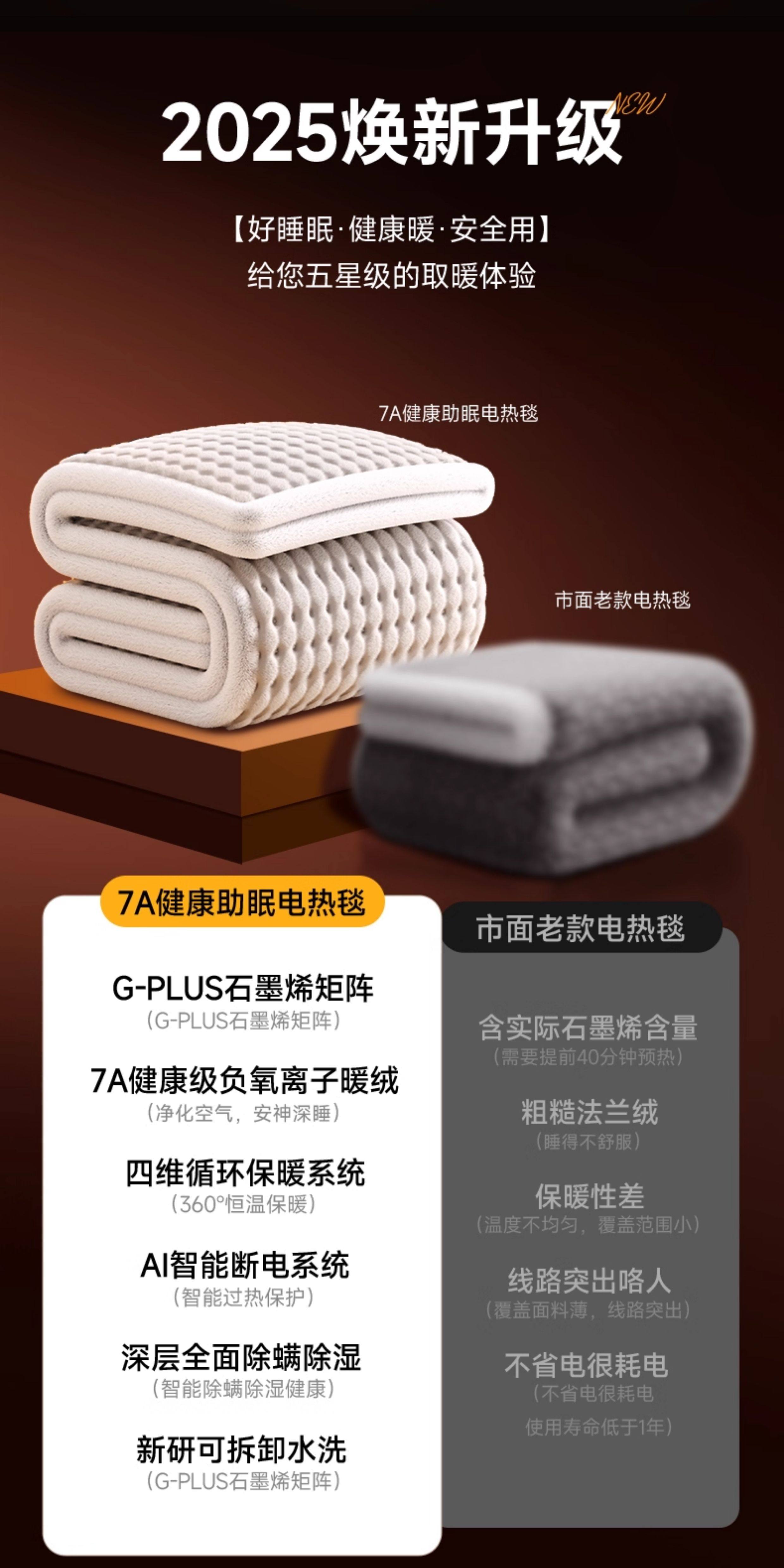 2025 New Graphene Electric Blanket, Double Control Temperature Adjustment, Household Single-Person Electric Mattress, Official Genuine Heating Blanket