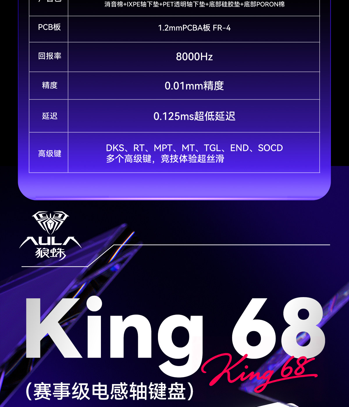 Wolf Spider King68 Inductive Magnetic Axis Mechanical Keyboard Fps E-Sports Gaming Contour Universal Rt Emergency Stop