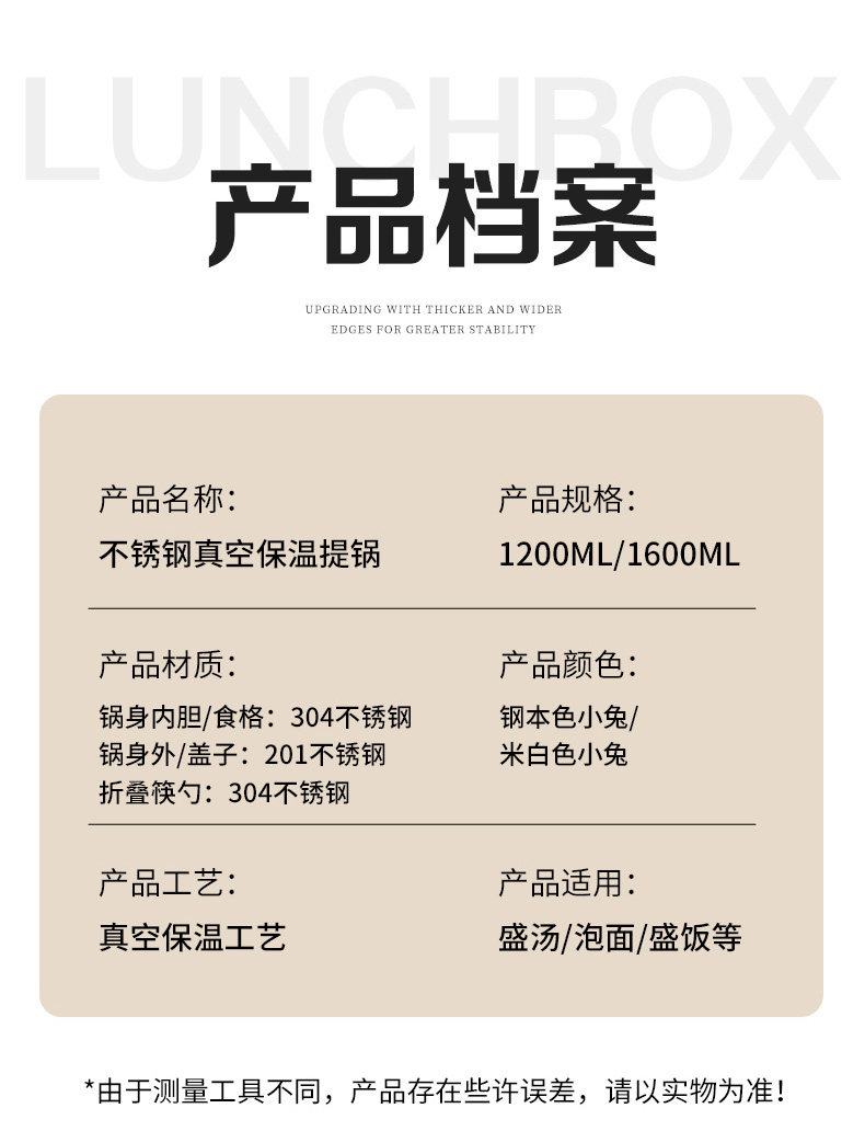| Color Classification | ⭐✅【Wudu Hui Brand Authentic Food-Grade 304 Stainless Steel】Products Are Open to Testing by Any Accredited Institution✅Fake One, Get Ten Percent Off ↓↓↓,⭐ ✅ [2025 Newly Upgraded Patented Model] Double-Layer Anti-Scalding ❤ Vacuum Lightweight Insulated Bucket ↓↓ Select Below ↓↓,⭐✅[Exquisite Little White Rabbit Pattern] Enjoylife Enjoy Life❤The Pattern Is Uv Heat Printed and Will Not Fade or Fall Off✅✅,【304 Antibacterial Fresh-Lock - Natural White Rabbit】Small Size 1200ml,【304 Antibacterial Fresh-Lock - Natural White Rabbit】Large Size 1600ml,【304 Antibacterial Fresh-Lock - Natural White Rabbit】Small 1200ml + -203.999999999% off Stackable Chopsticks & Spoon 2-Piece Set,【304 Antibacterial Fresh-Lock - Natural White Rabbit】Large 1600ml + -203.999999999% off Stackable Chopsticks & Spoon 2-Piece Set,【304 Antibacterial Fresh-Lock - Natural White Rabbit】Small Size 1200ml + Insulated Bag,【304 Antibacterial Fresh-Lock - Natural White Rabbit】Large 1600ml + Insulated Bag,【304 Antibacterial Fresh-Lock - Natural White Rabbit】Small 1200ml + -203.999999999% off Stackable Chopsticks & Spoon 2-Piece Set + Insulated Bag,【304 Antibacterial Fresh-Lock - Natural White Rabbit】Large 1600ml + -203.999999999% off Stackable Chopsticks & Spoon 2-Piece Set + Insulated Bag |