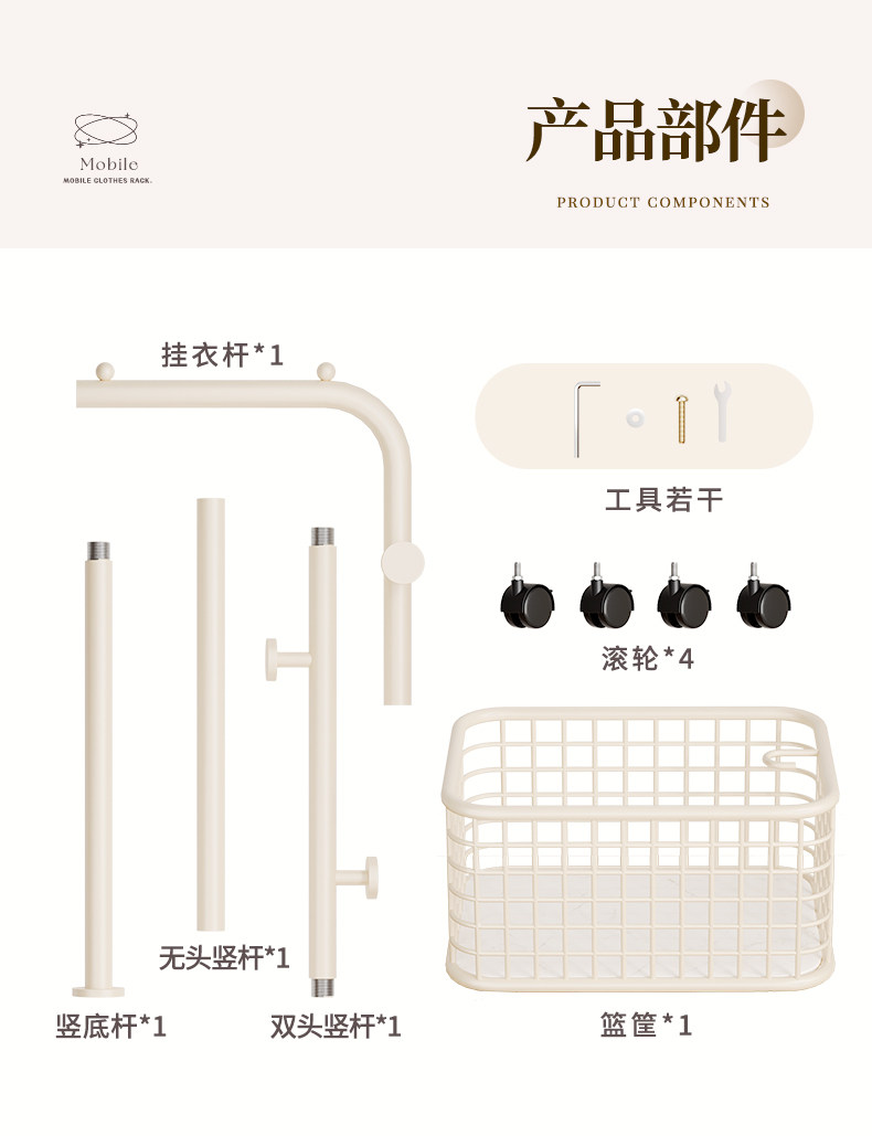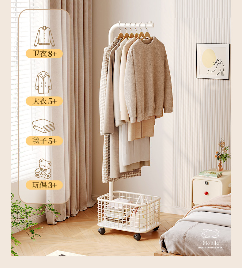Clothes Rack for Bedroom, Floor-Standing, for Organizing Clothes, Living Room Coat Rack, Movable, Bedside, Household Clothes Hanger, Small Storage Rack