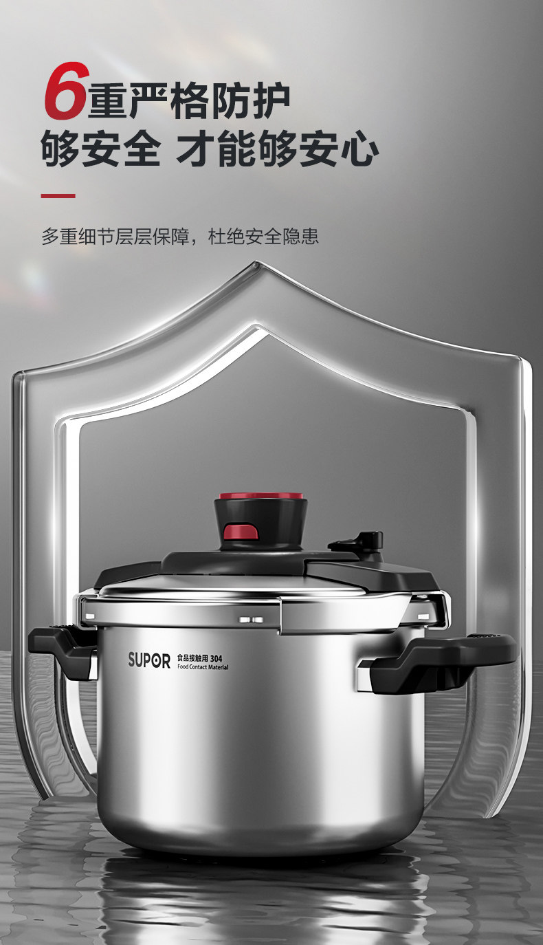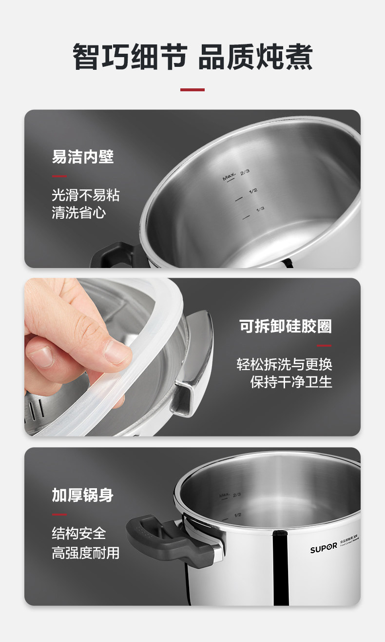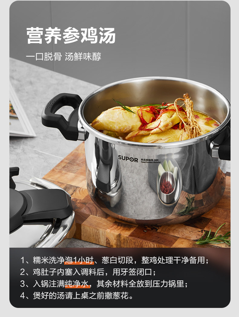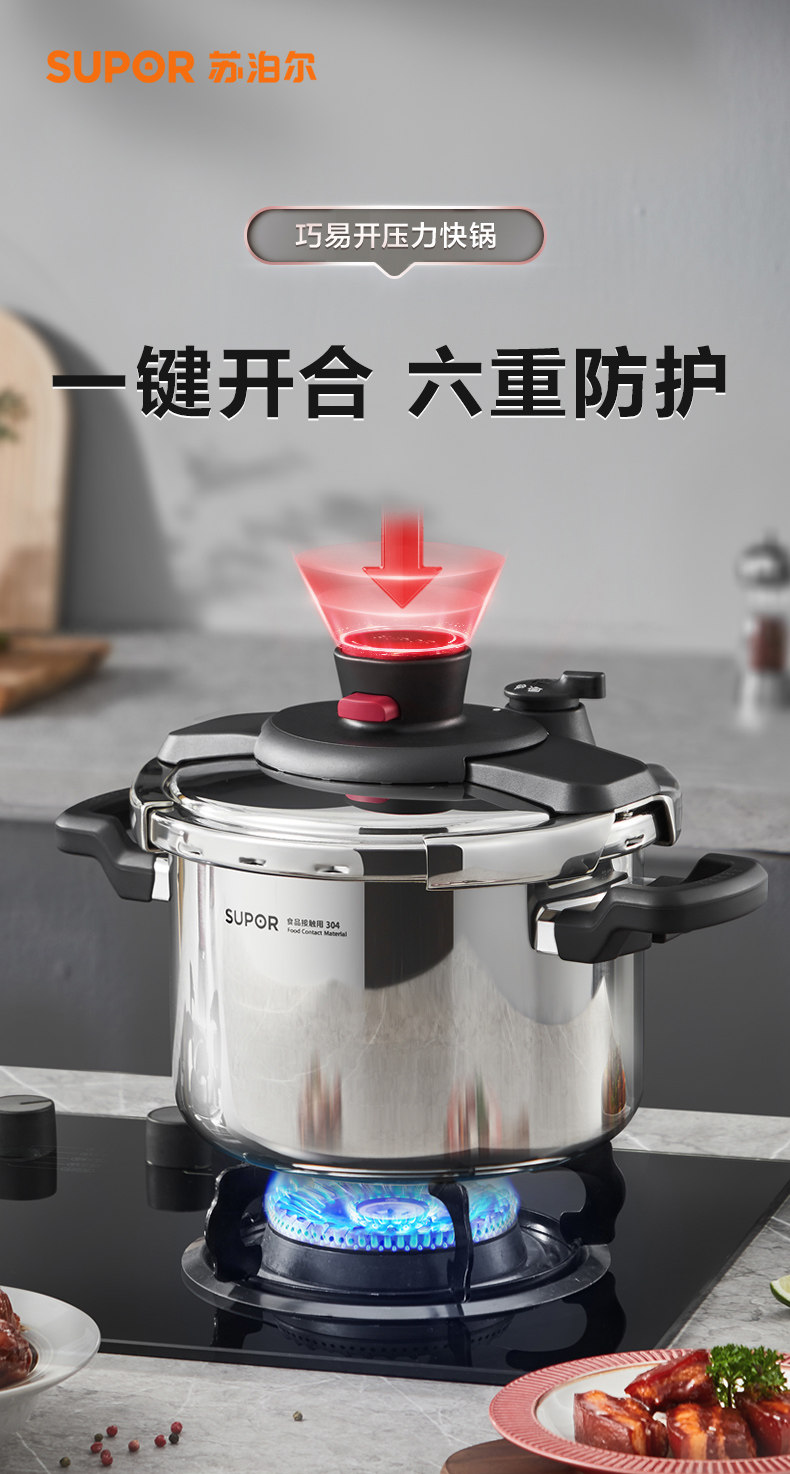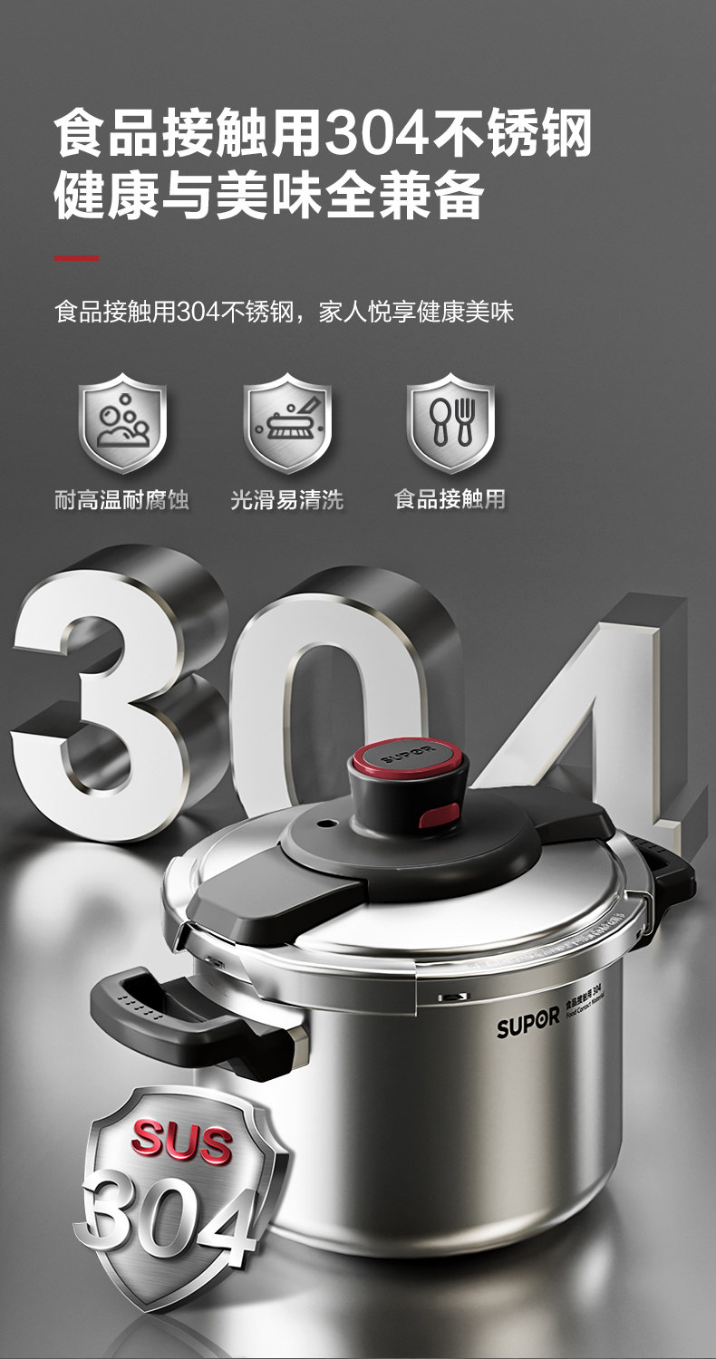 Supor 304 Stainless Steel Pressure Cooker, Small Household Pressure Cooker, 2025 New Model, Explosion-Proof, Gas-Powered, Official Genuine Product