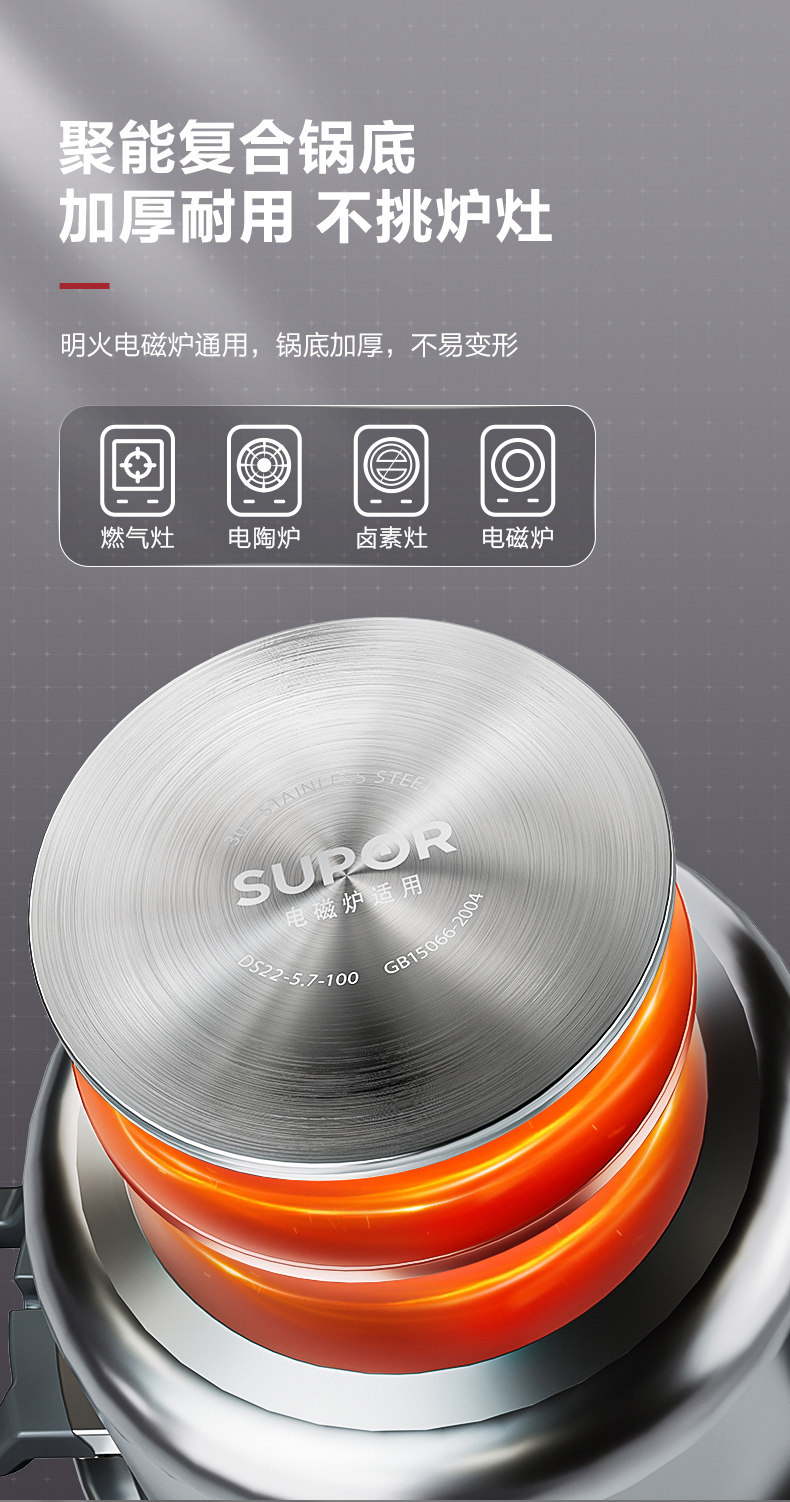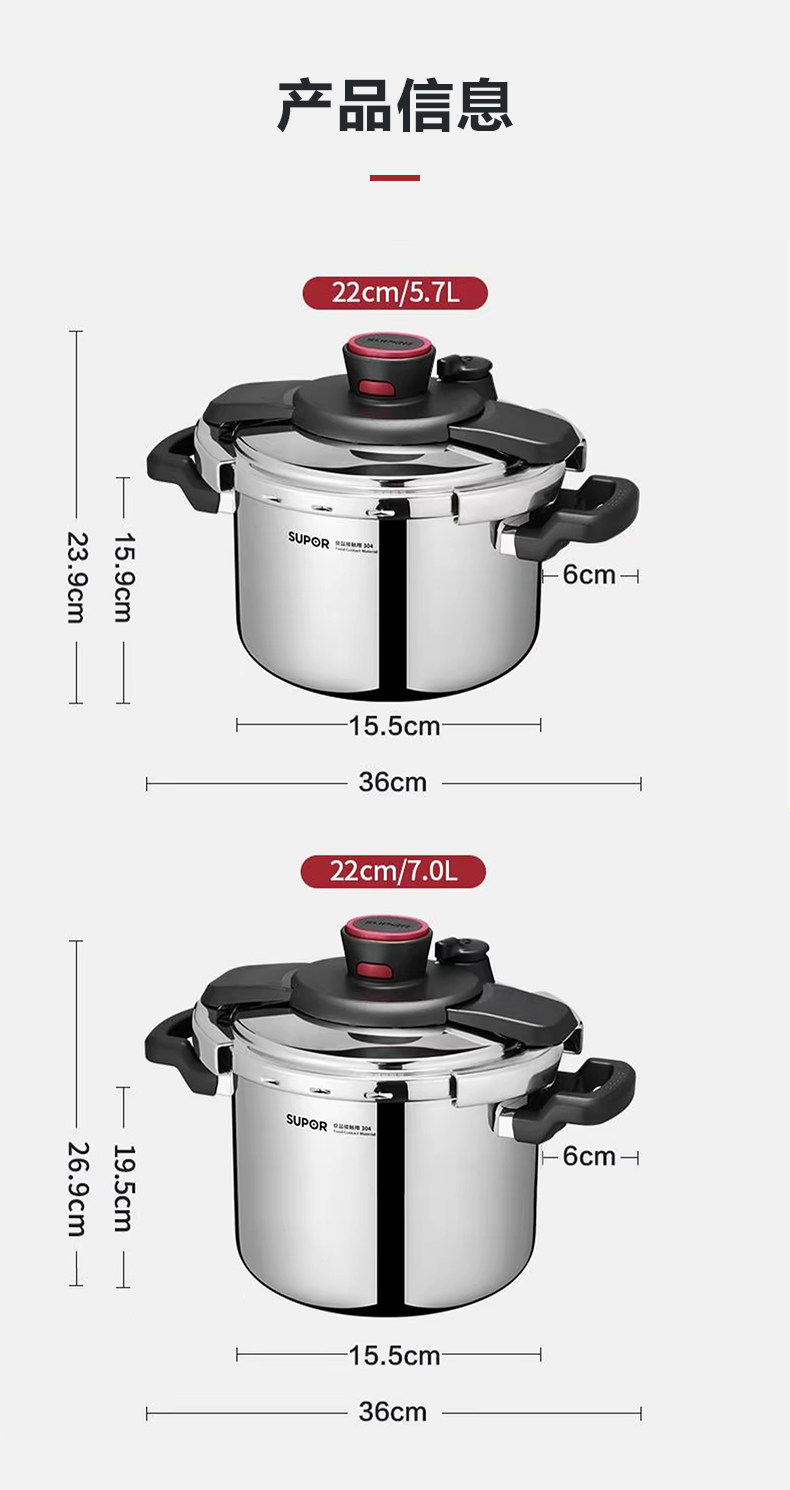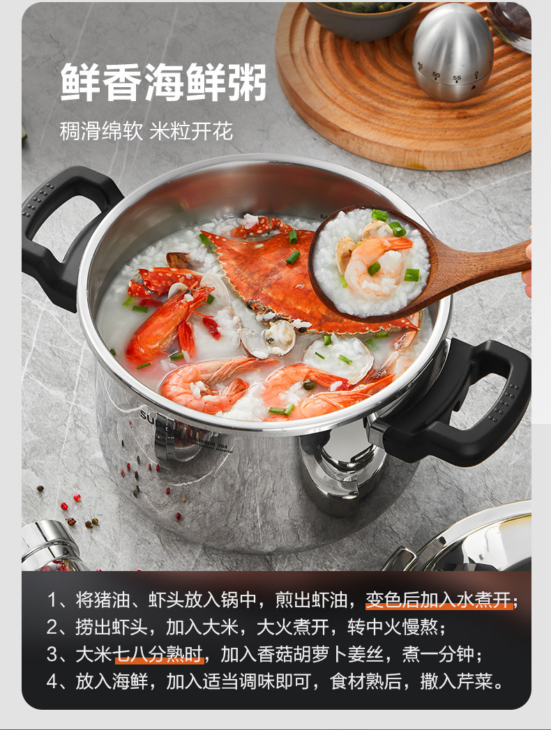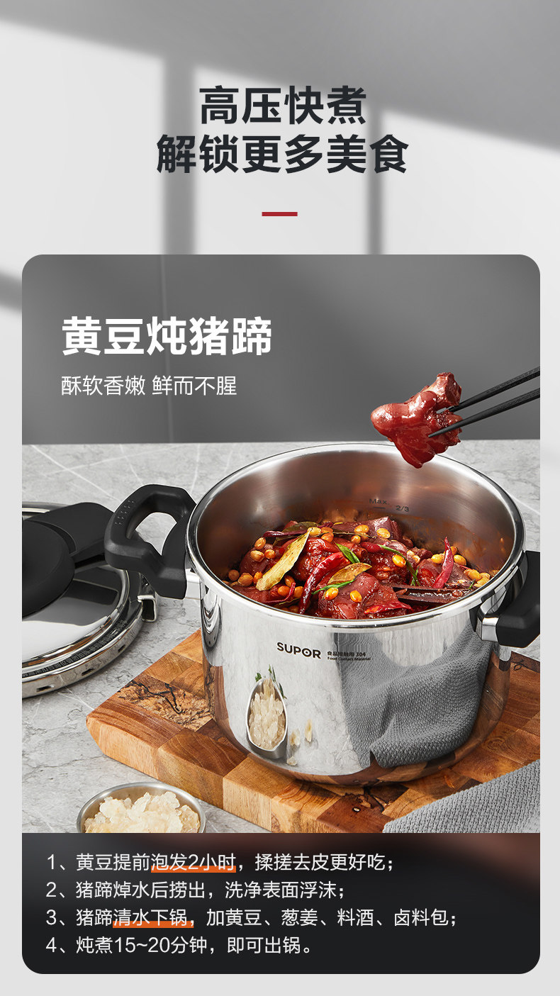 Supor 304 Stainless Steel Pressure Cooker, Small Household Pressure Cooker, 2025 New Model, Explosion-Proof, Gas-Powered, Official Genuine Product