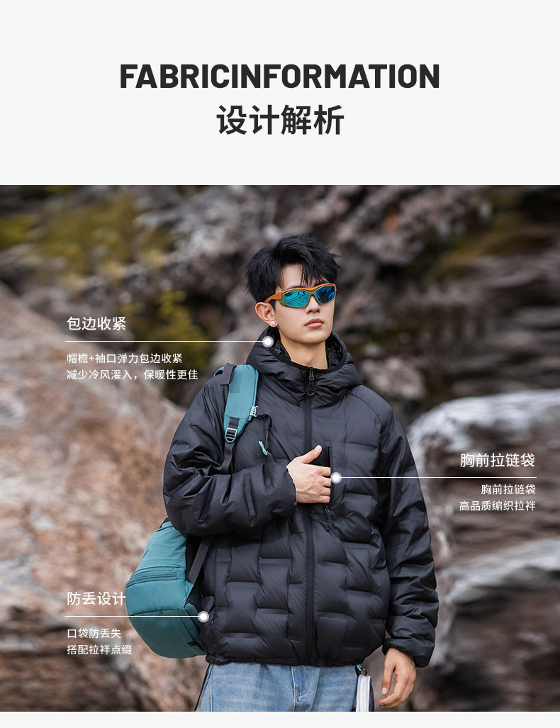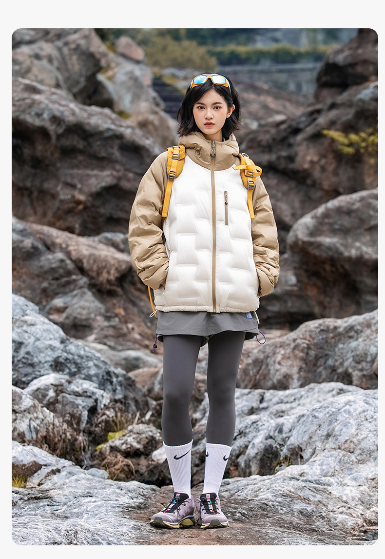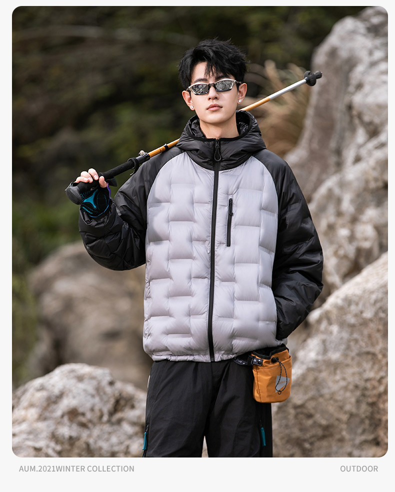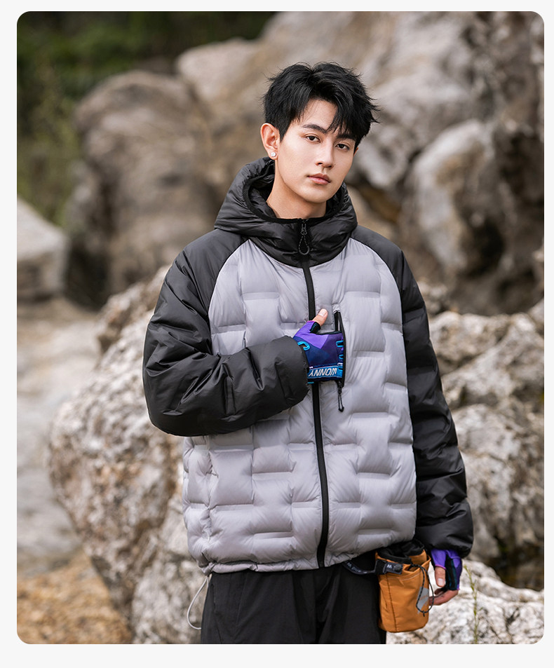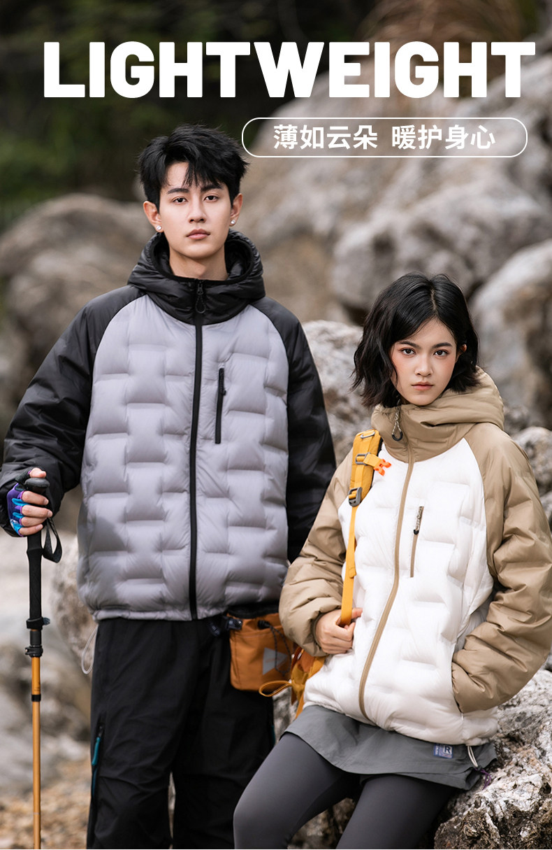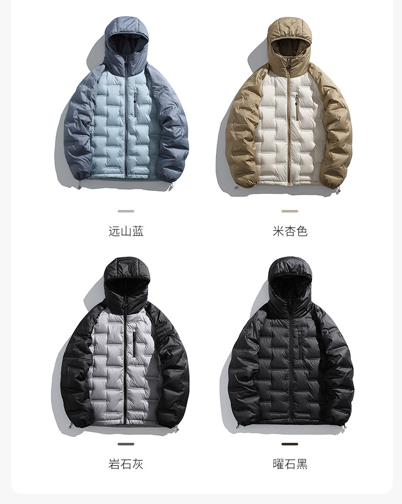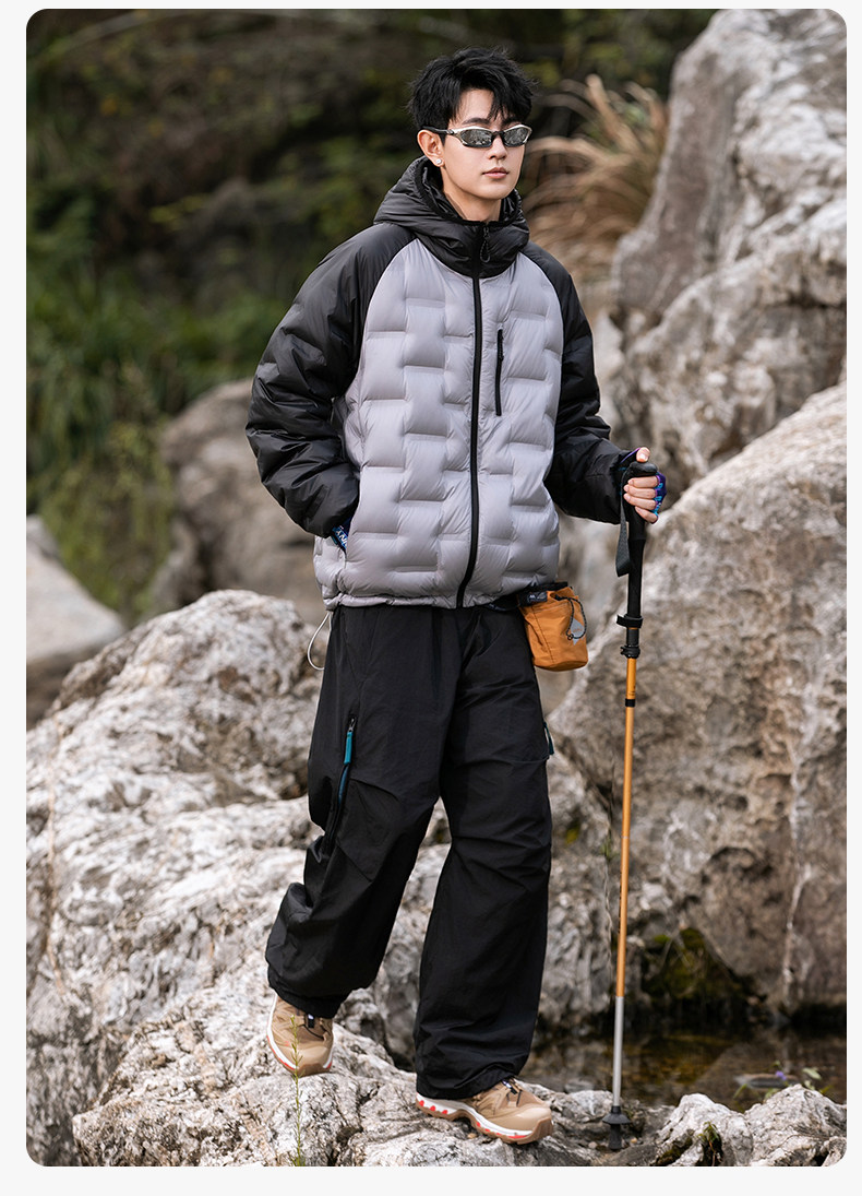 Geniolamode American Style Color-Blocking Lightweight down Jacket for Men and Women, Warm and Cold-Resistant, Versatile Hiking Jacket
