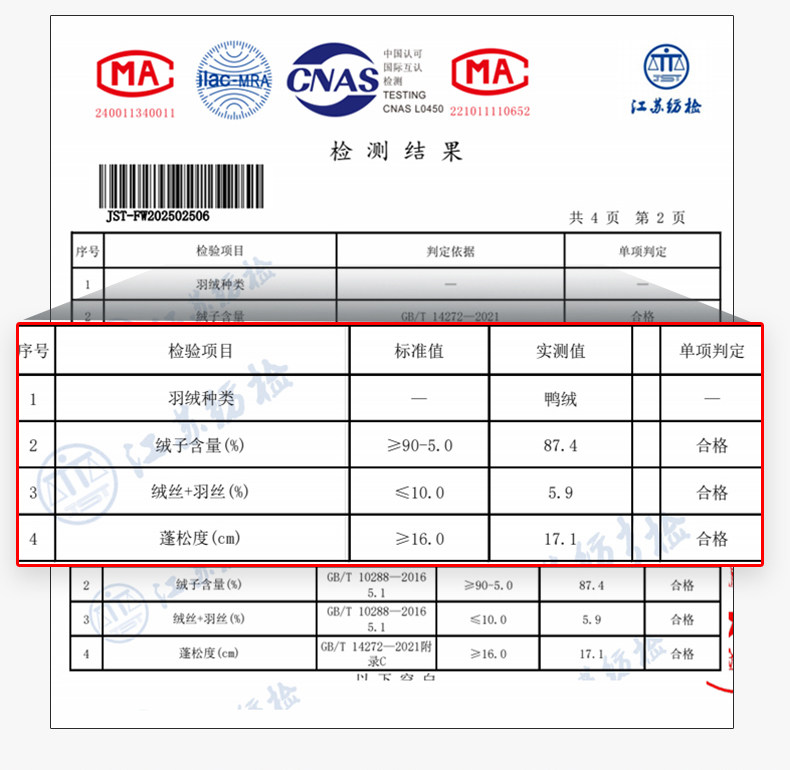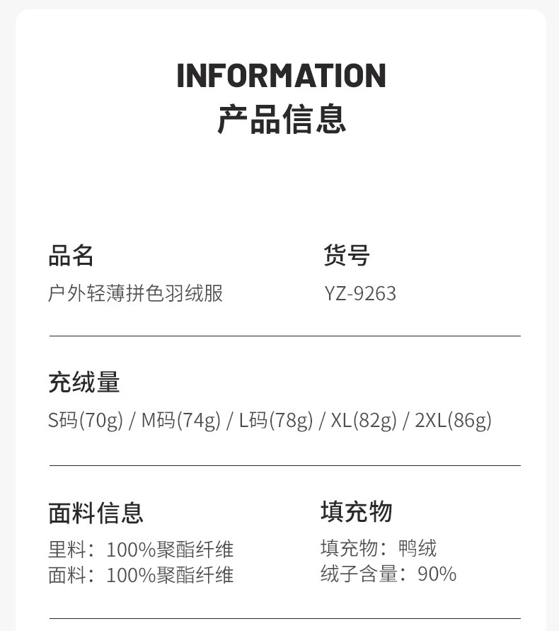 | Filling | Duck down |