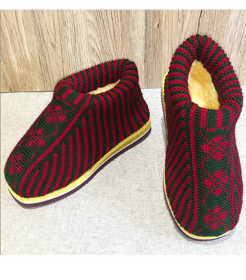 Knitted Wool Slippers, Cotton Shoes for Autumn and Winter, Finished Product for Women, Knitted with Added Fleece and Thickened, Purely Handmade, Crocheted for Men, Home Wear, Warm