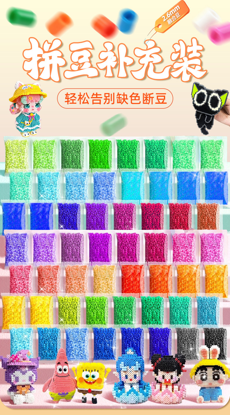 Pengdou Refill Pack 2.6mm Refill Pack 2000 Pieces Children's DIY 3D Puzzle Board Pengdou Pack Fusion Beans