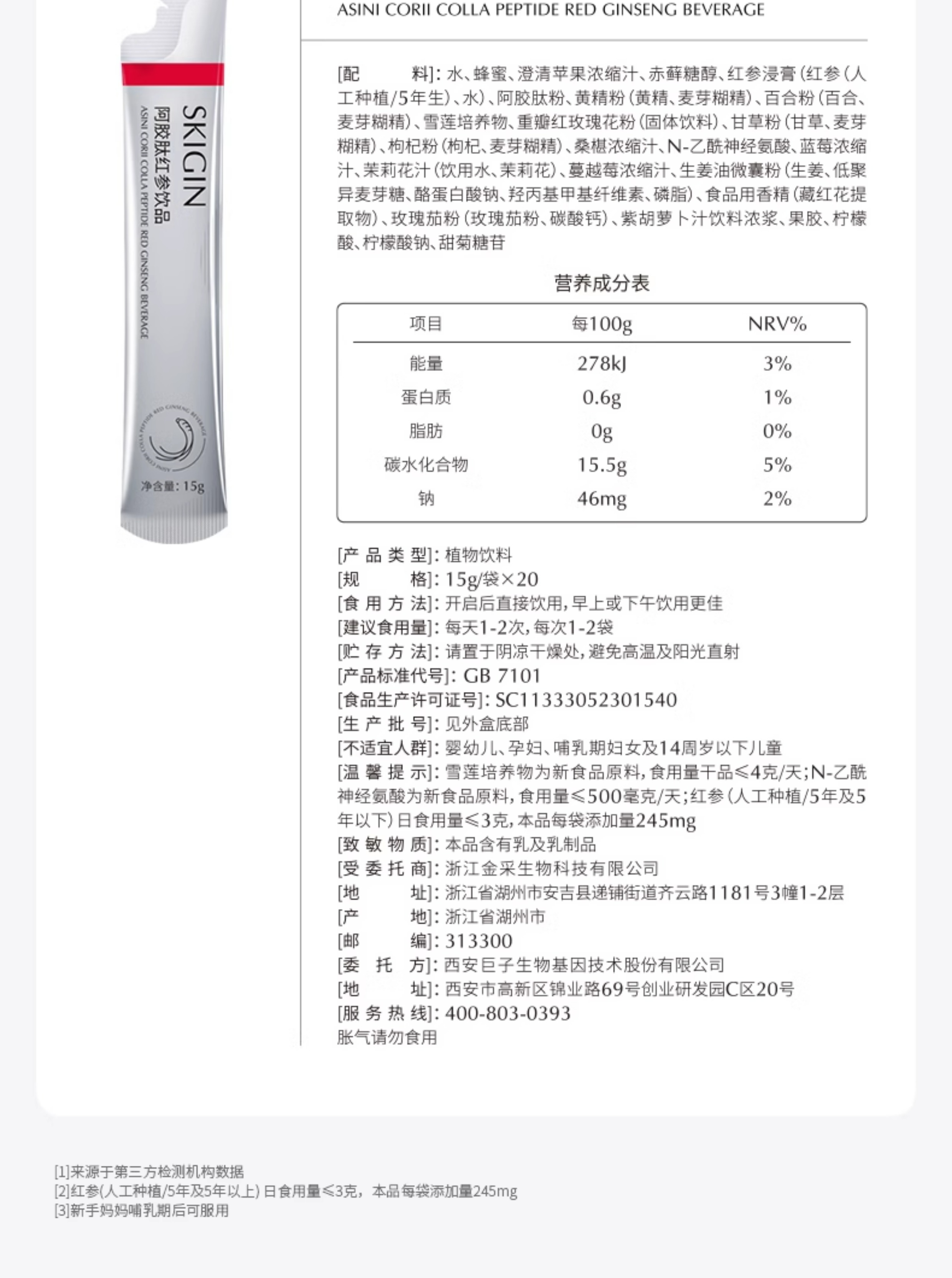 Skigin Red Ginseng Drink Xinsuine Elixir Red Ginseng Beverage Vitality and Moisturizing Nourishing Ginseng Saponin Official Authentic Store