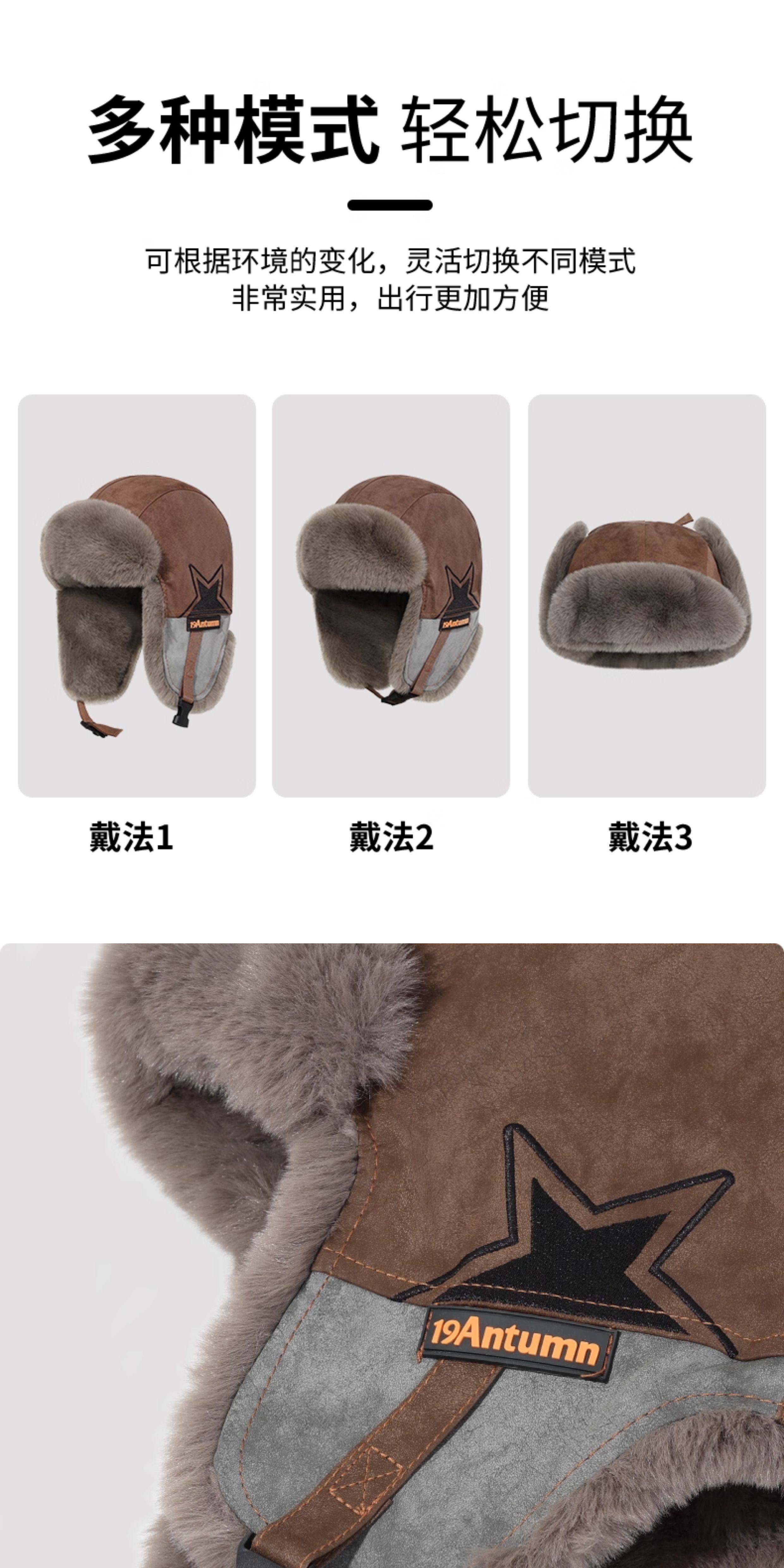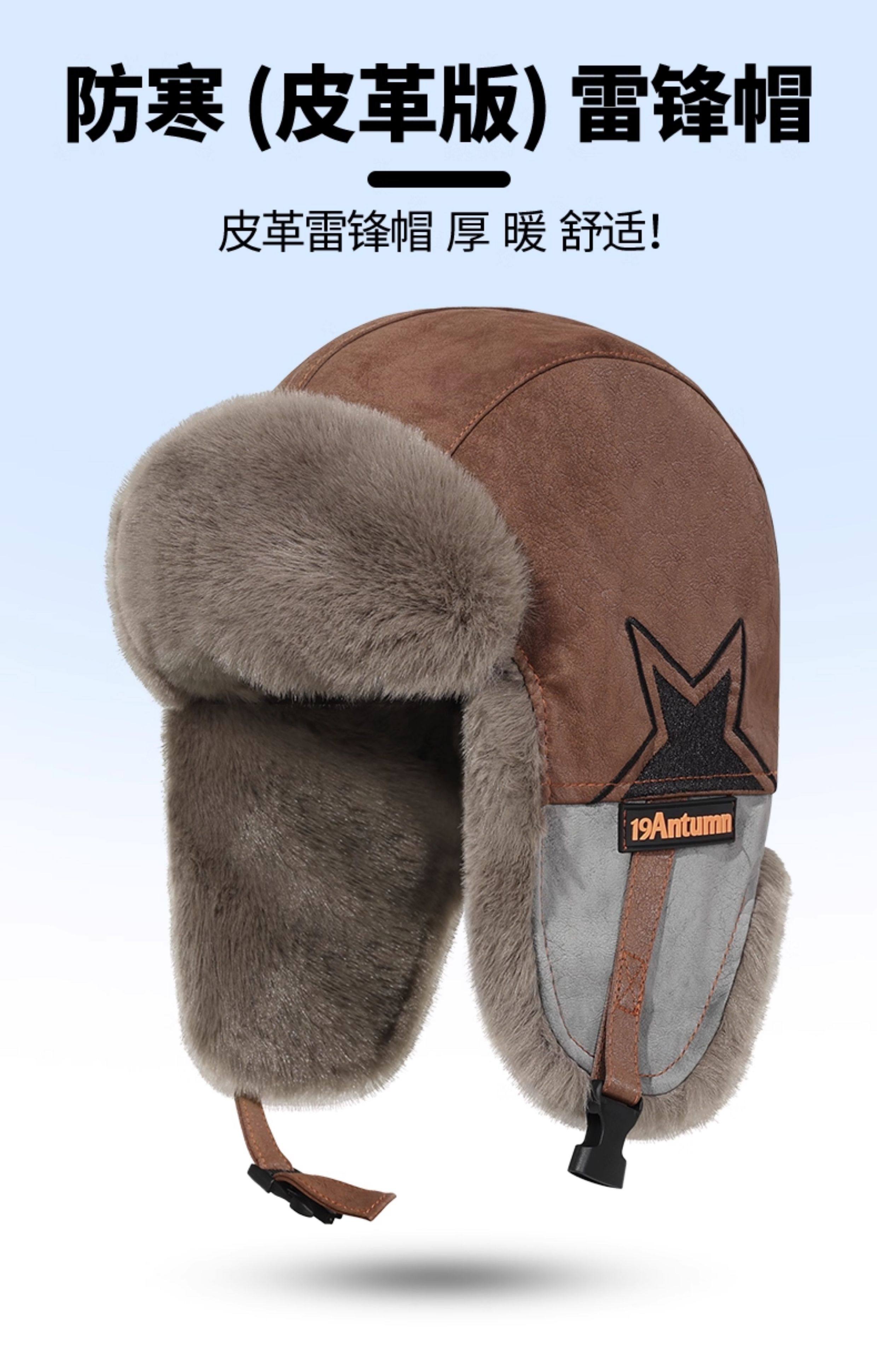 Lei Feng Hat for Men and Women, New Winter Model for Riding Electric Motorcycles, Windproof and Cold-Resistant, Northeast Warm and Thickened Fleece with Ear Protection