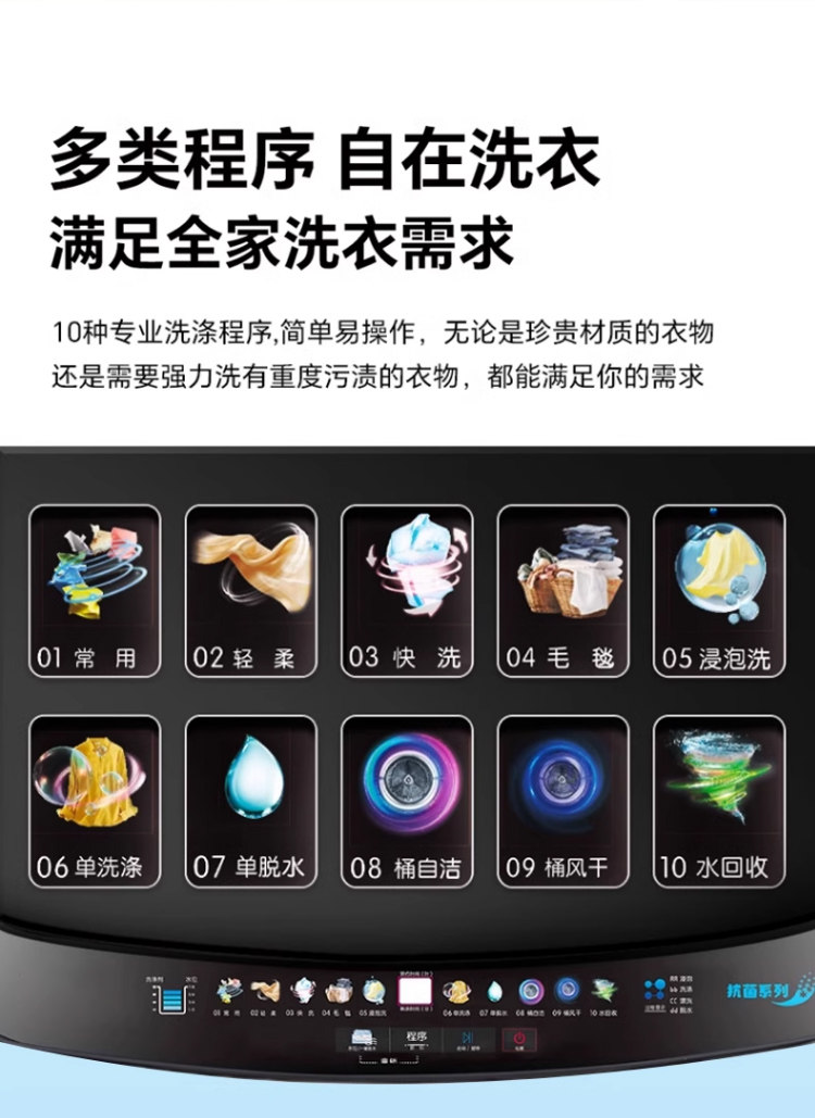 | Laundry Program | Prewash,Drifting Away,Standard,Wash and Bleach,Commonly Used,Fast,Gentle,Strong,Dehydrated,Soak and Wash |