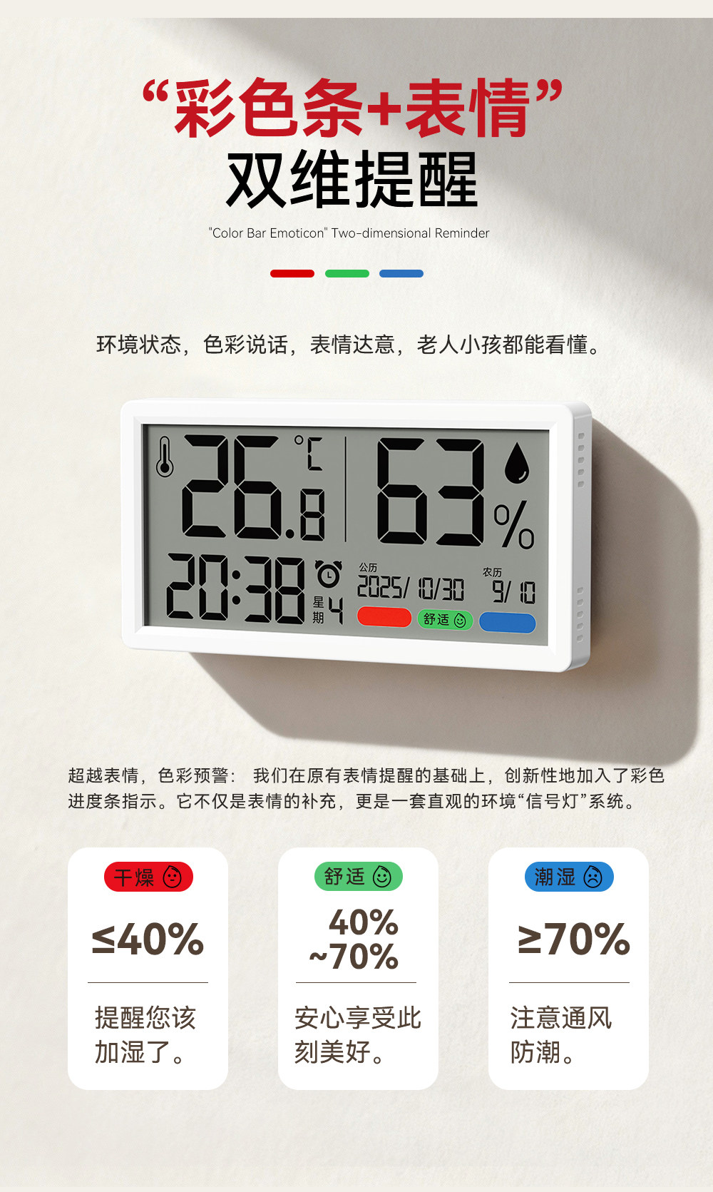 | Color Classification | 【Color Screen - Concise Edition】Temperature & Humidity Monitoring / Color Body Sensing,【Large Screen Calendar Edition】Temperature & Humidity Monitoring / Time / Perpetual Calendar / Body Sensing Display,【Color Screen Lunar Calendar Edition】Temperature & Humidity Monitoring / Time / Perpetual Calendar / Lunar Calendar / Body Sensing Display |